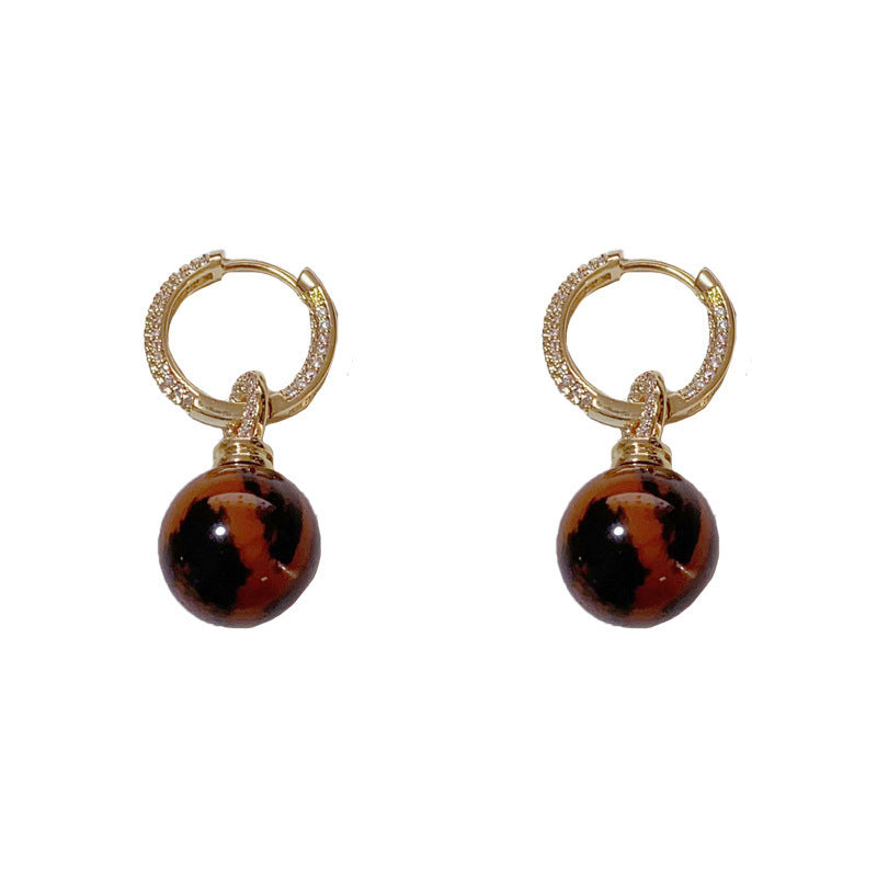 Color: zircon double wear leopard ball ear drops (thick gold plating)