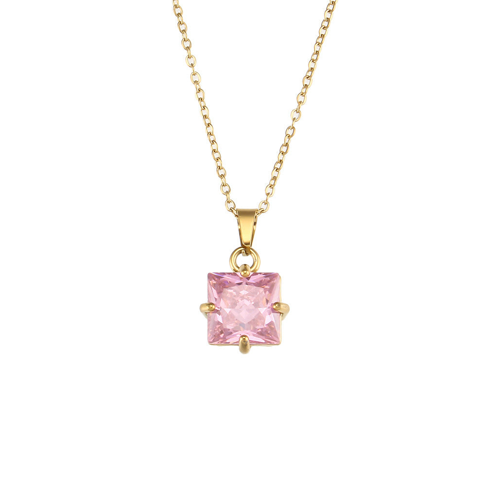 Color: square diamond pendant necklace-black, square diamond pendant necklace-Green, square diamond pendant necklace-pink, square diamond pendant necklace-red, square diamond pendant necklace-White