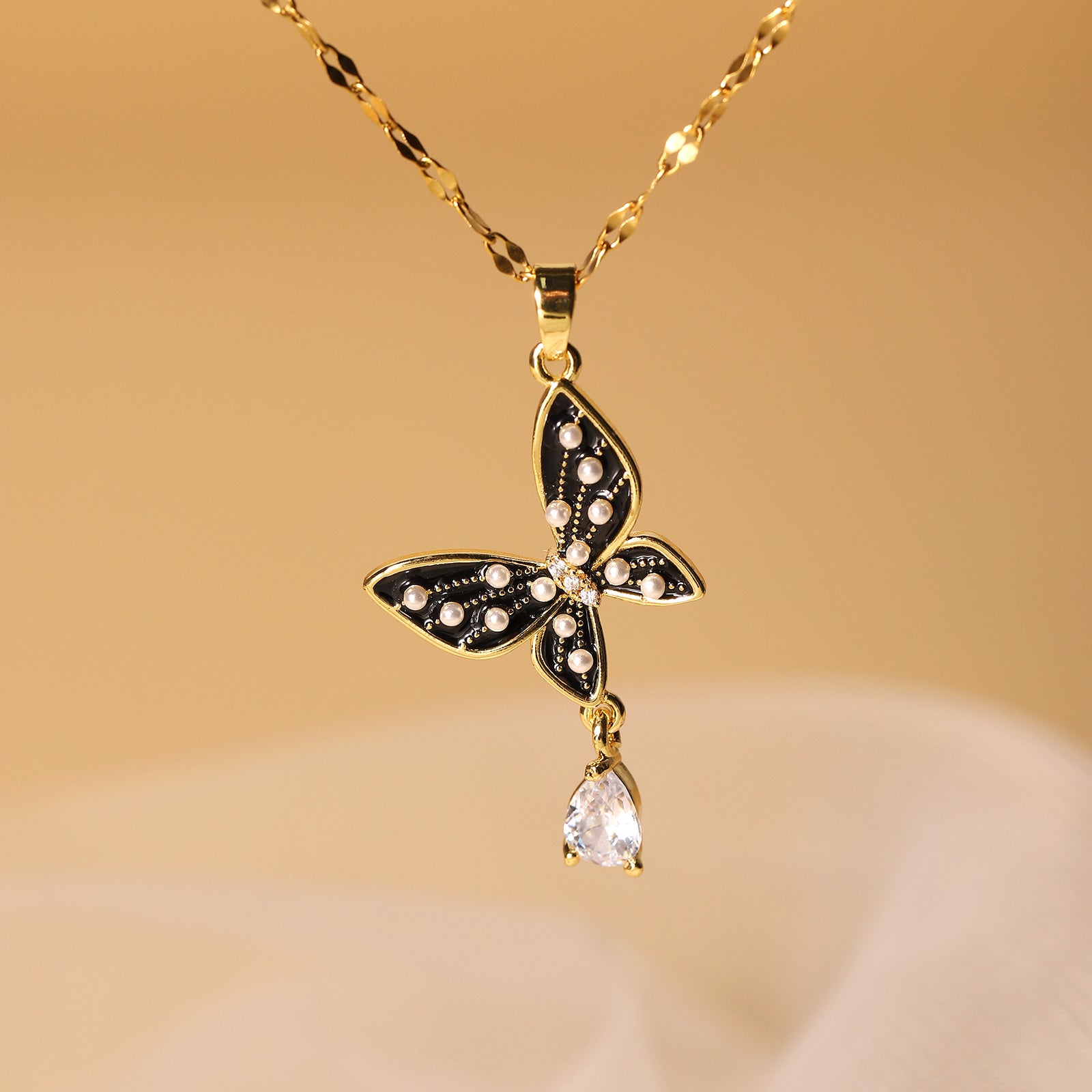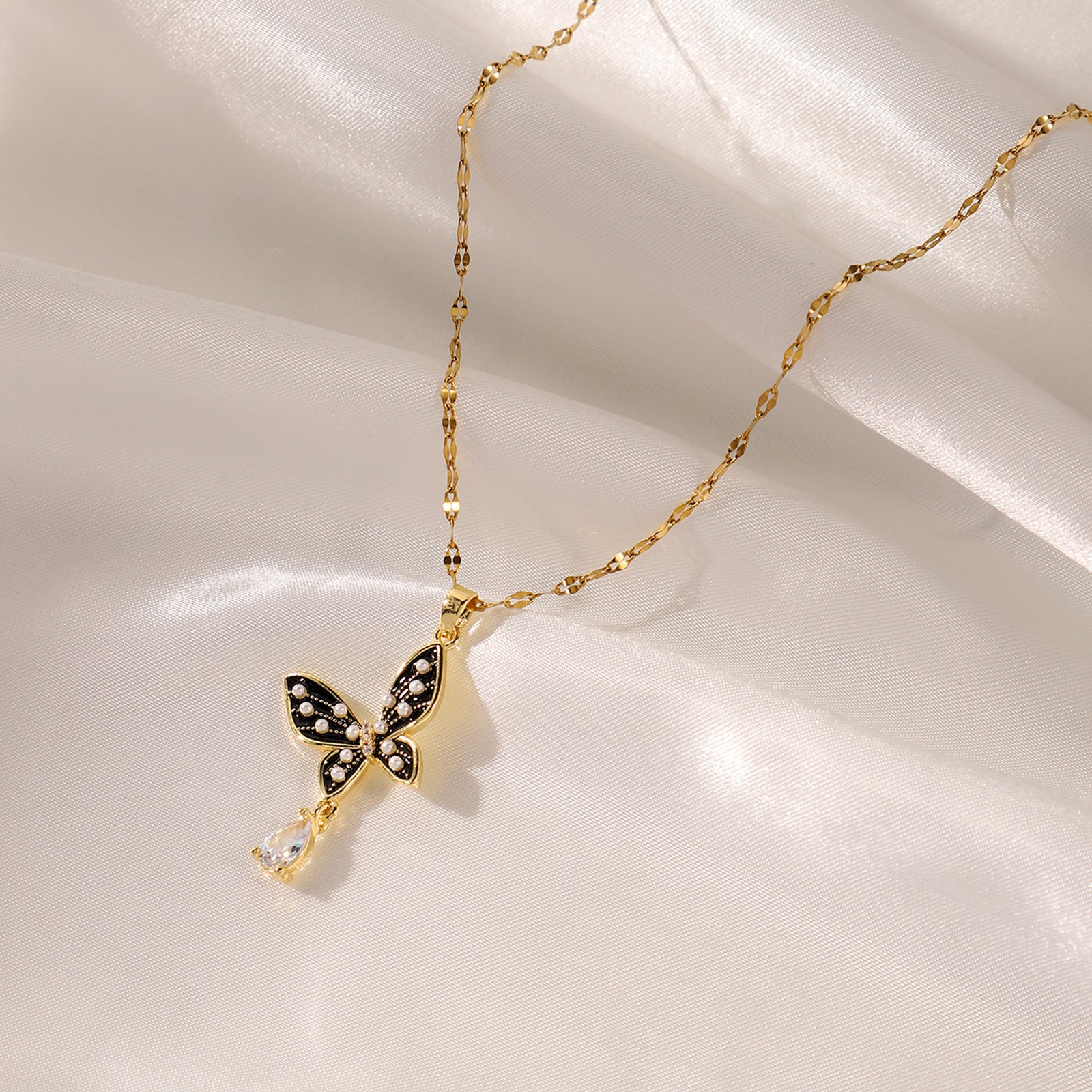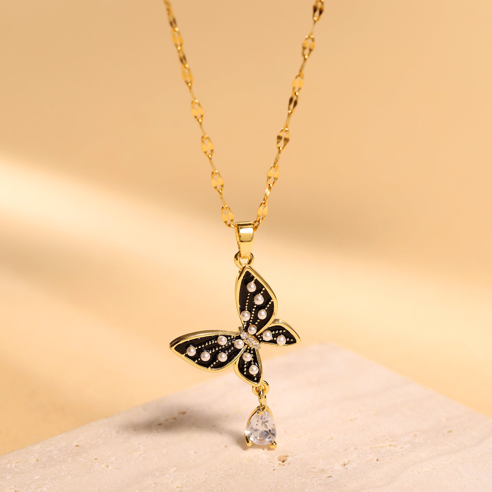 Black Butterfly Drop Oil High Grade Pendant Necklace