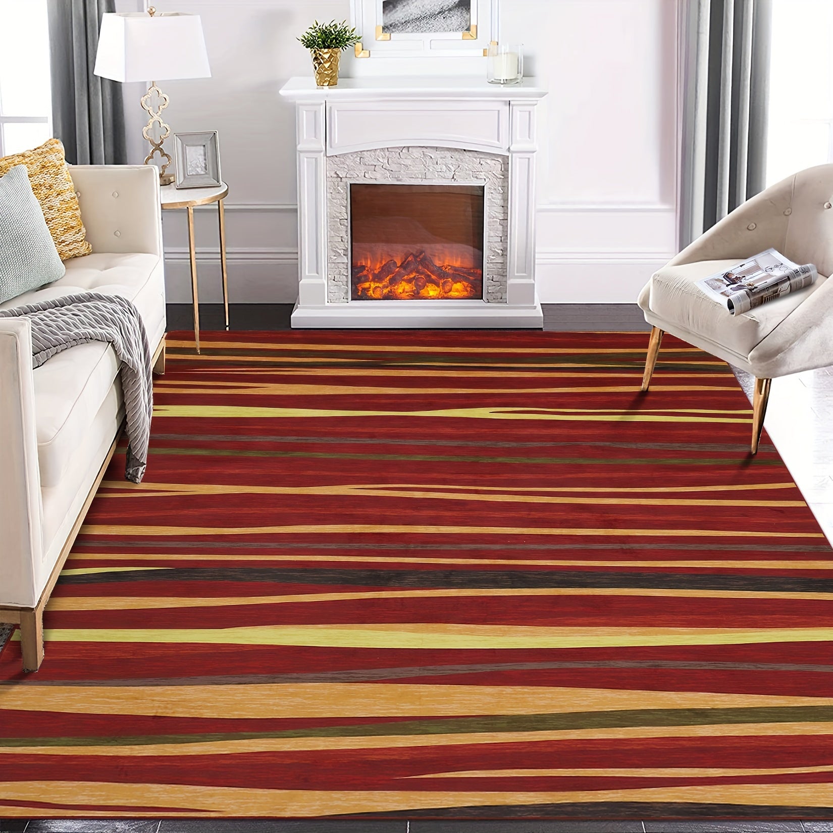 1PC Ultra-Thin Large Area Rug Entryway Rugs Washable Modern Abstract Rug For Living Room Bedroom Striped Aesthetic Floor Mats Indoor Stain Resistant No Shedding Mats For Camping Non-Slip Soft Carpet Farmhouse Decor Red