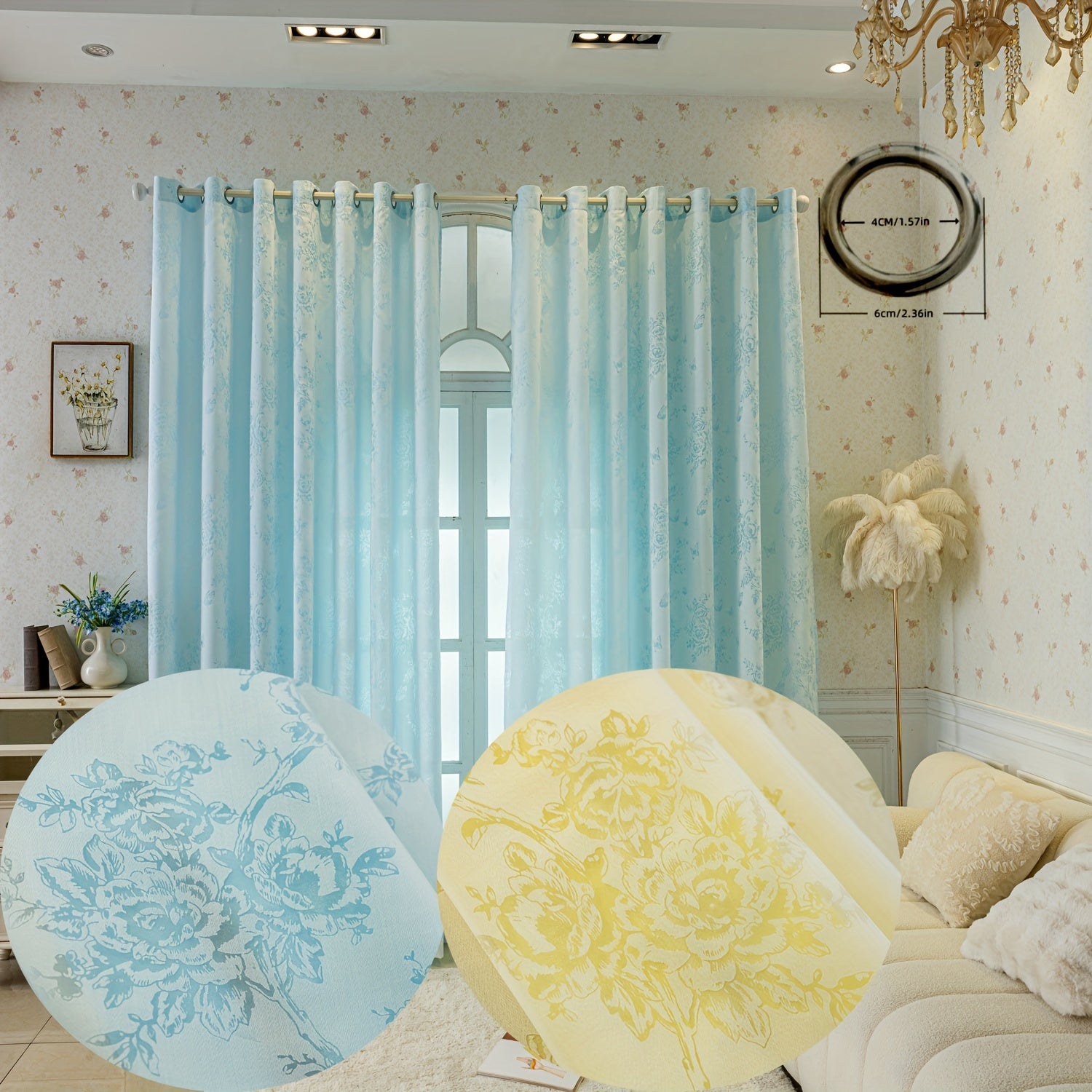 2pcs French countryside romantic double-layer color blocking (inseparable) butterfly love flower translucent living room, bedroom, balcony, study, translucent curtains