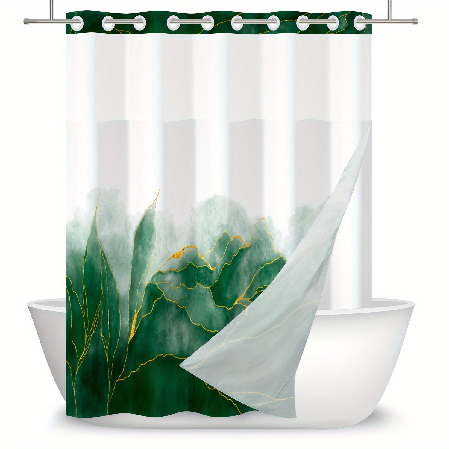 Green Abstract Marble Shower Curtain, Bohemian Abstract Mountain 3-in-1 Shower Curtain, Hook Free Shower Curtain With Stuck In Lining, 71x74 Inches