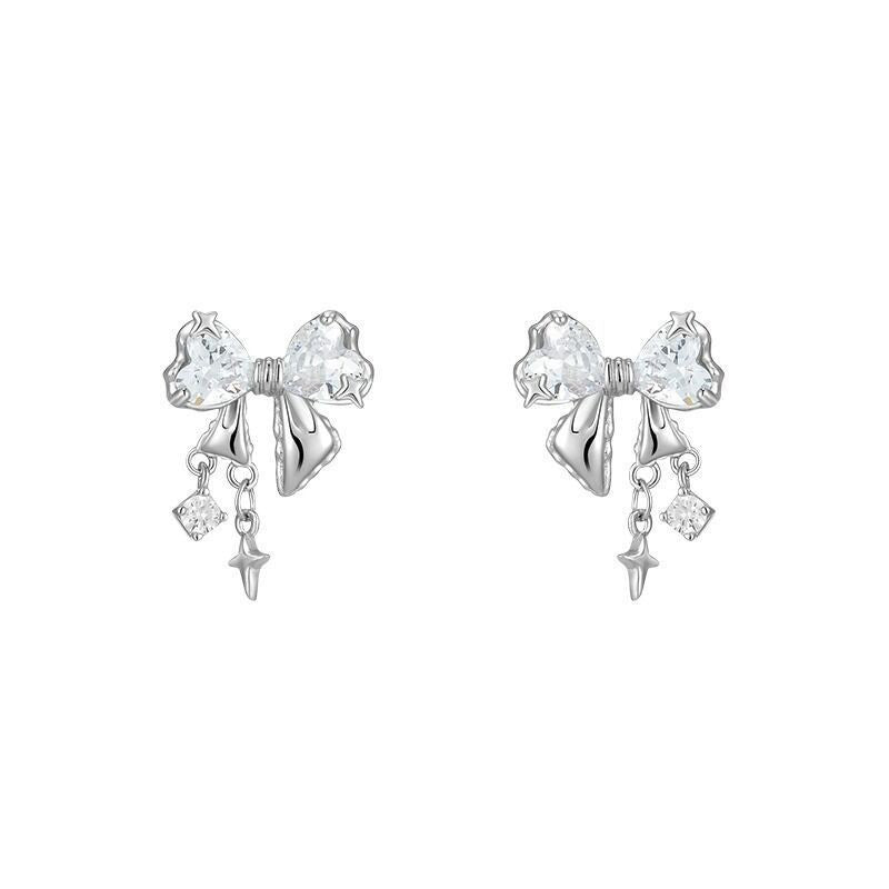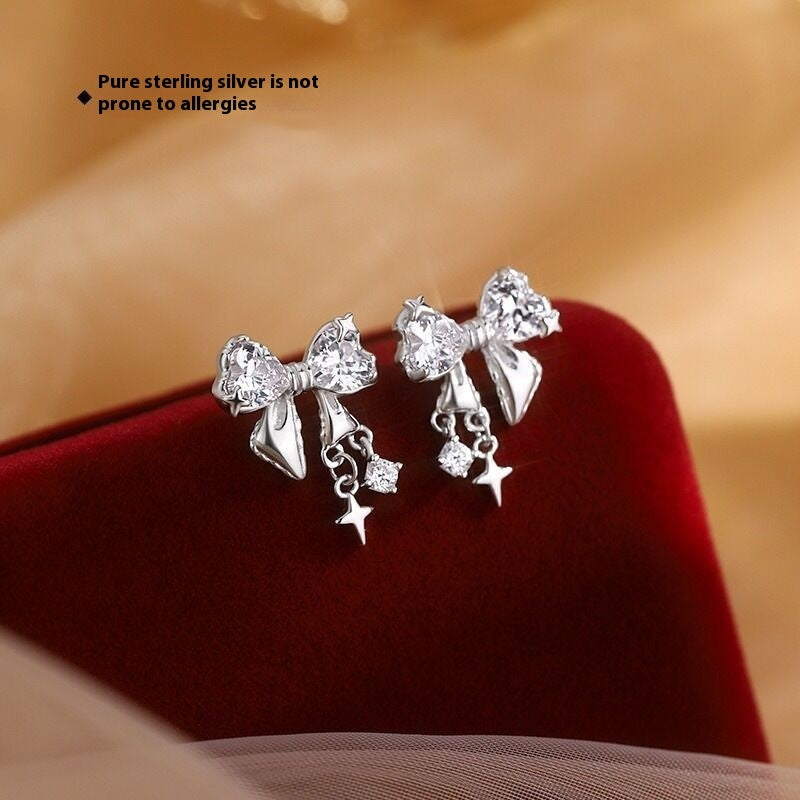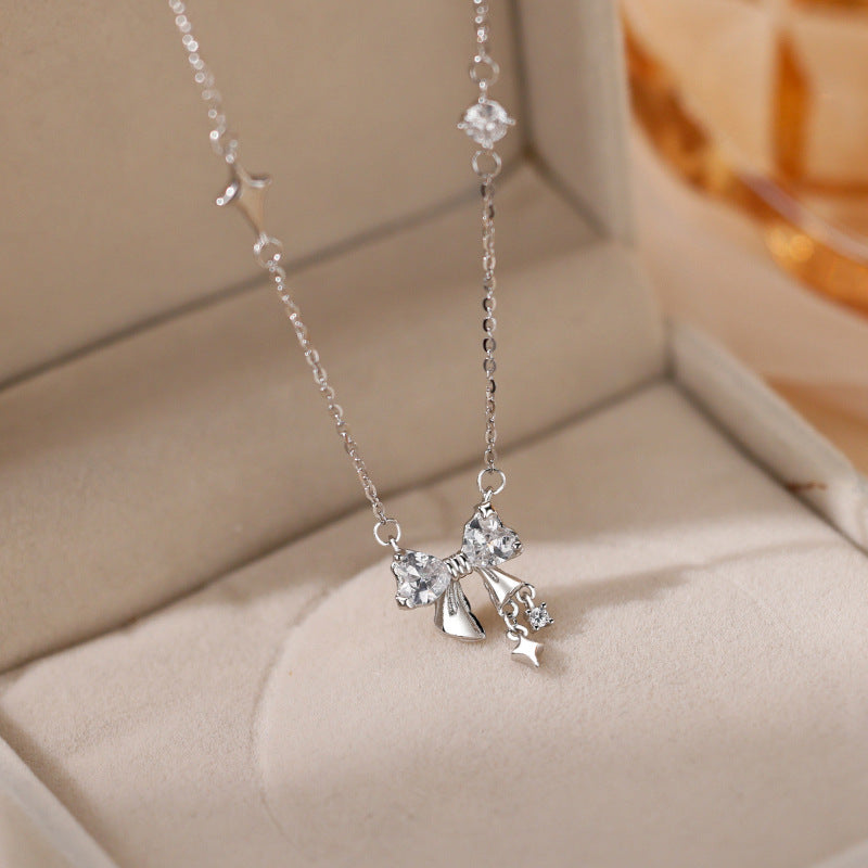 S925 Sterling Silver Tassel Bow Necklace Pendant Niche