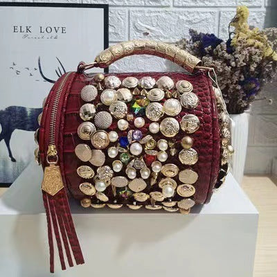 Color: red, silver, black, black-rivet, leopard print, white, black-diamond decoration