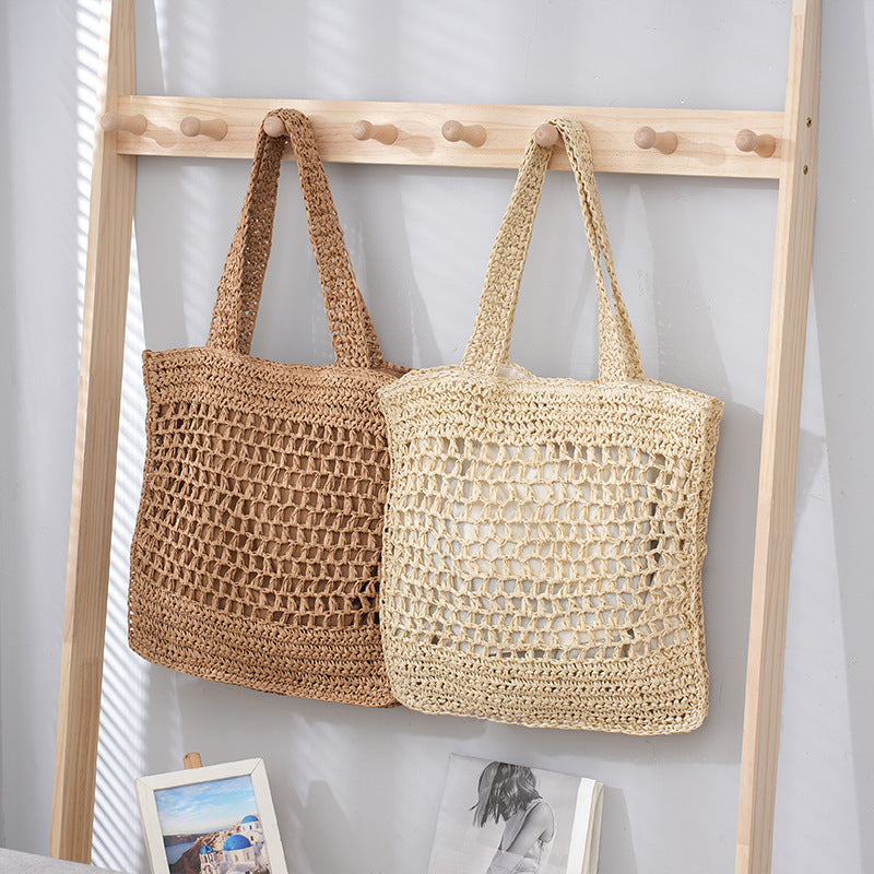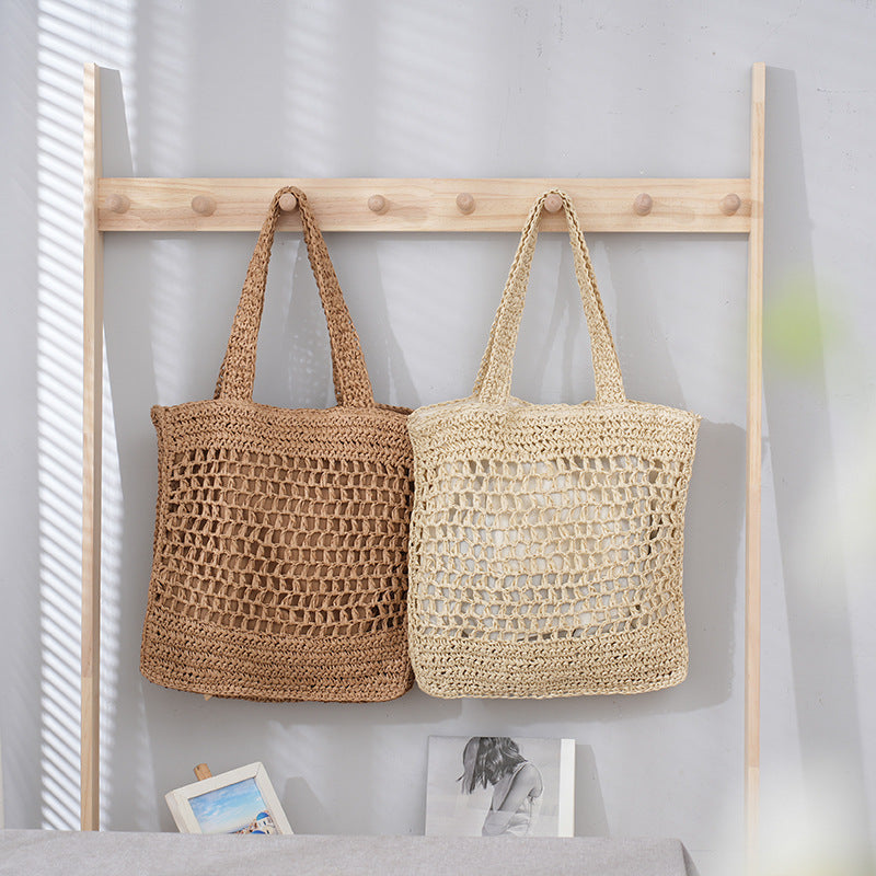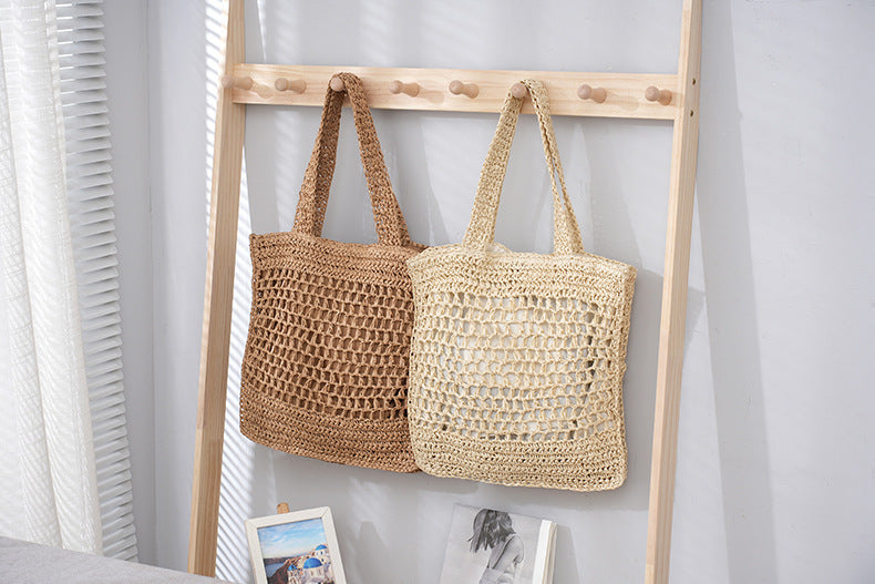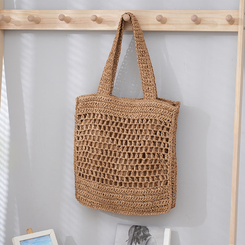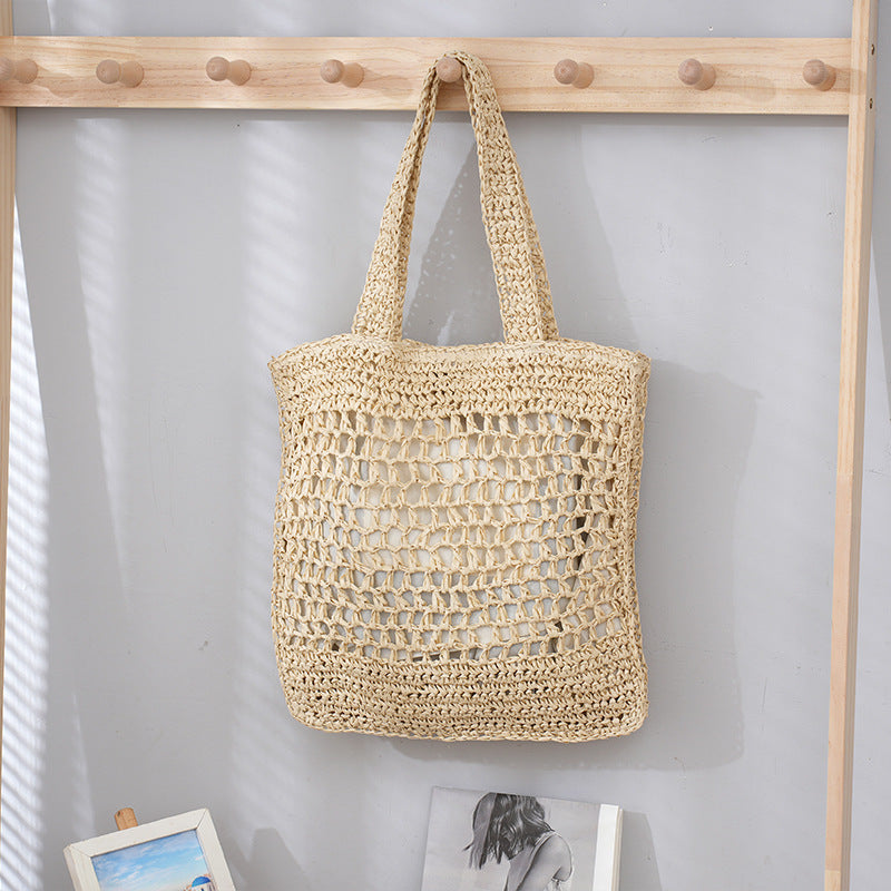 Women's Retro Artistic Beach Bag Paper String Hand-woven Beach Vacation Leisure Large Capacity Handbag