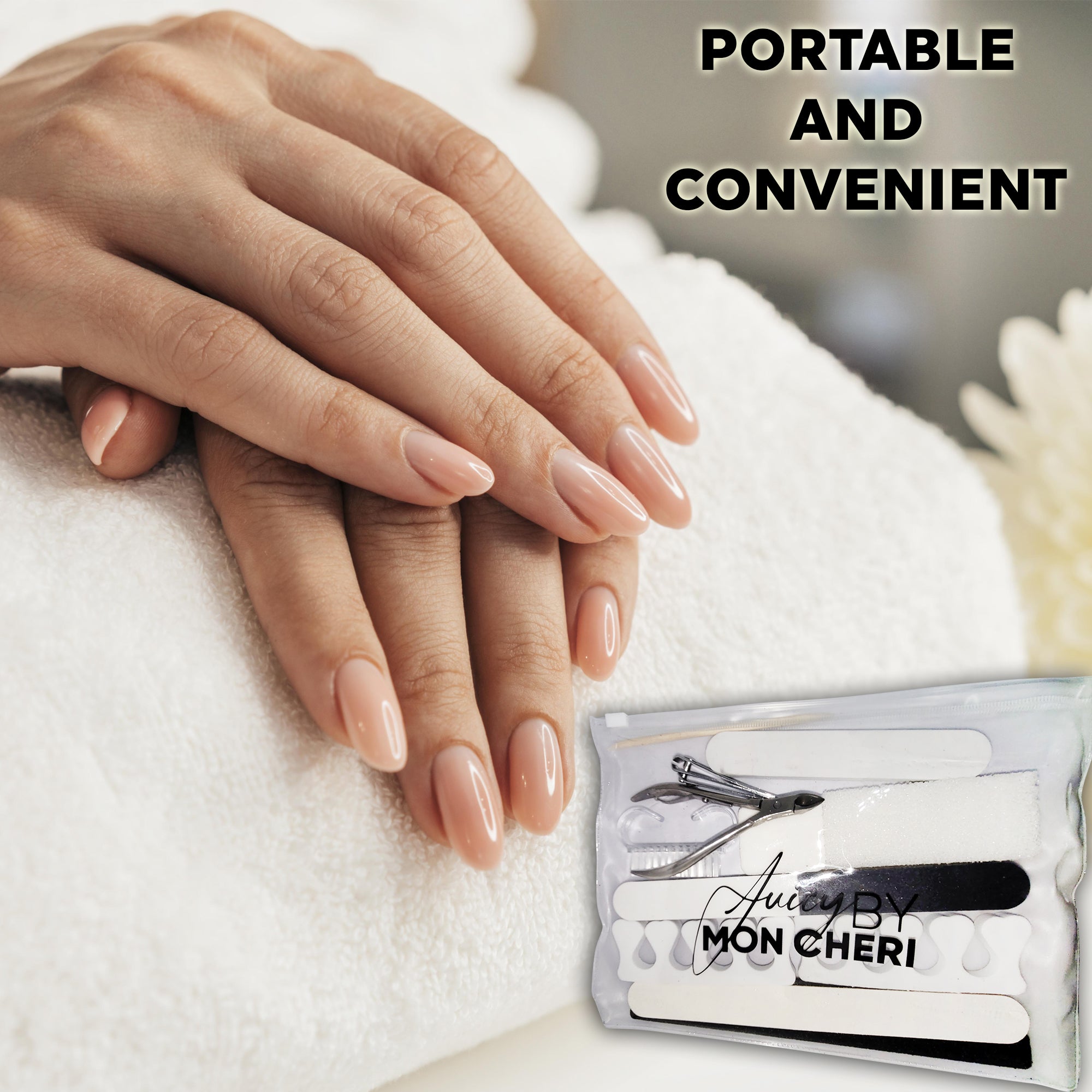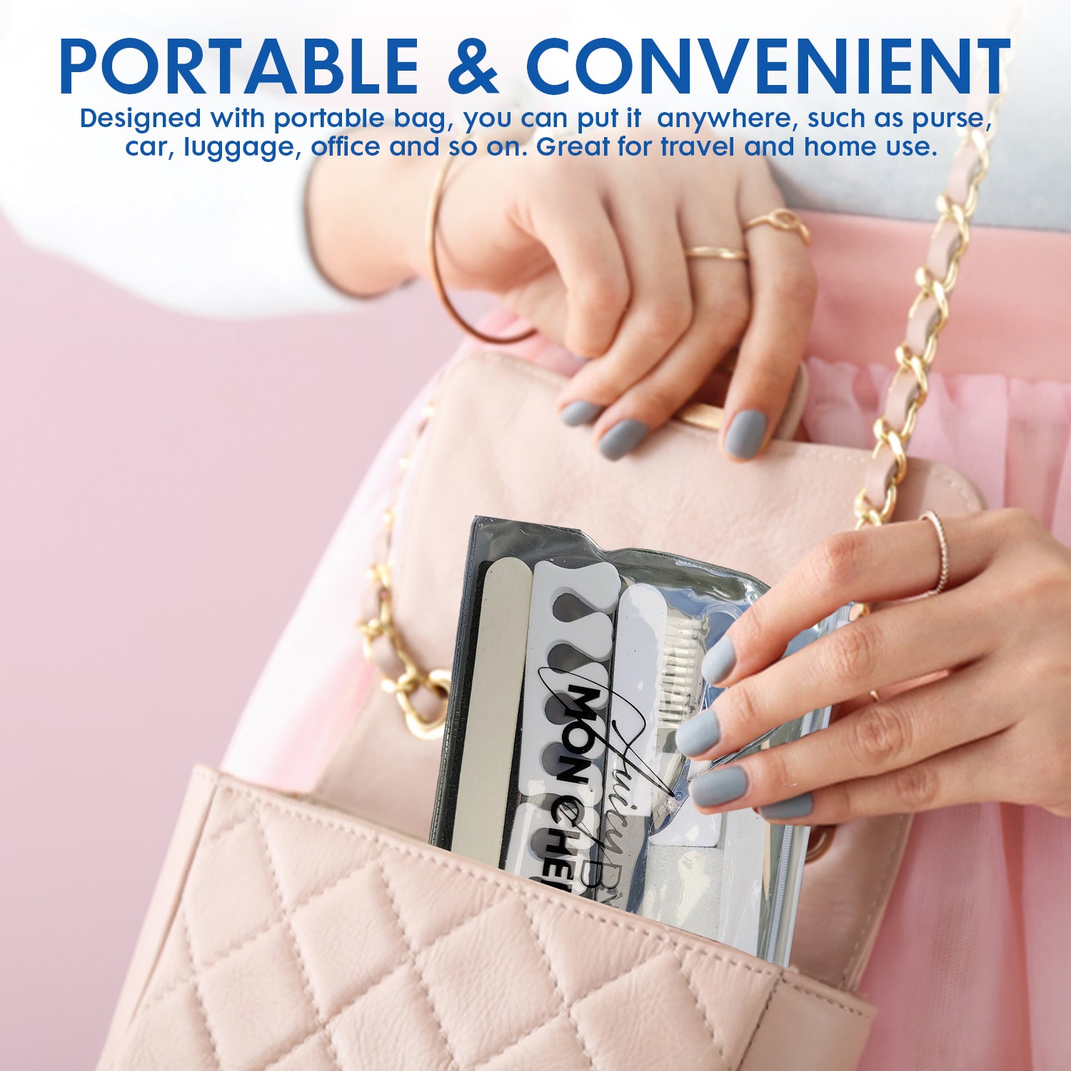 The kit comes in a convenient plastic pouch (6.5” x 8.5”) for easy storage and travel. Get the ultimate pampering experience with the Complete Mani-Pedi Kit!