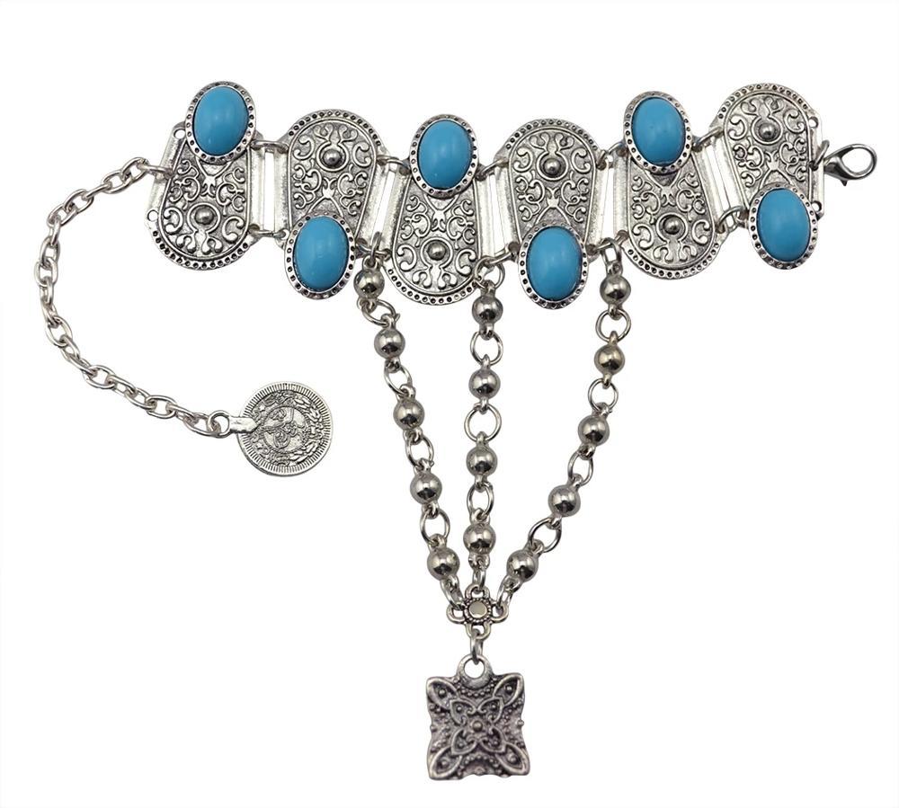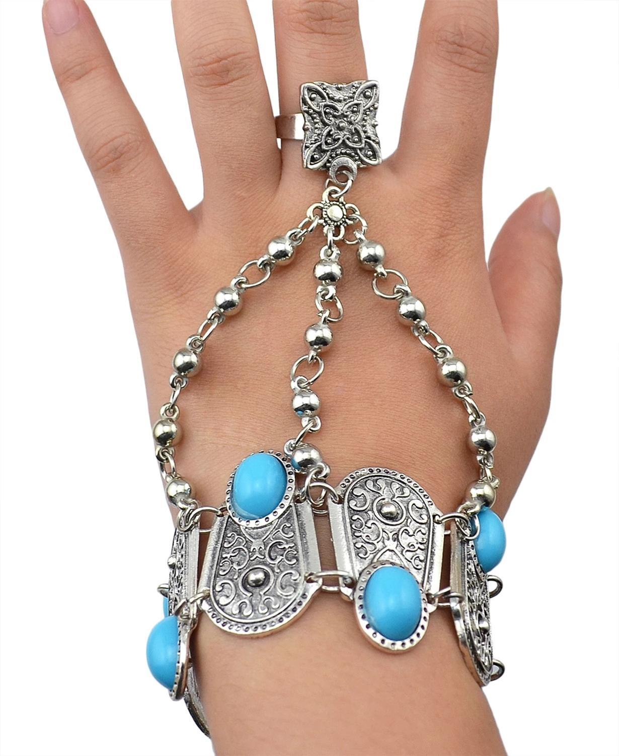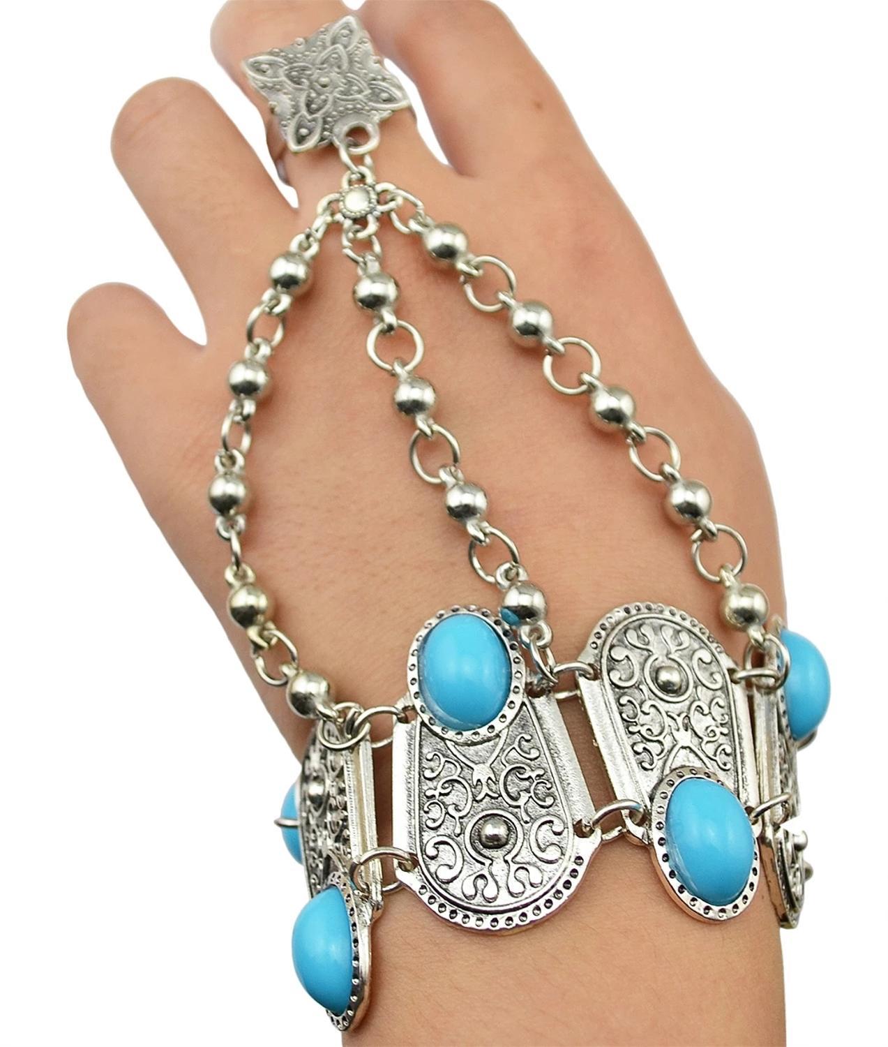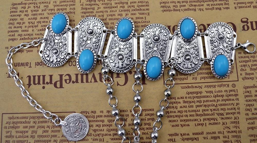 European And American Foreign Trade Fashion New Style Coin Tassel Retro Exaggeration Engraved Flower Chain Finger Bracelet Jewelry Wholesale