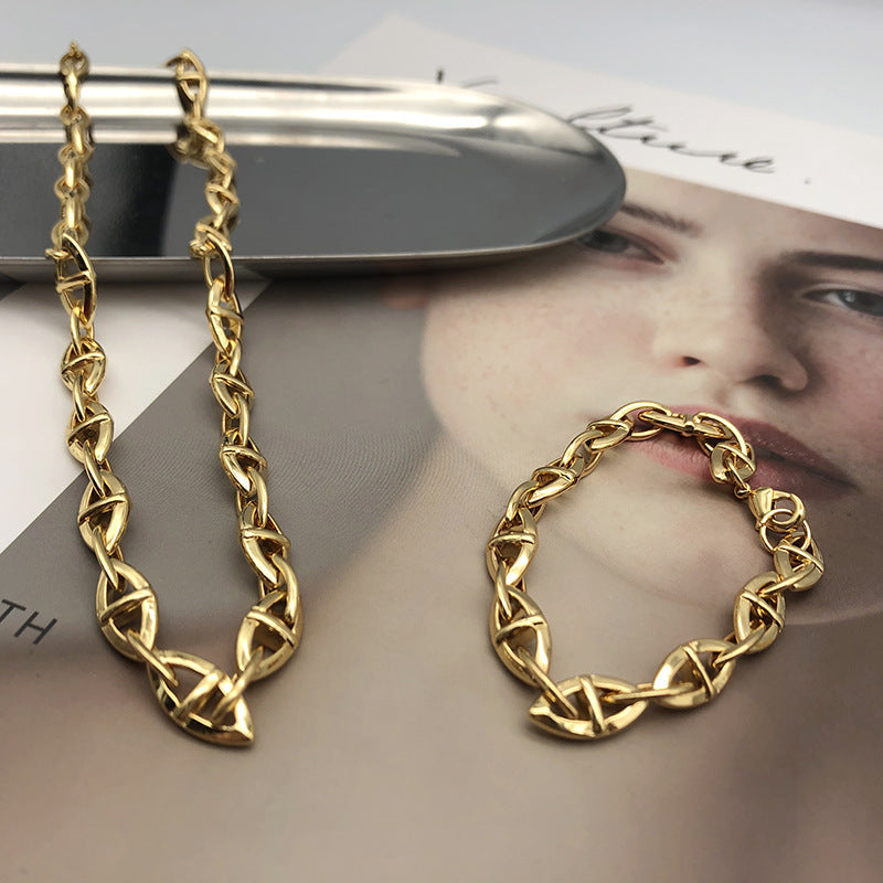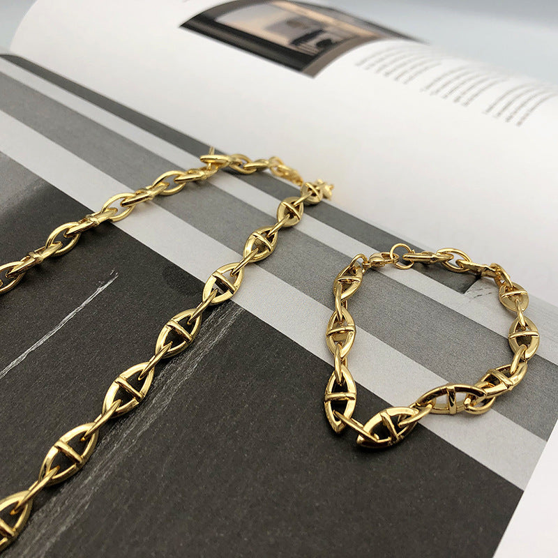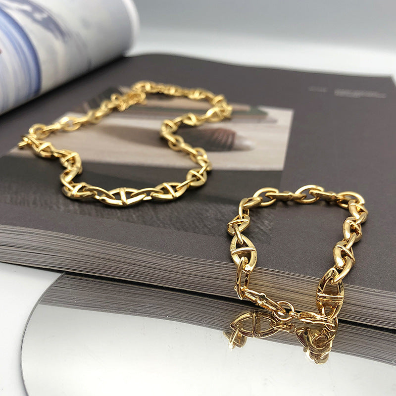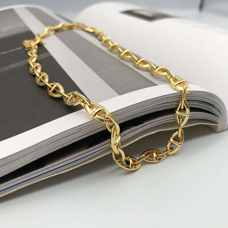 European And American Pig Nose Necklace Female Sharp Metal Sense Chain Plated Real Gold 18K Simple Niche Design Clavicle Chain Ins