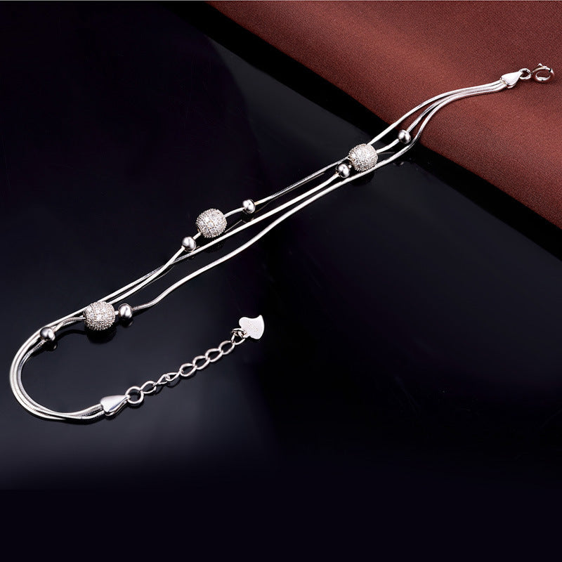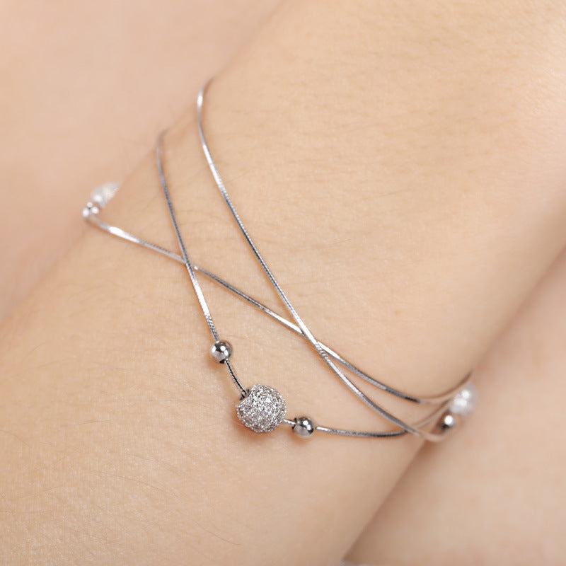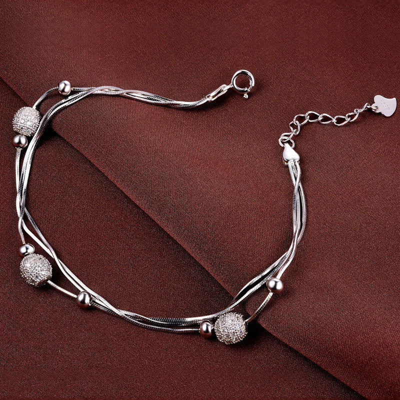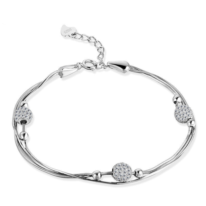 Japanese And Korean Version Of Fashion Personality Small Bracelet S925 Silver Inlaid Zircon To Meet The Round Bead To Bead Multi-Layer Bracelet Female