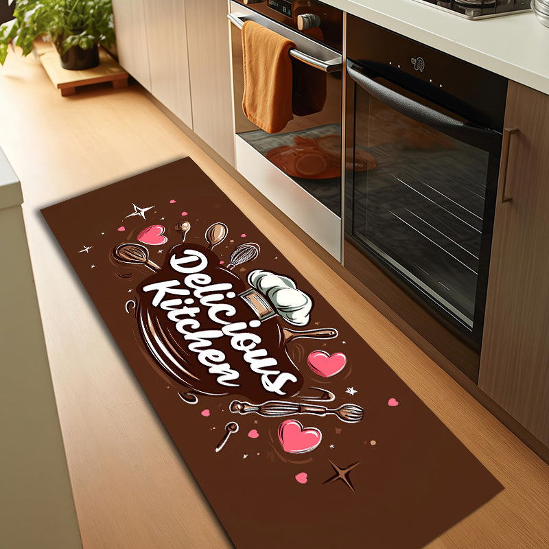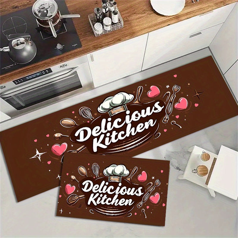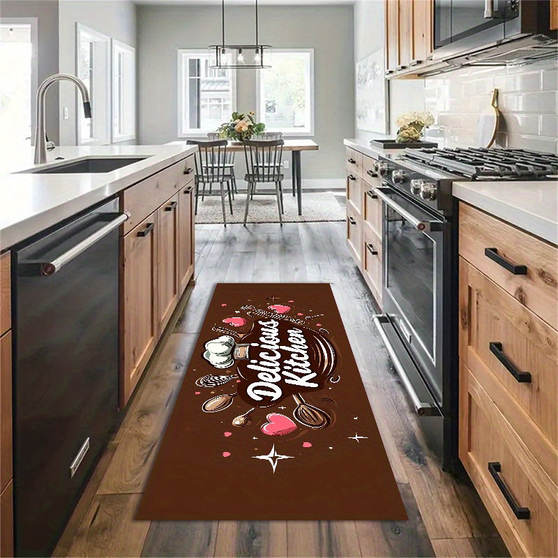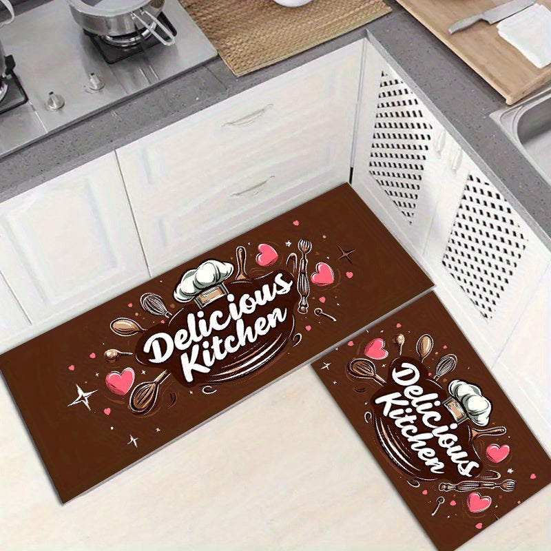1/3pcs Set Of Thicken Polyester Carpet With Anti-slip Dot Plastic Bottom, Chocolate Brown Pattern Print Rug, Machine Washable Non-shedding And Stain-resistant Decorative Mat For Living Room Kitchen Entrance