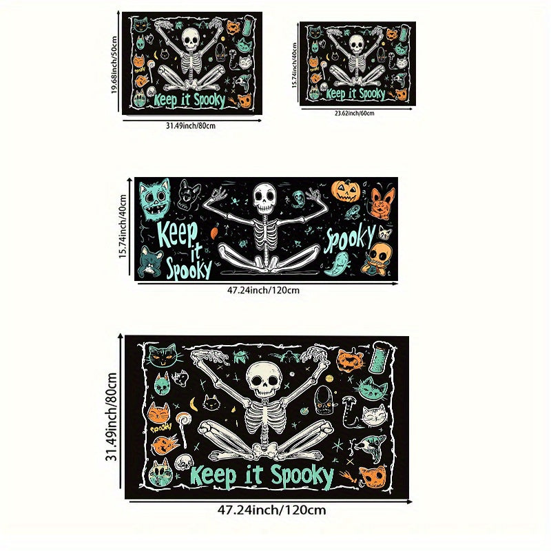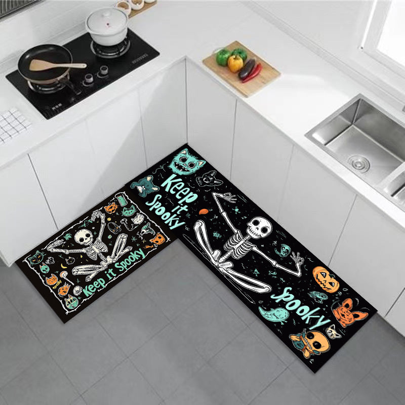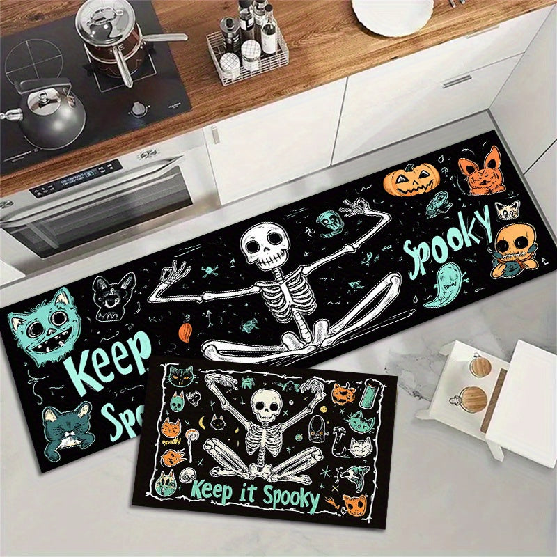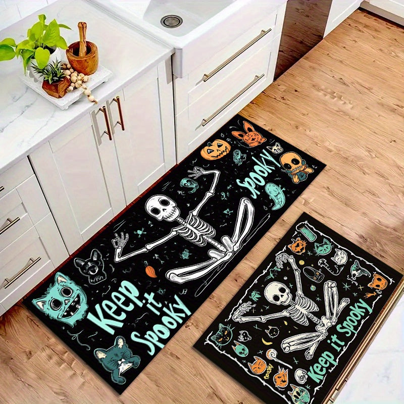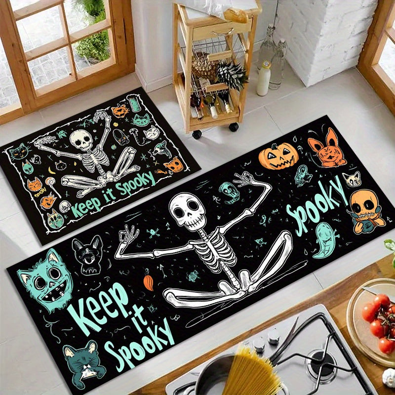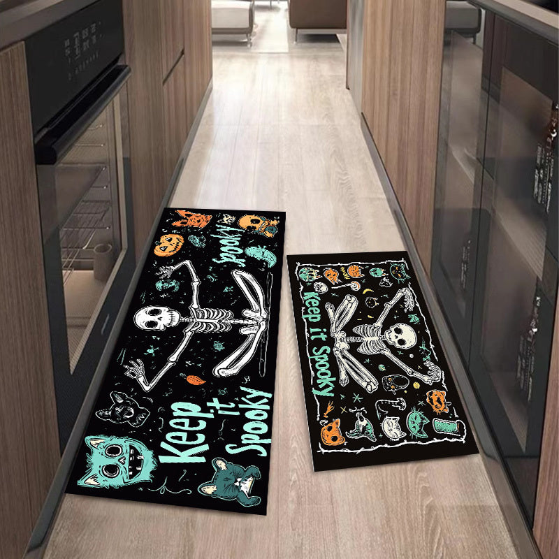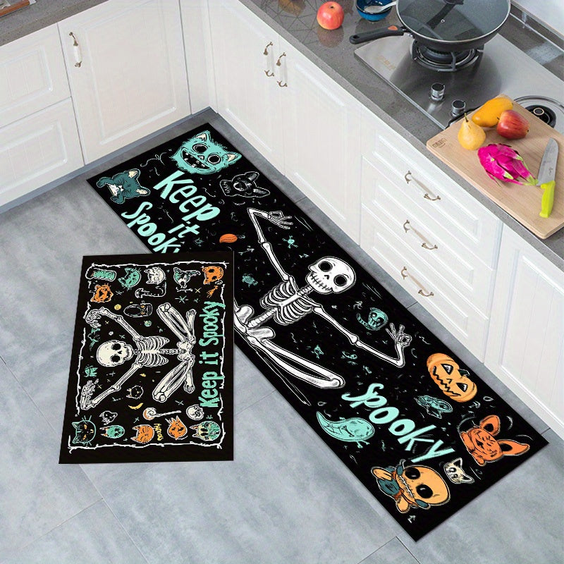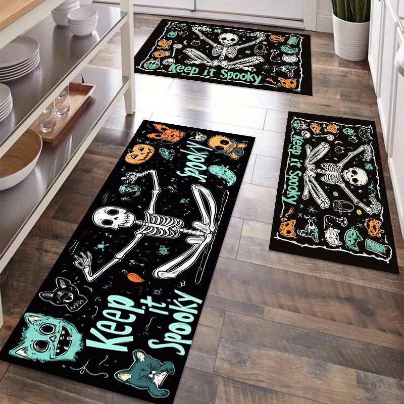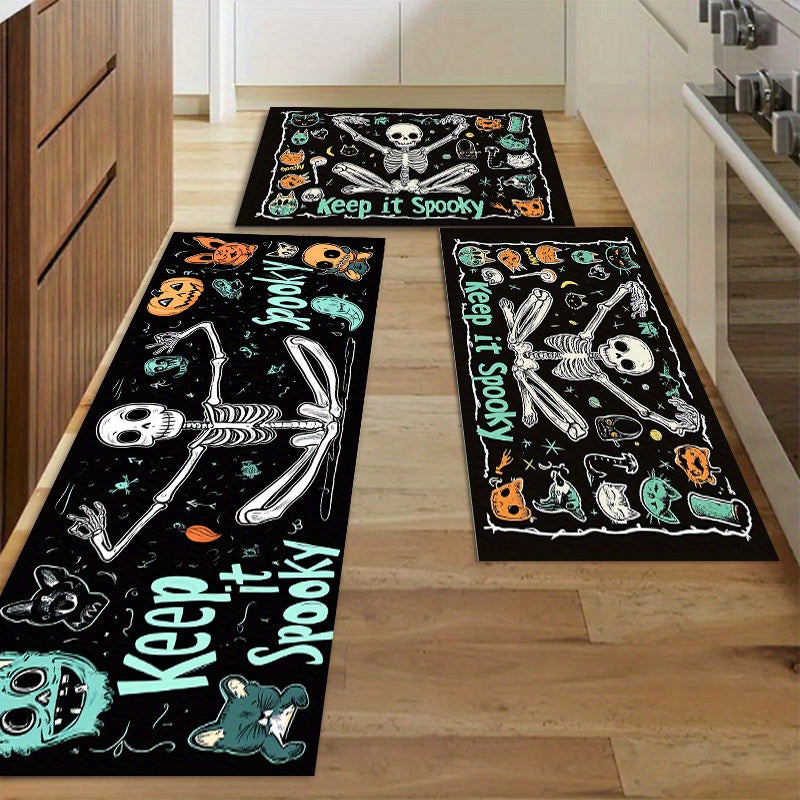 1/3pcs Set Of Thicken Polyester Carpet With Anti-slip Dot Plastic Bottom, Skeleton And Pumpkin Head Pattern Print Rug, Machine Washable Non-shedding And Stain-resistant Decorative Mat For Living Room Kitchen Entrance, Halloween Decor