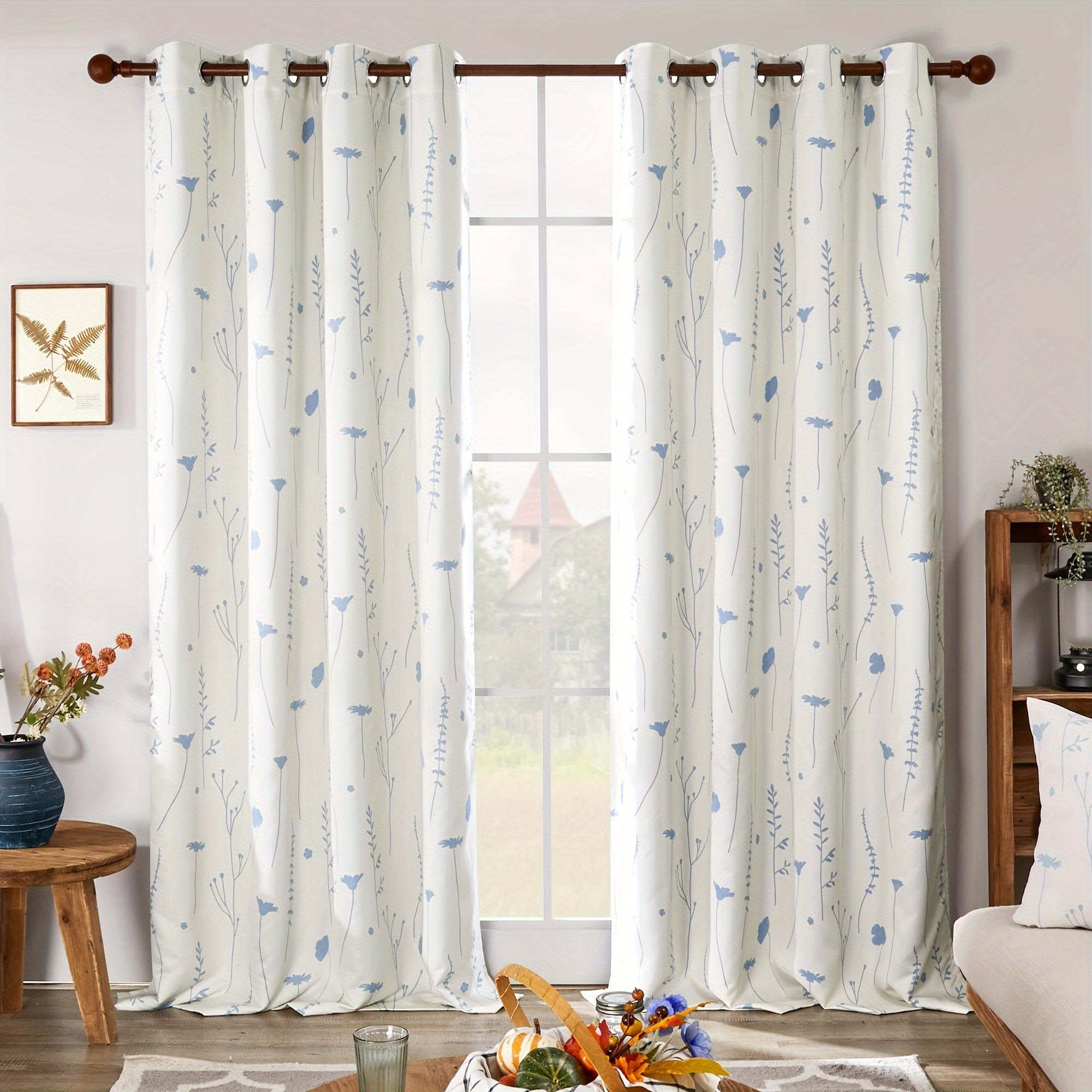 100% Blackout Curtains for Bedroom, Elegant Light Blocking Living Room Curtains, Thermal Insulated Window Curtains with Floral Pattern (52x84 Inch, Beige and Blue, 2 Panels)