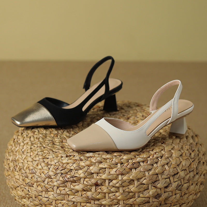 Women's Color Matching Sheepskin Sandals