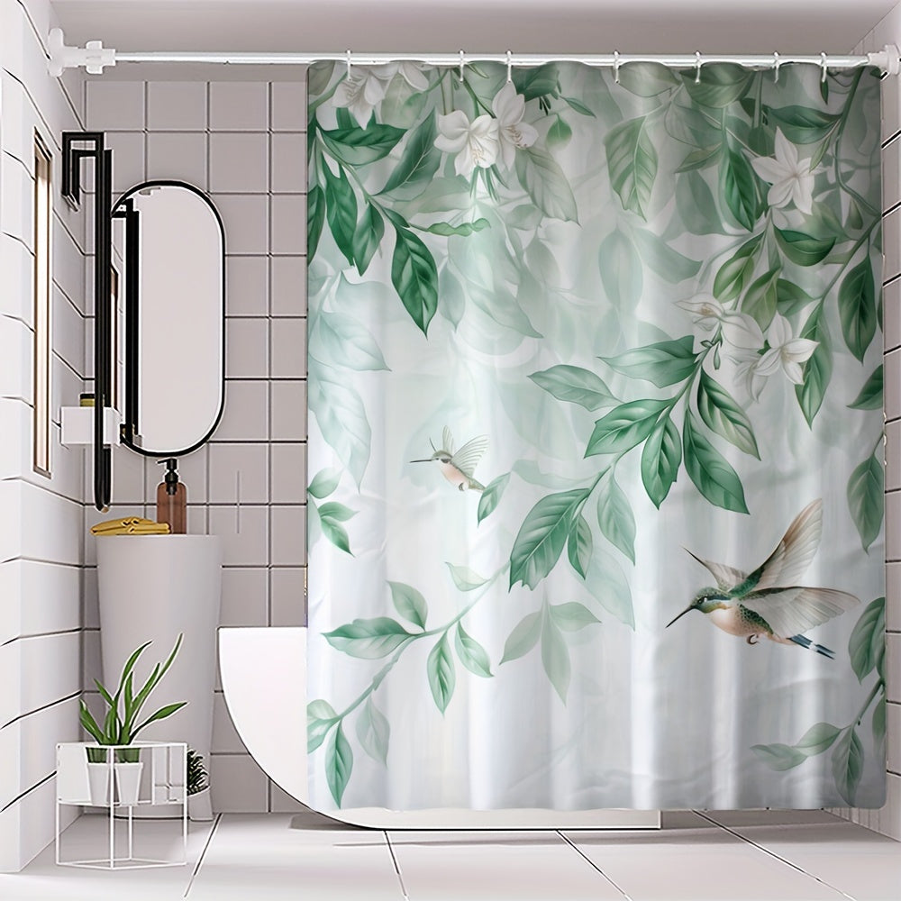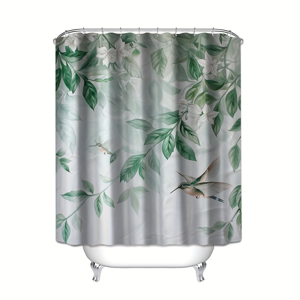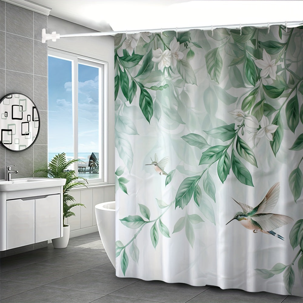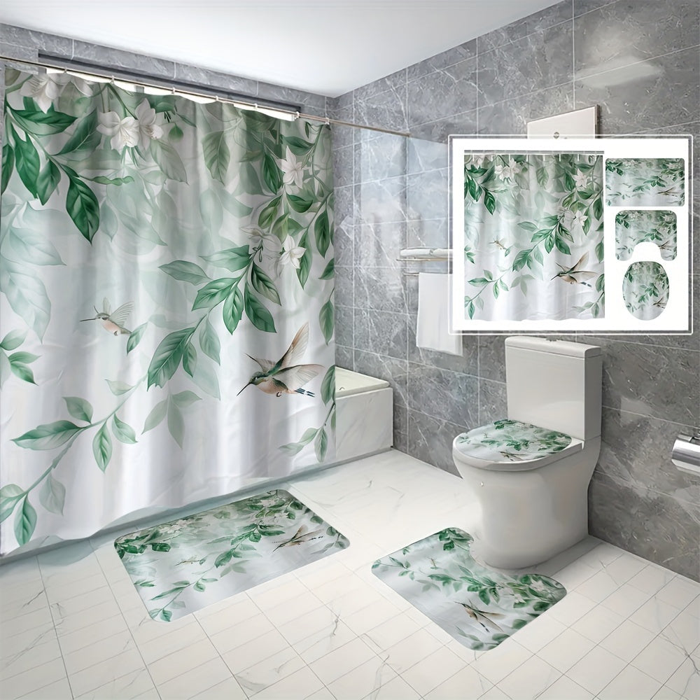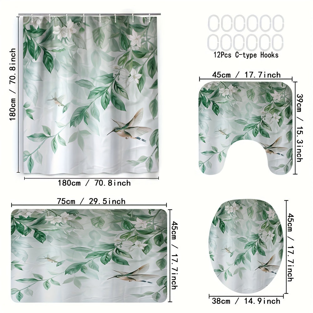 4 pcs green leaf digital printing polyester waterproof bath curtain no-perforated partition bathroom bathroom four-piece set