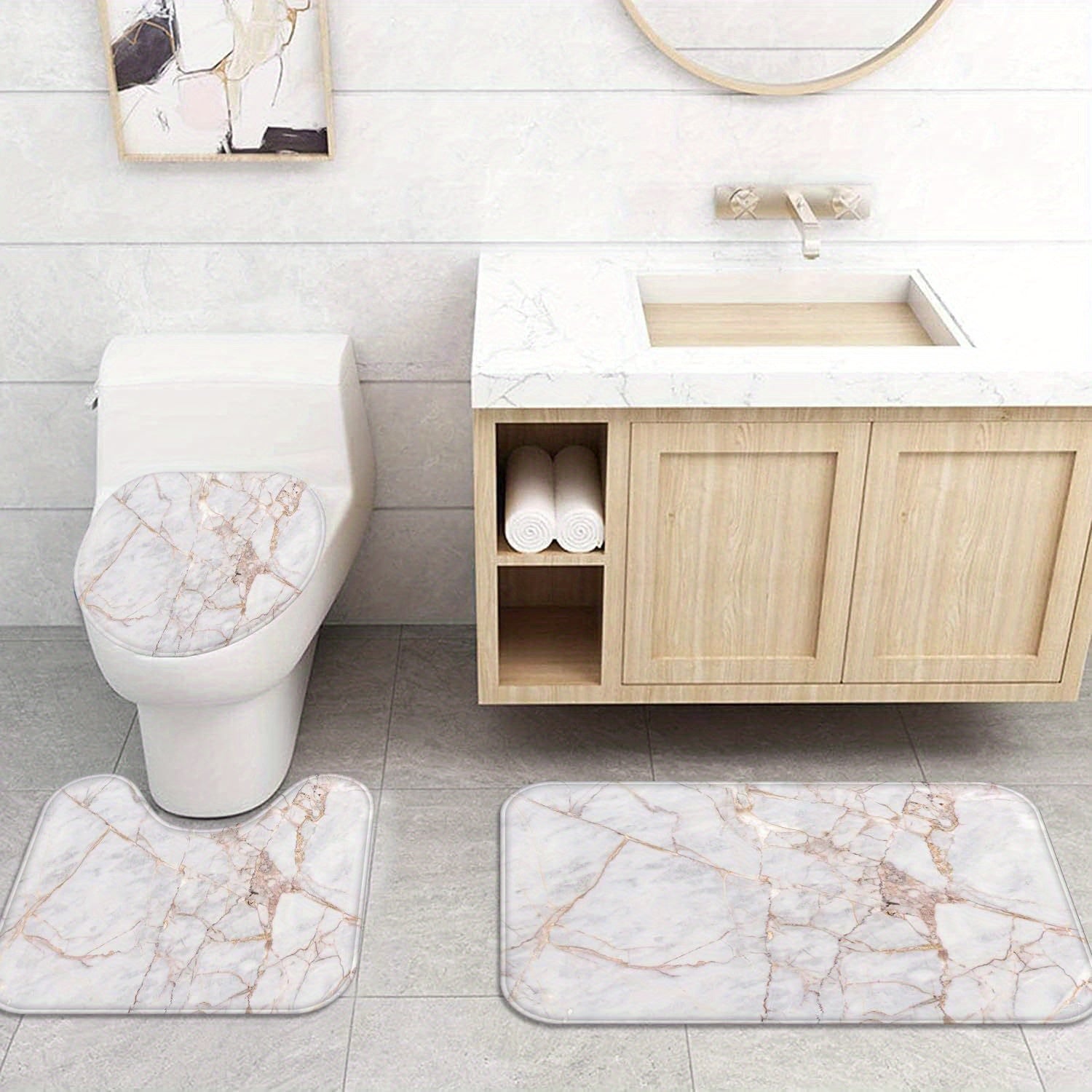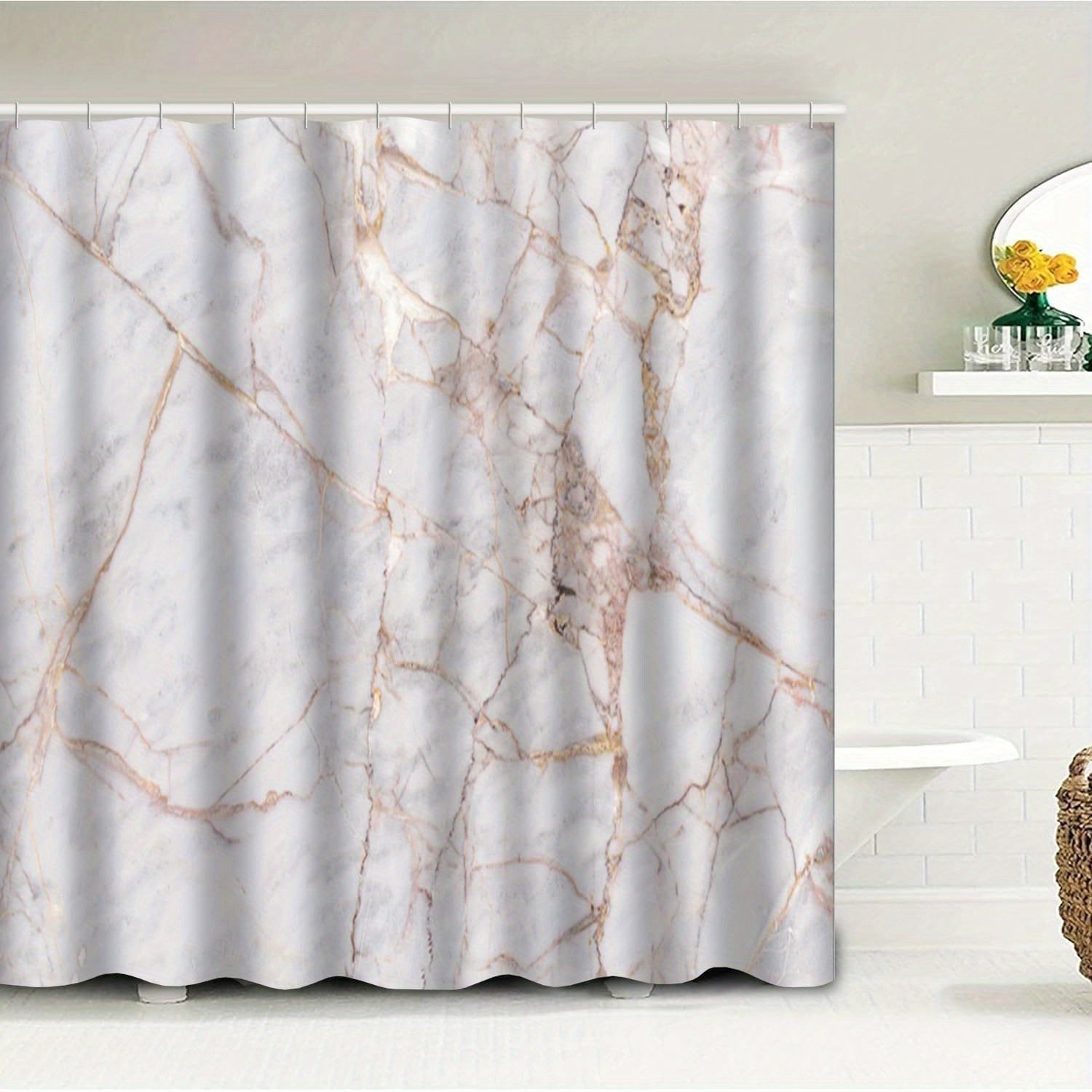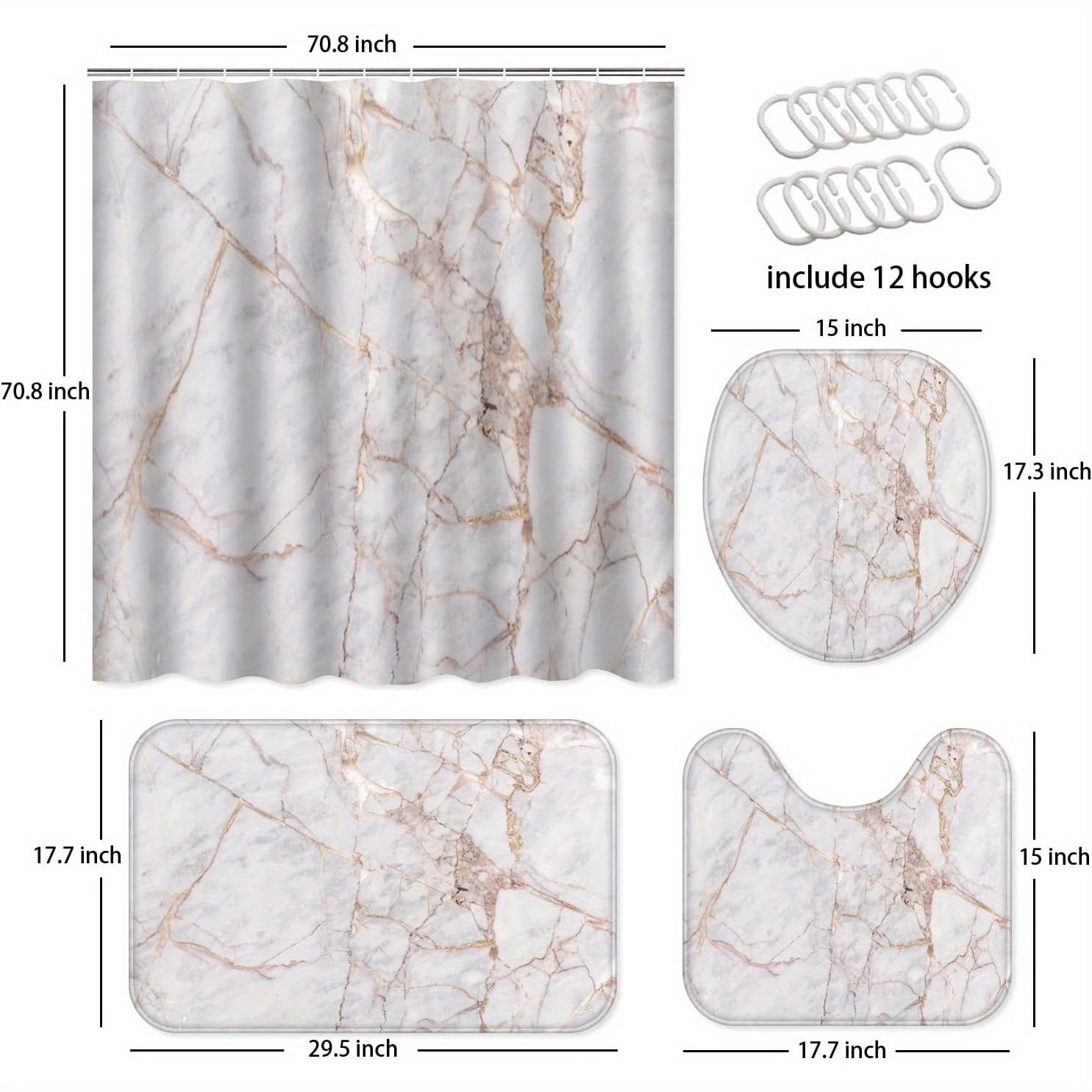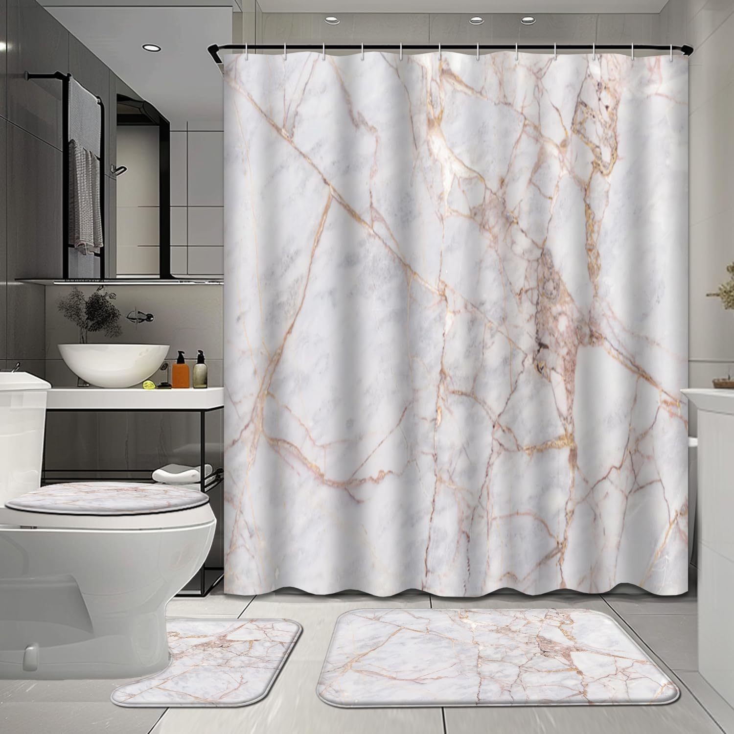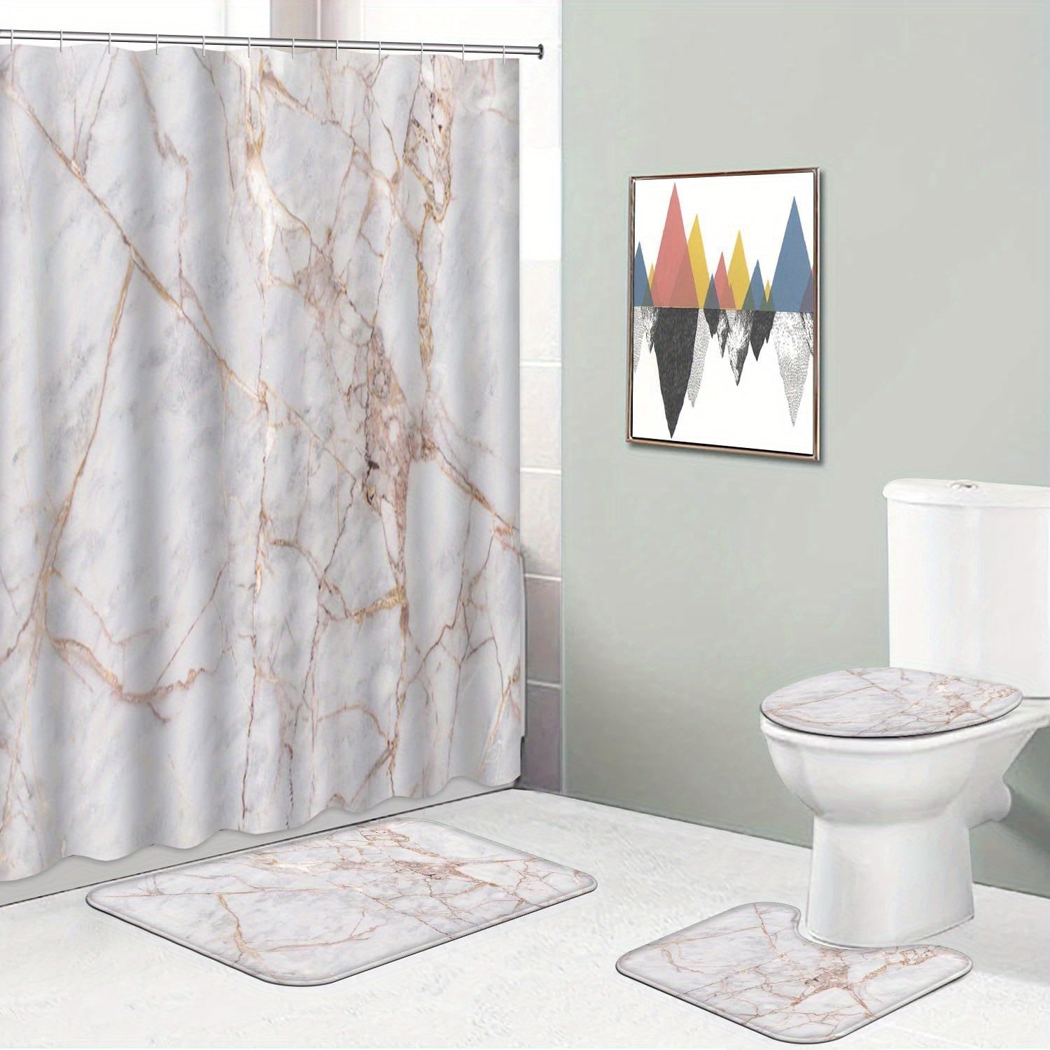 4 Pcs Marble Bathroom Shower Curtain Sets with Rugs, Golden White Bathroom Sets with Shower Curtain and Rugs, Creative Bathroom Decor Sets with Mats and Towels