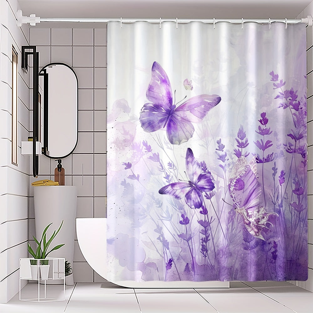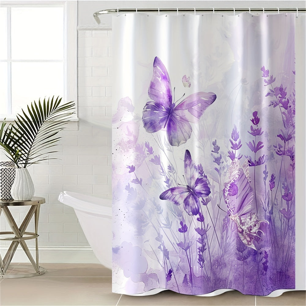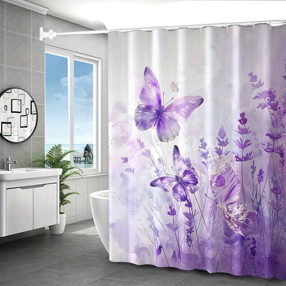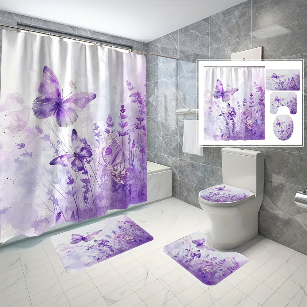 4 pcs purple butterfly digital print polyester waterproof bath curtain non-punching partition bathroom bathroom four-piece set