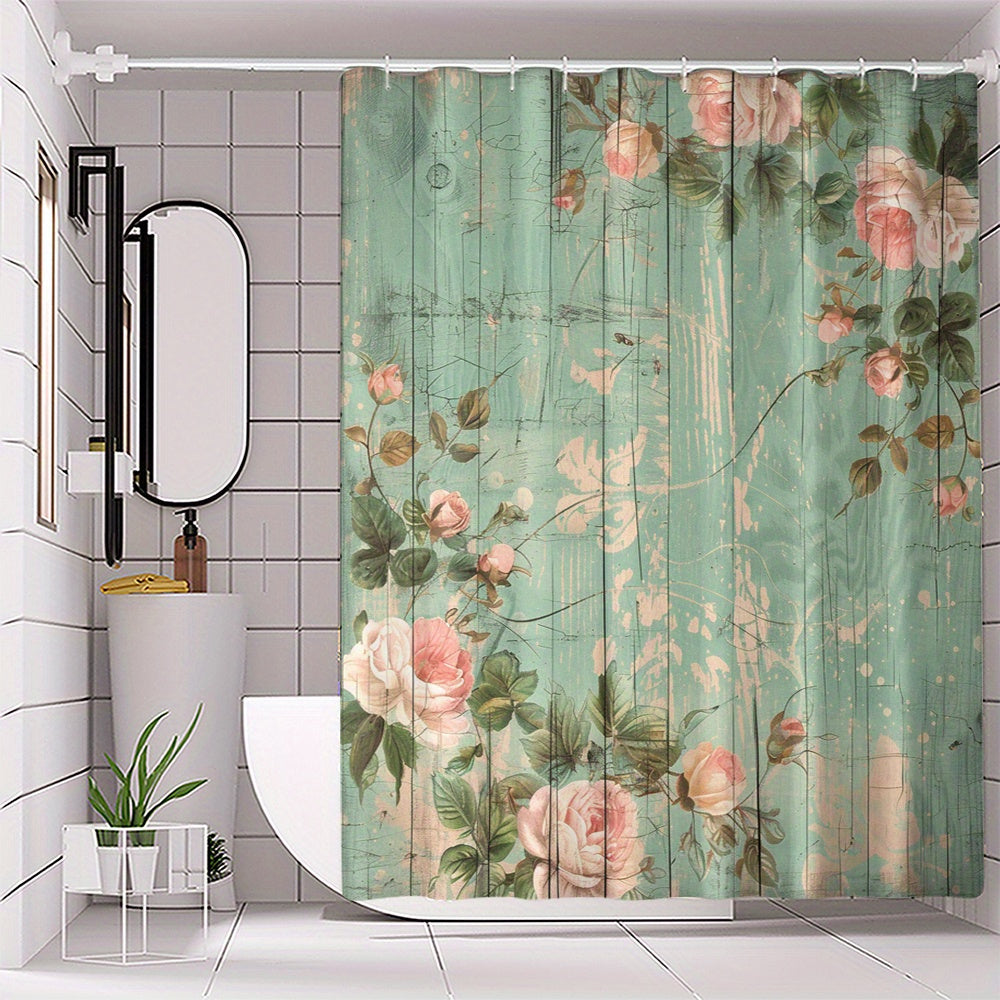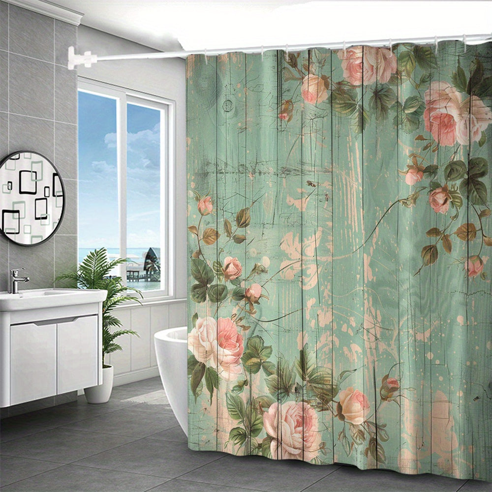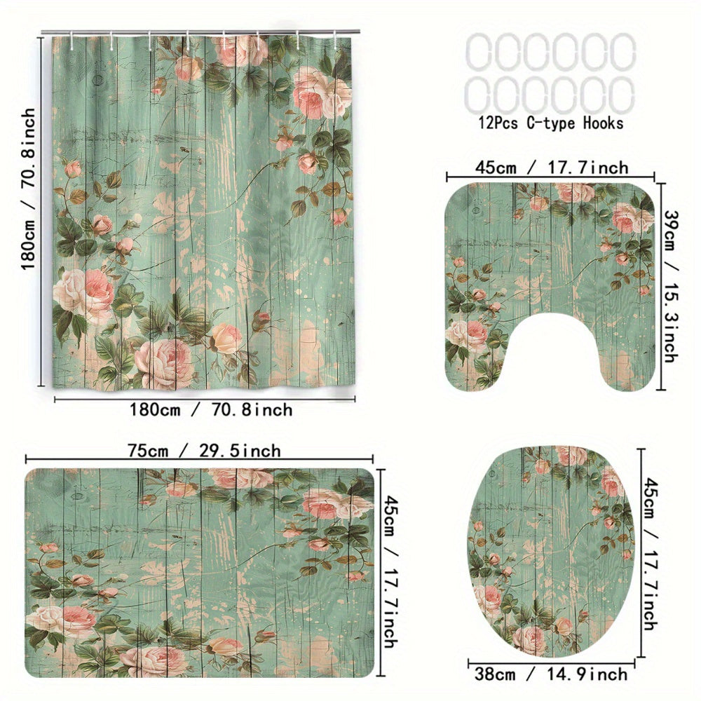 4 pcs rose board digital printed polyester waterproof bath curtain non-punching partition bathroom four-piece set