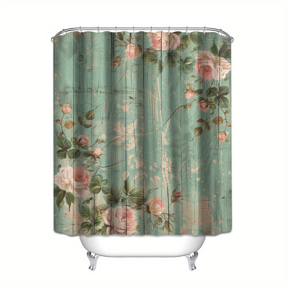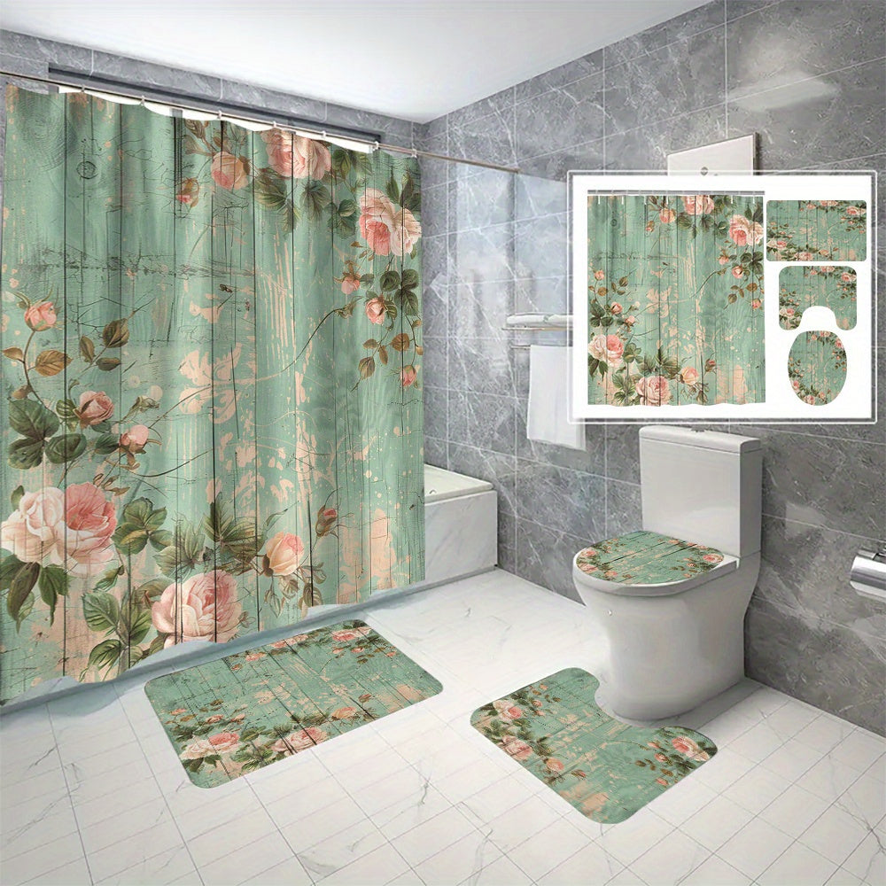 4 pcs rose board digital printed polyester waterproof bath curtain non-punching partition bathroom four-piece set