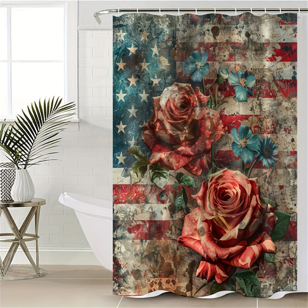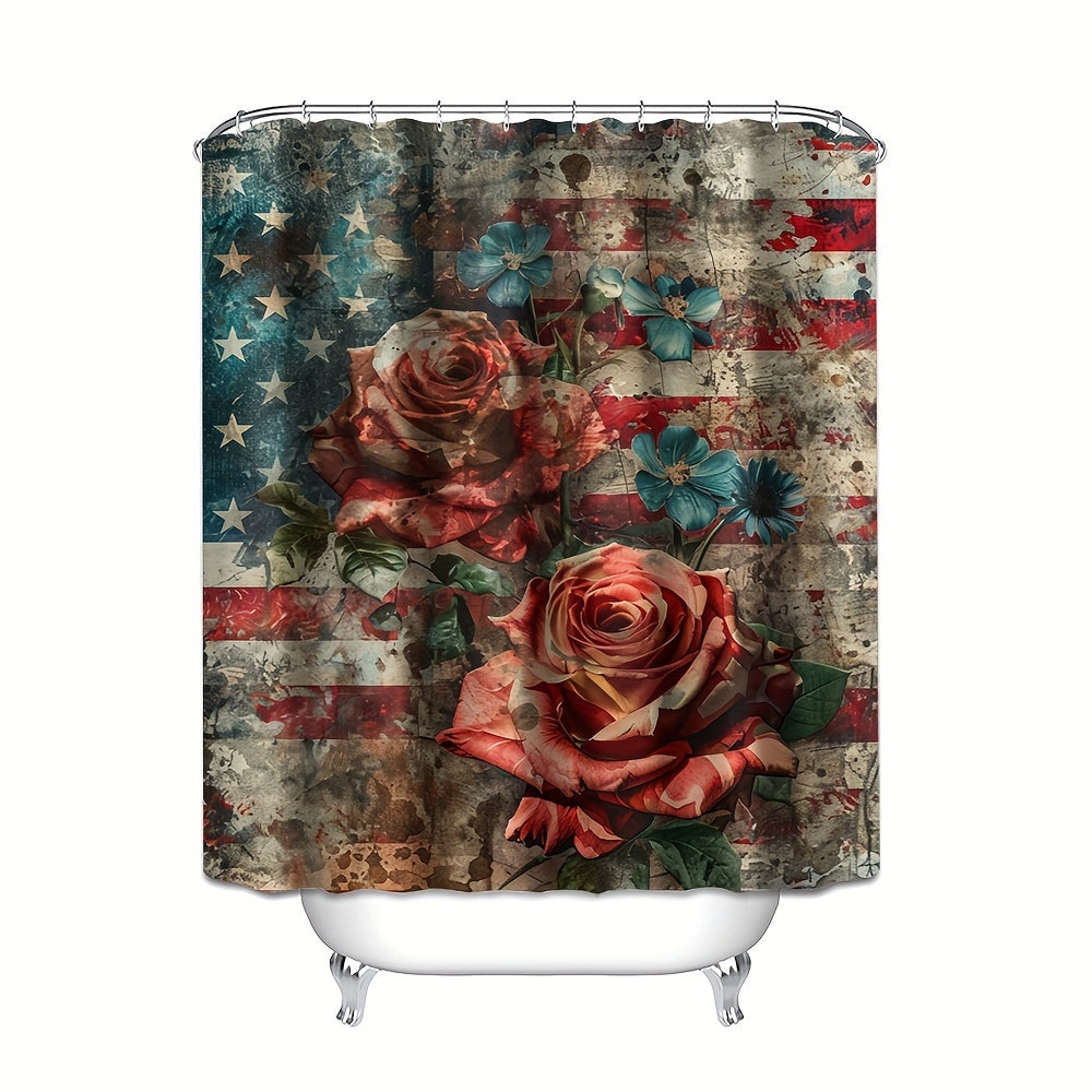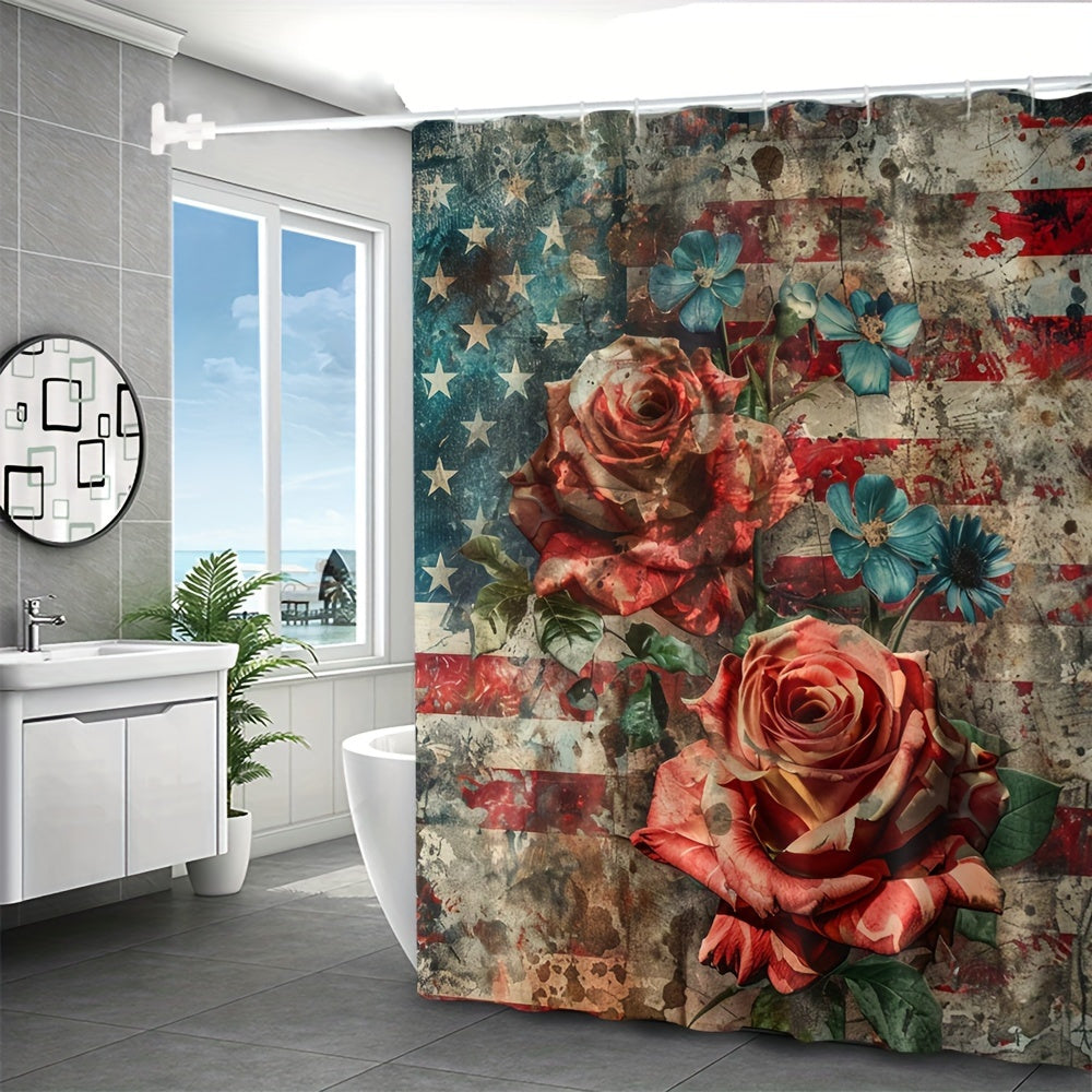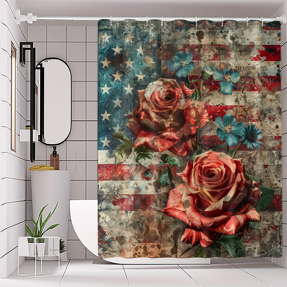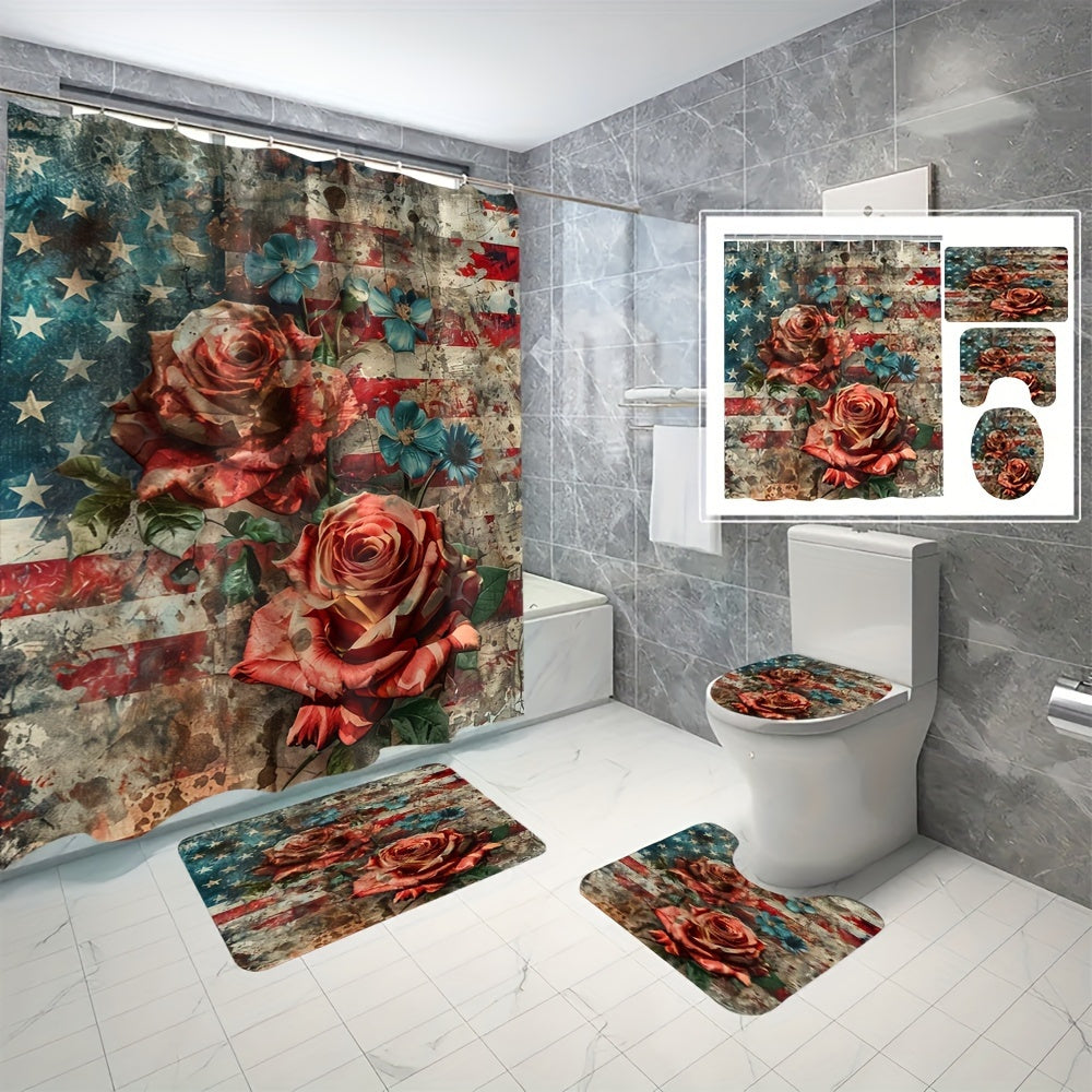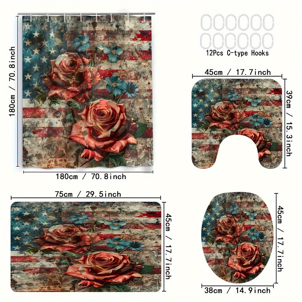 4 pcs Rose Flag digital print polyester waterproof bath curtain non-free partition bathroom four piece set