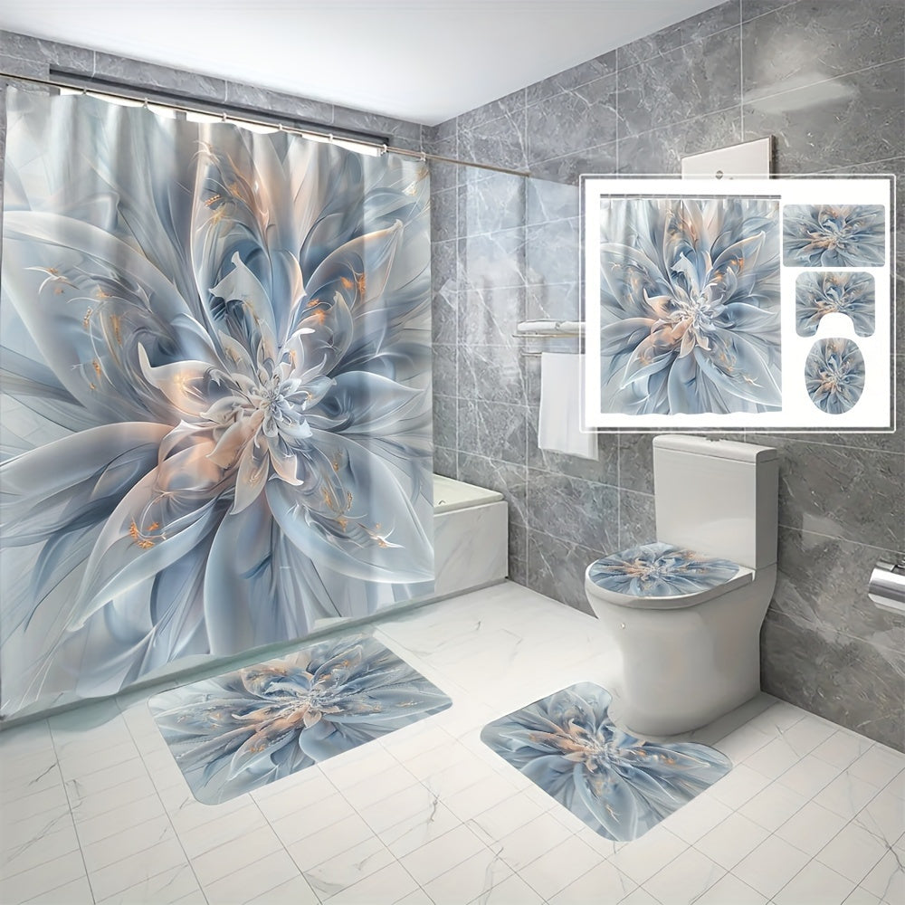 4 pcs stamens digital printing polyester waterproof bath curtain non-punching partition bathroom bathroom four-piece set