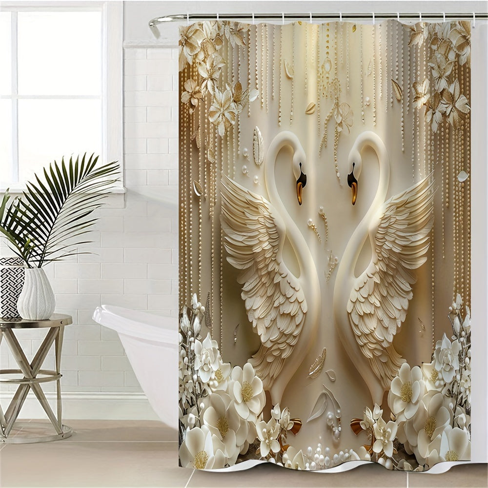 4 pcs Swan digital printing polyester waterproof bath curtain no-perforated partition bathroom bathroom four-piece set