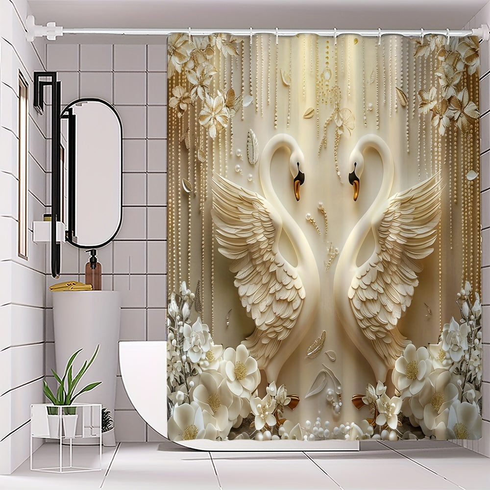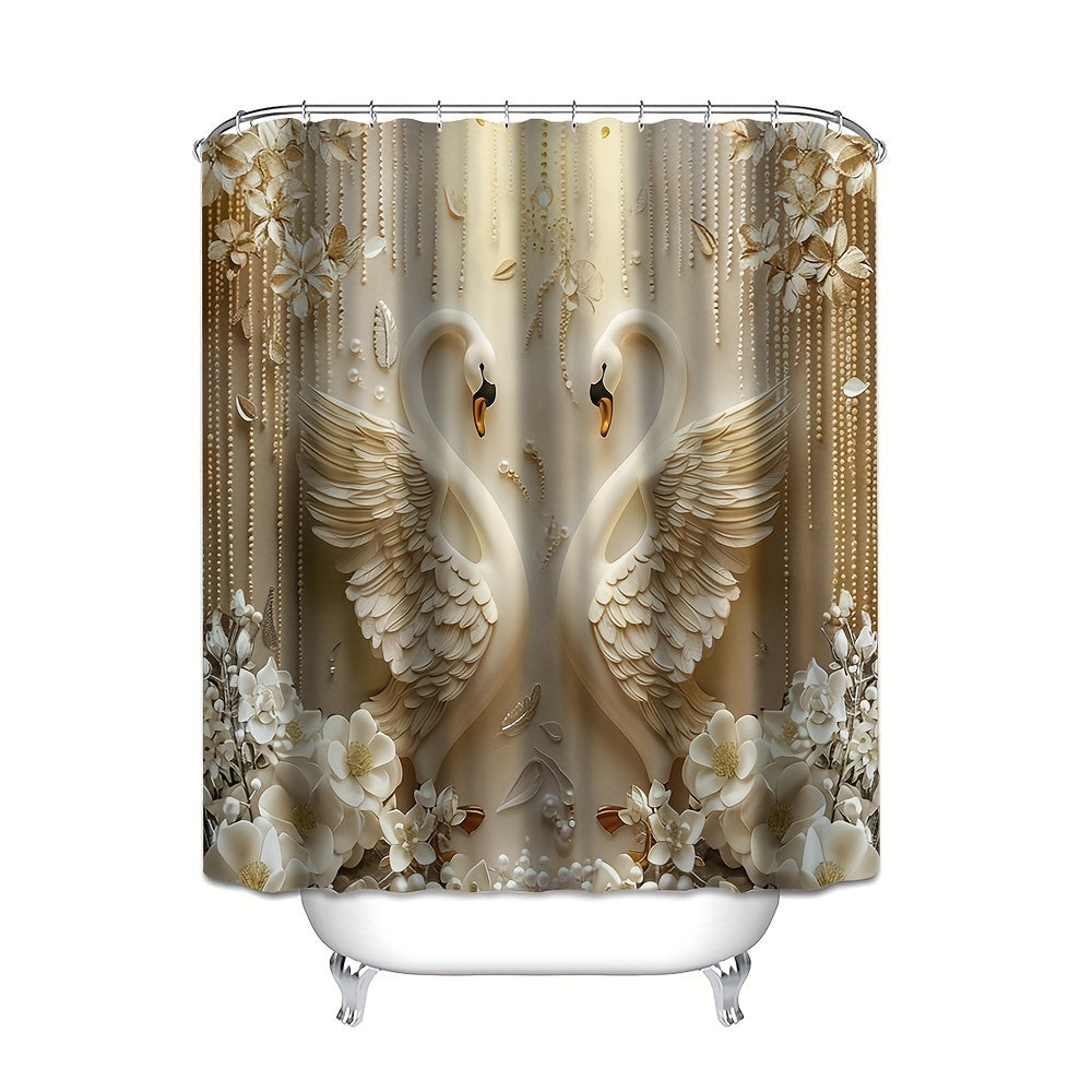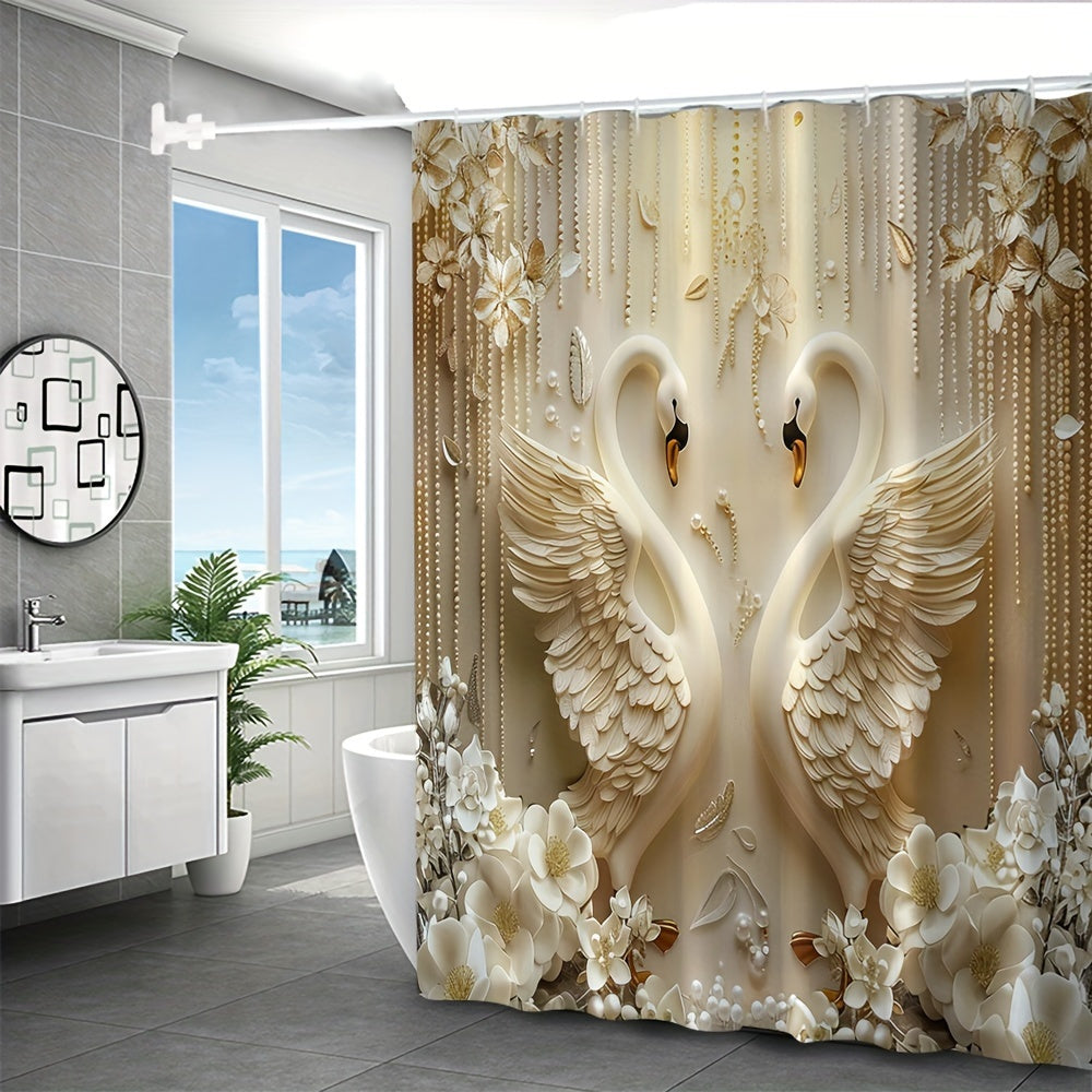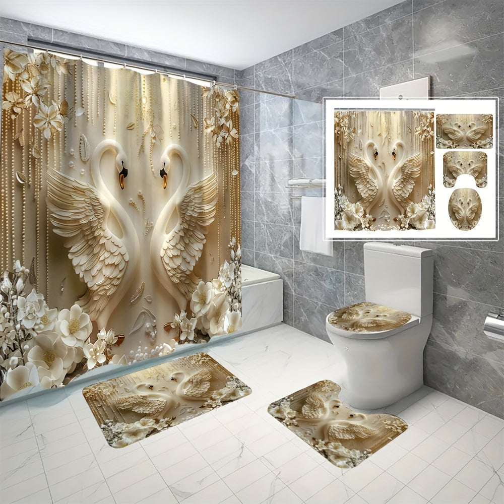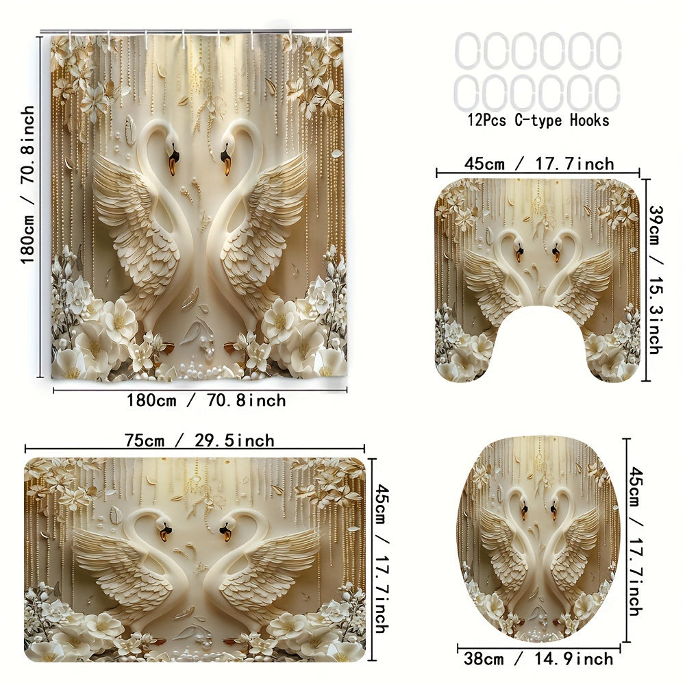 4 pcs Swan digital printing polyester waterproof bath curtain no-perforated partition bathroom bathroom four-piece set