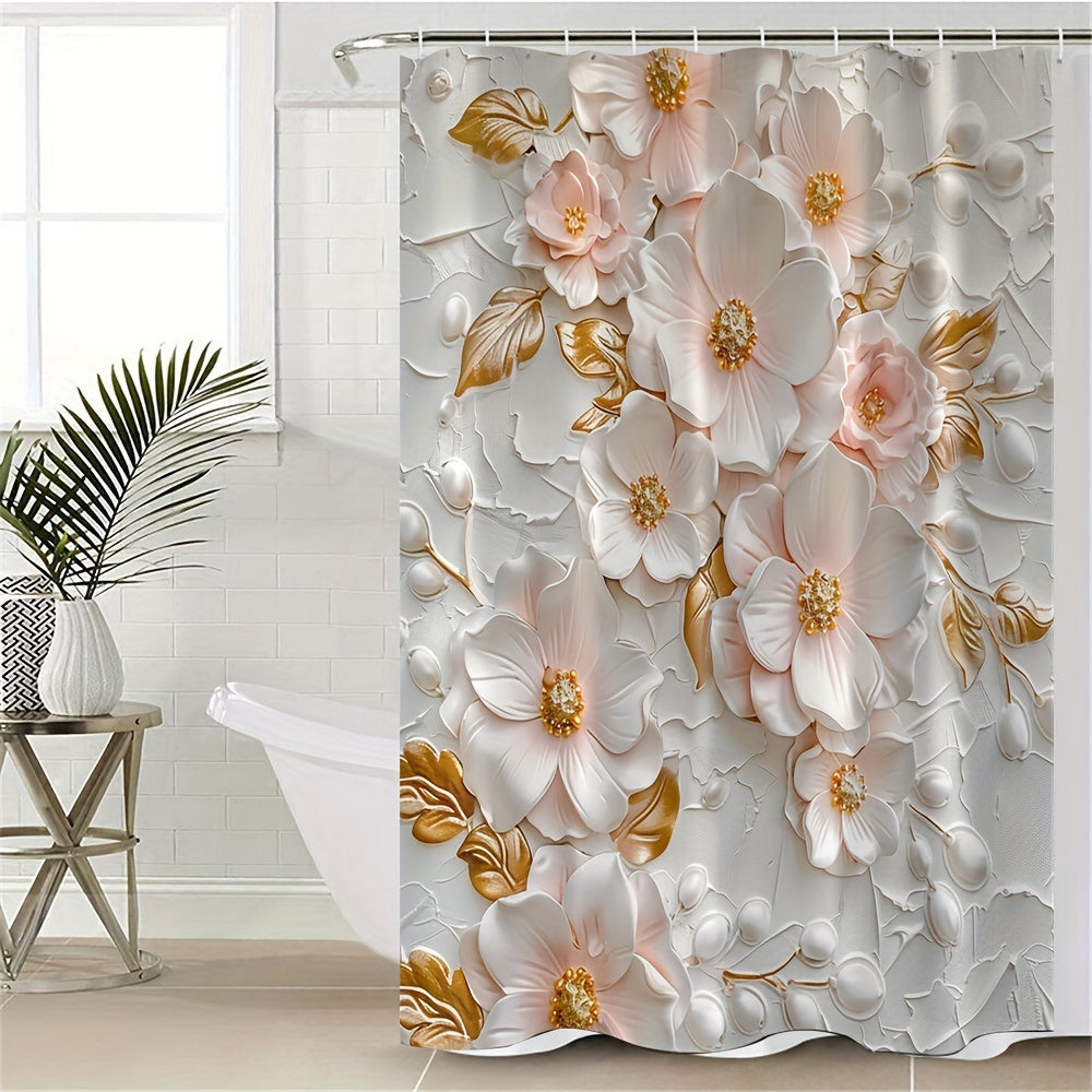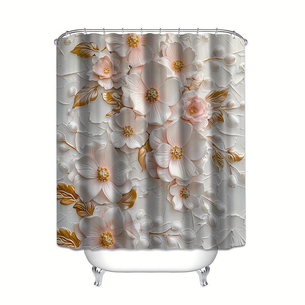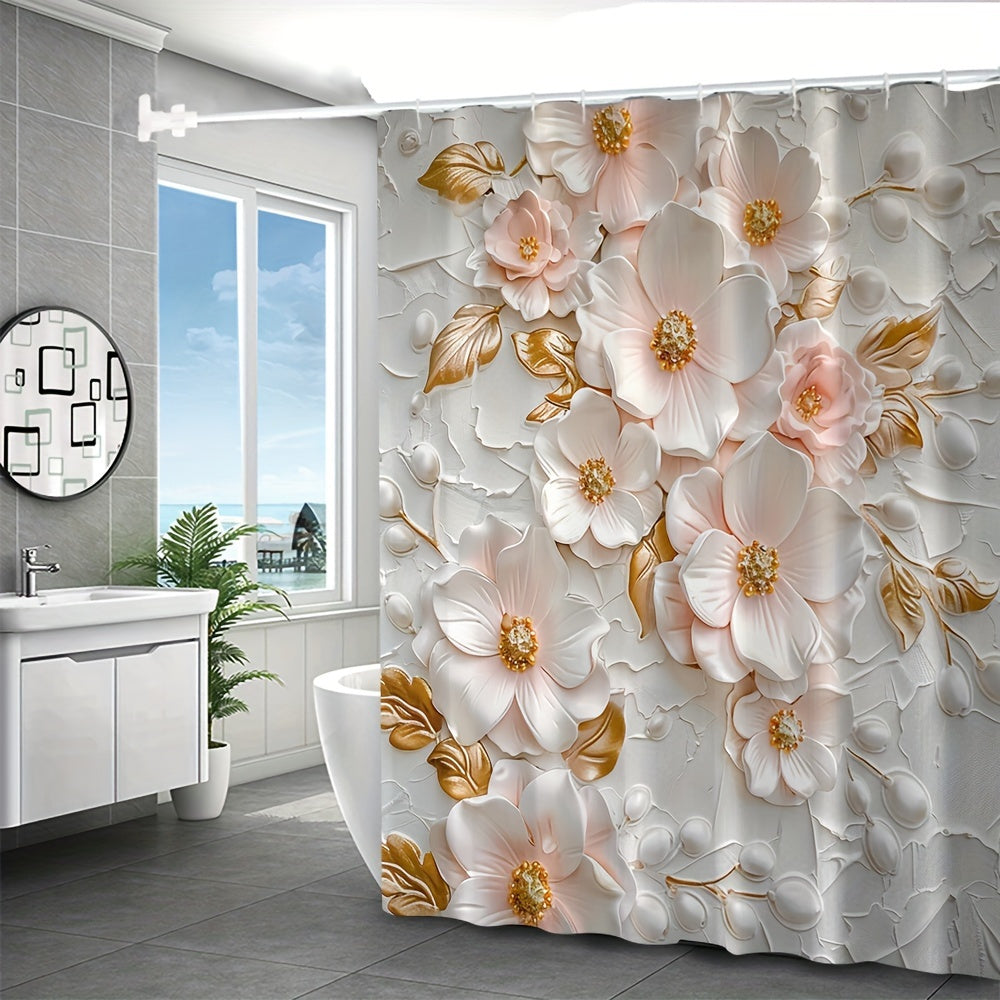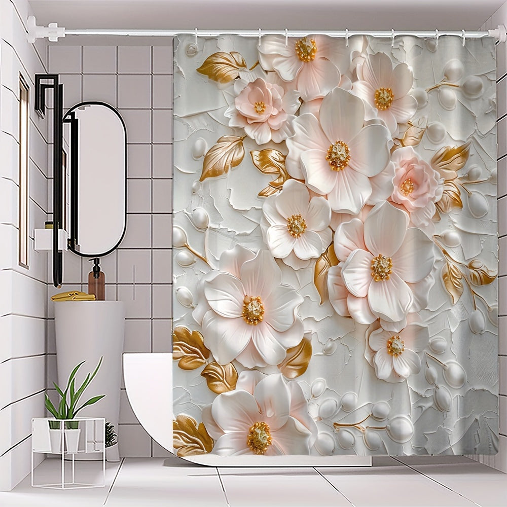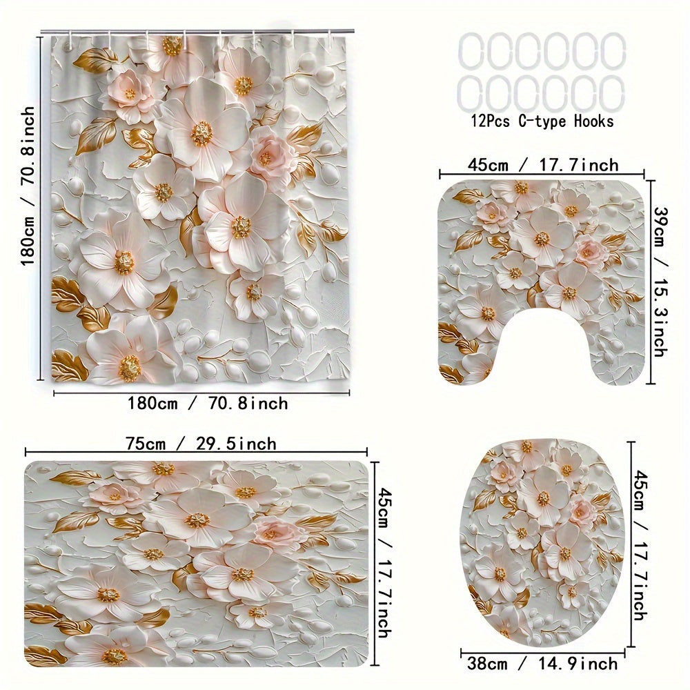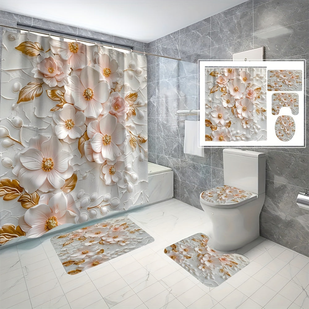 4 pcs three-dimensional flower digital printing polyester waterproof shower curtain non-punching partition bathroom bathroom four-piece set