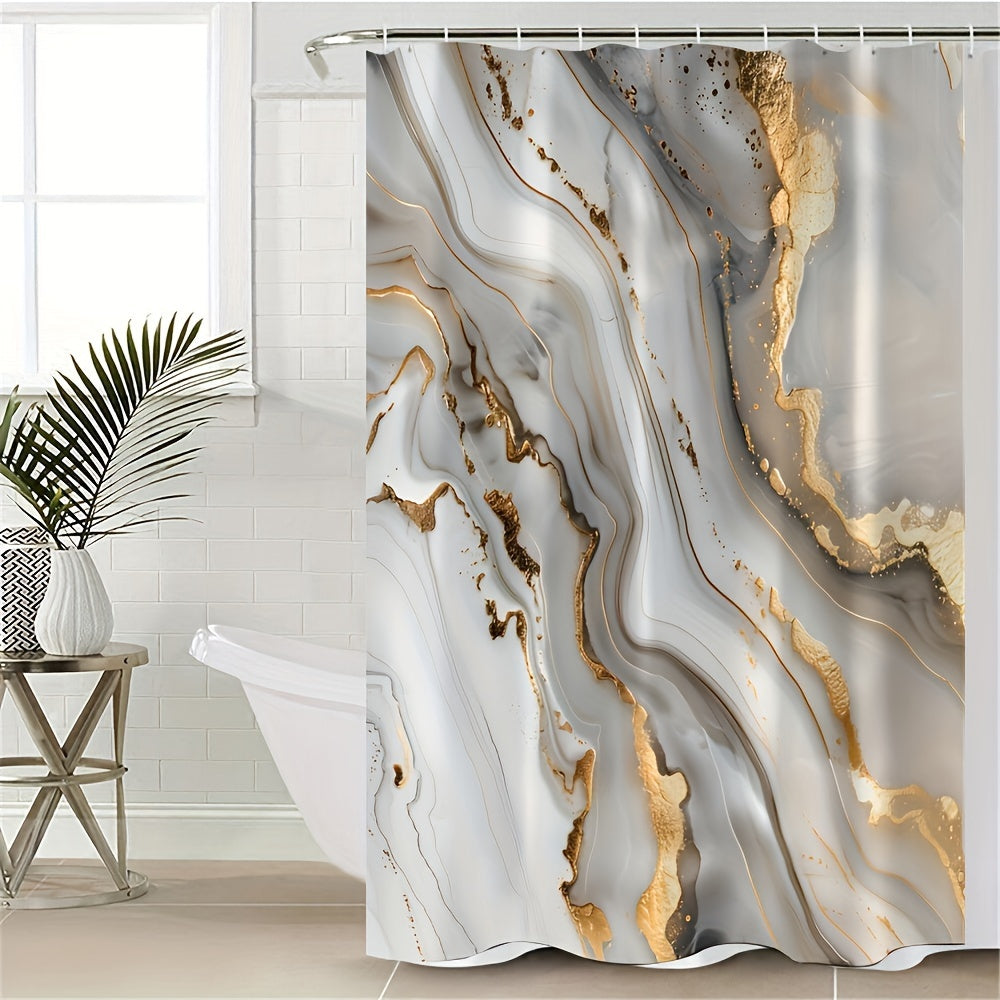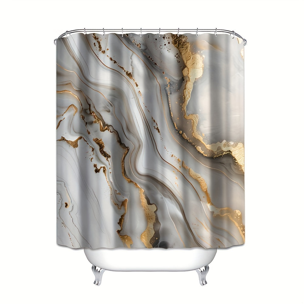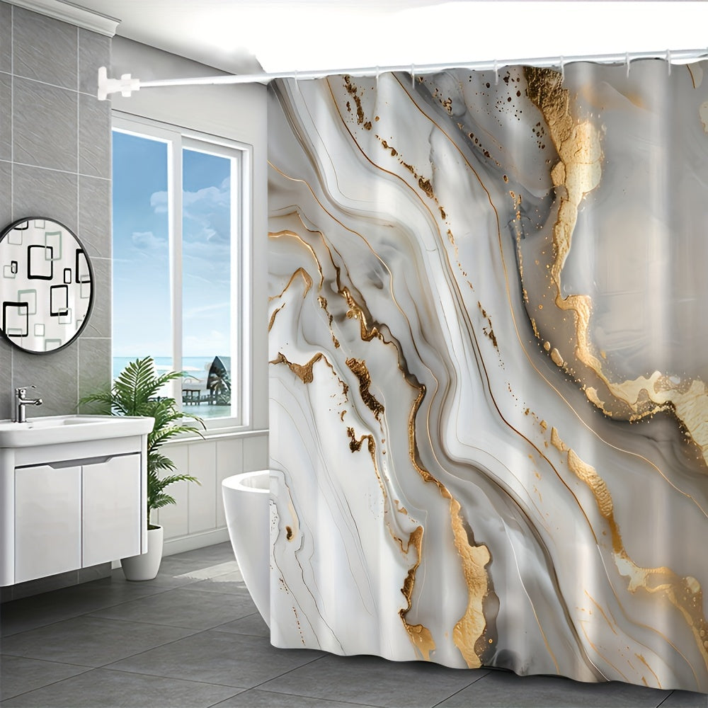 4-Piece Marble Patterned Waterproof Shower Curtain Set, Digital Printed Polyester, No Punching Partition, Bathroom Essentials