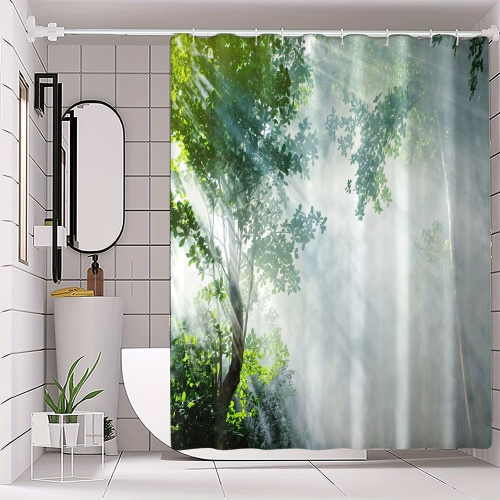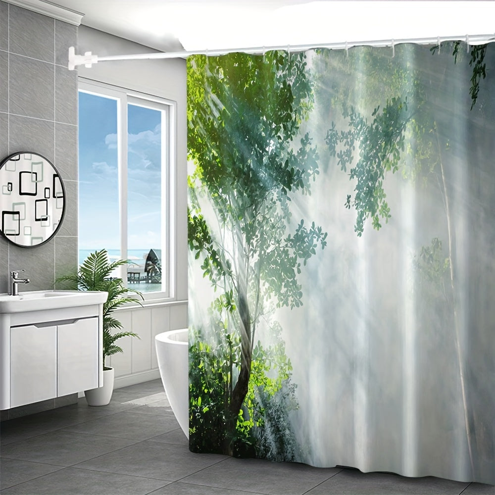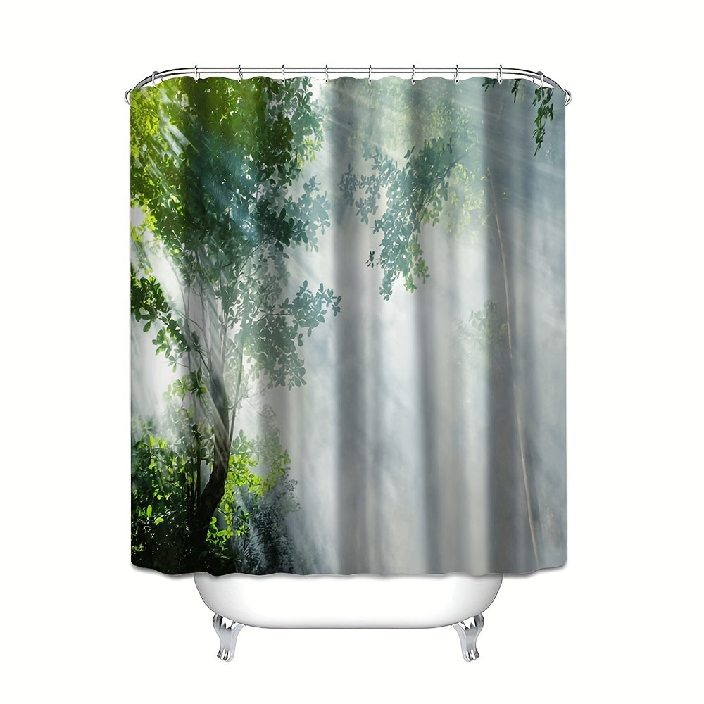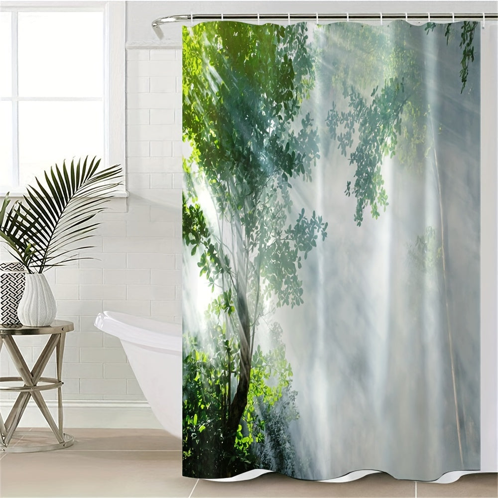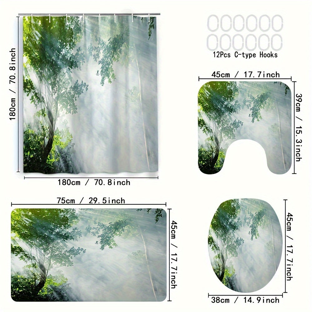 4pcs Green Plant Series Style Bathroom Curtains Digital 3D Printing Waterproof Bathroom Curtains Set Bathroom Curtains Non Perforated Bathroom Curtains