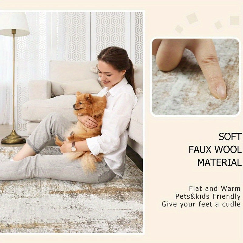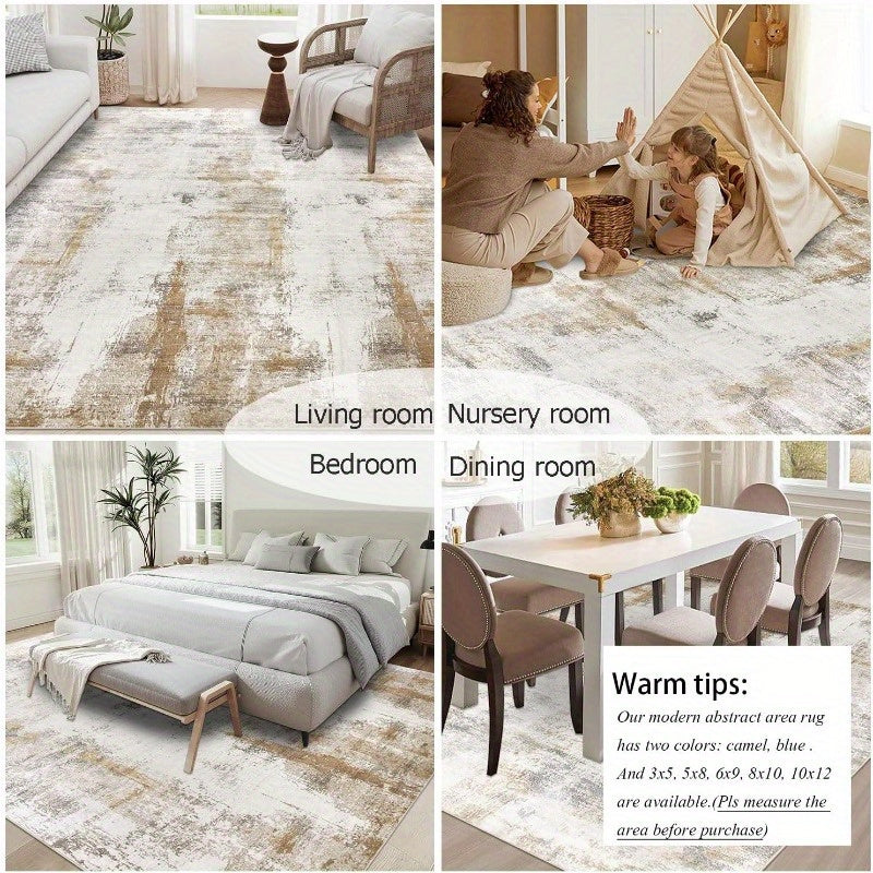 1PC famibay Machine Washable Area Rugs 8x10 Rugs for Living Room Low Pile Neutral Area Rug Large Dining Room Rugs for Under Table Rubber Back Abstract Carpet Rugs for Living Room Under Bed (Beige/ Camel