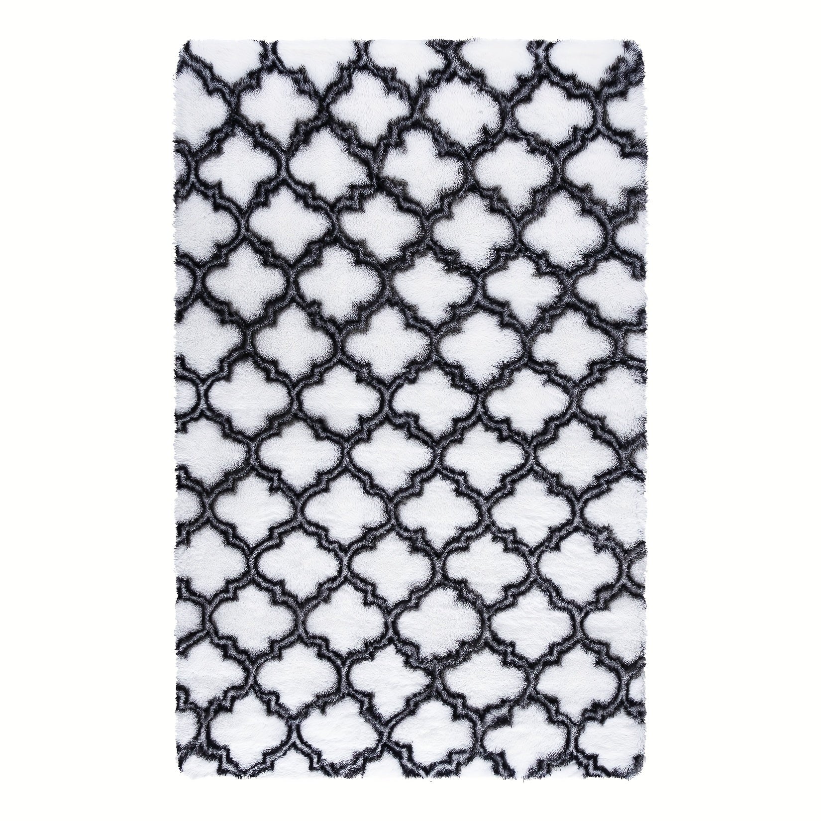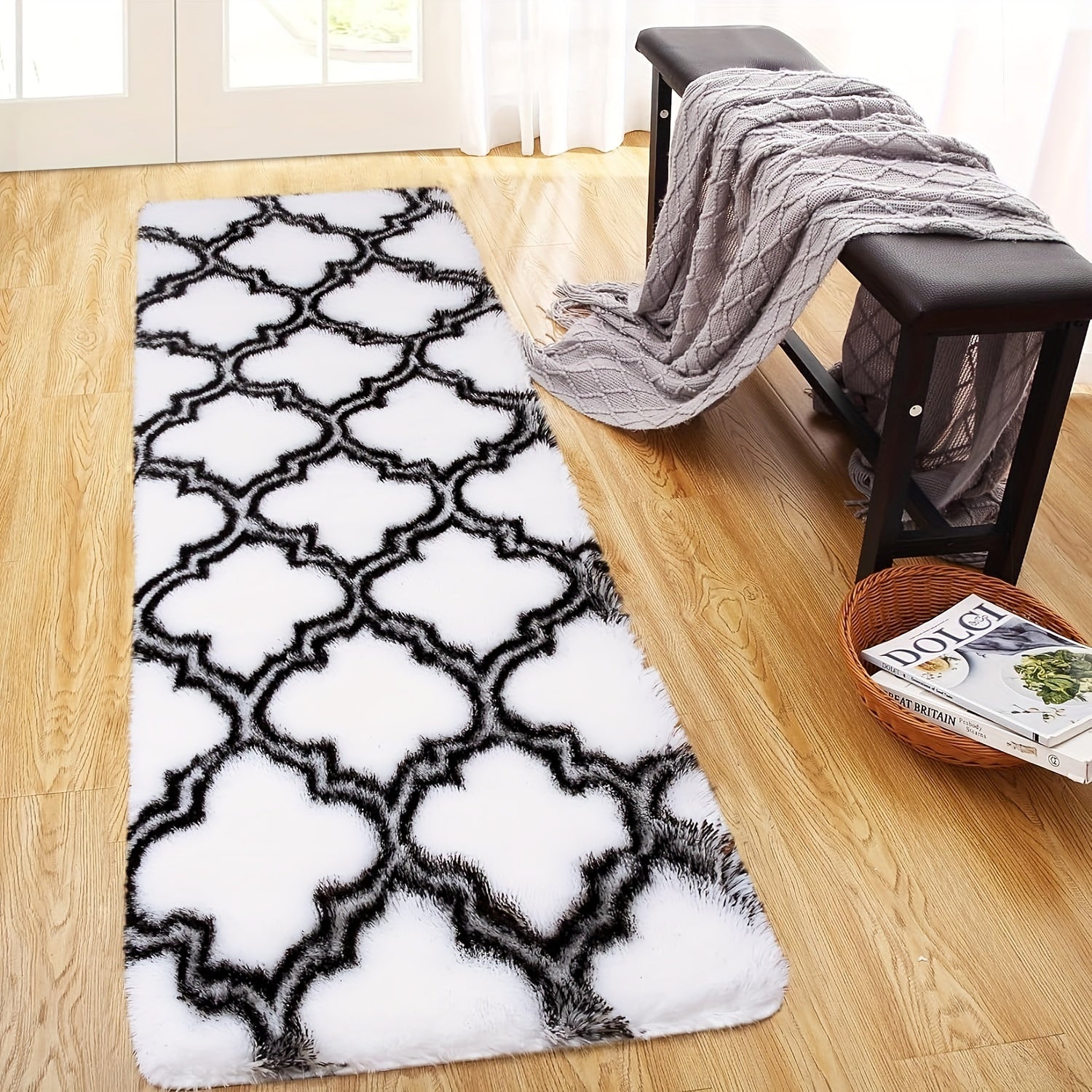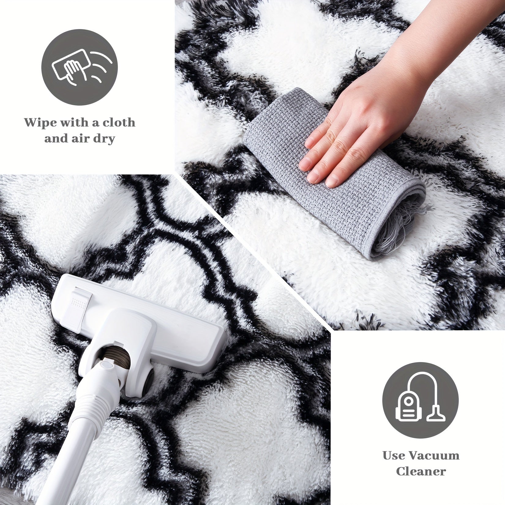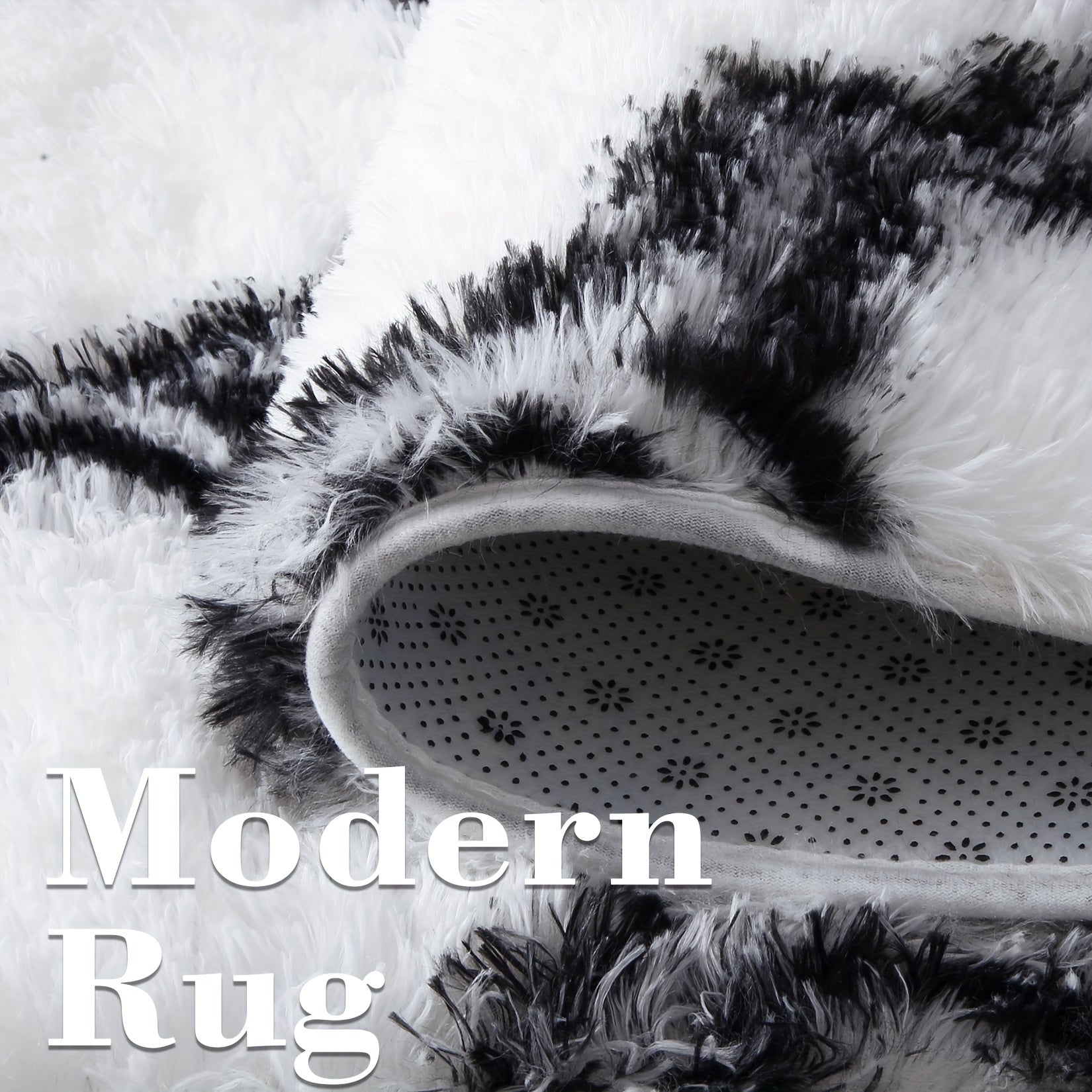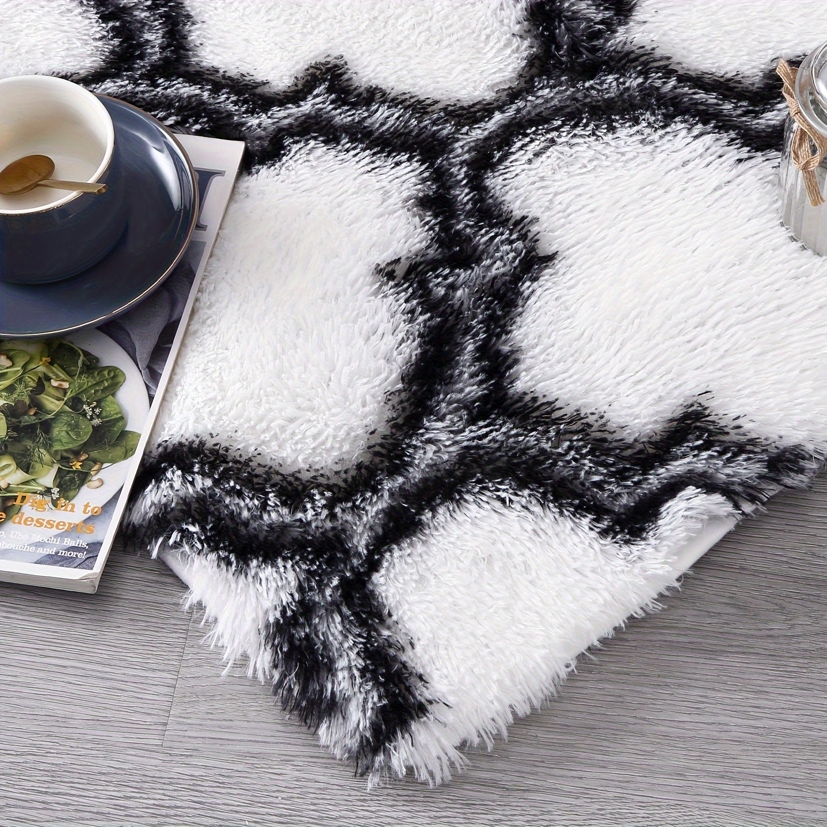 1pc Fluffy Area Rugs Large Fuzzy Moroccan Fluffy Rug Living Room Farmhouse Plush Abstract Rug Large Chic Non-Slip Stain Resistant Carpet for Bedroom Nursery Home Office, White/Black