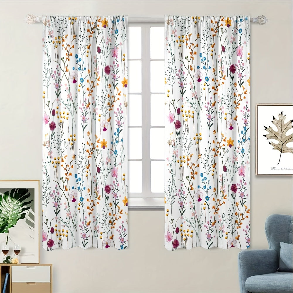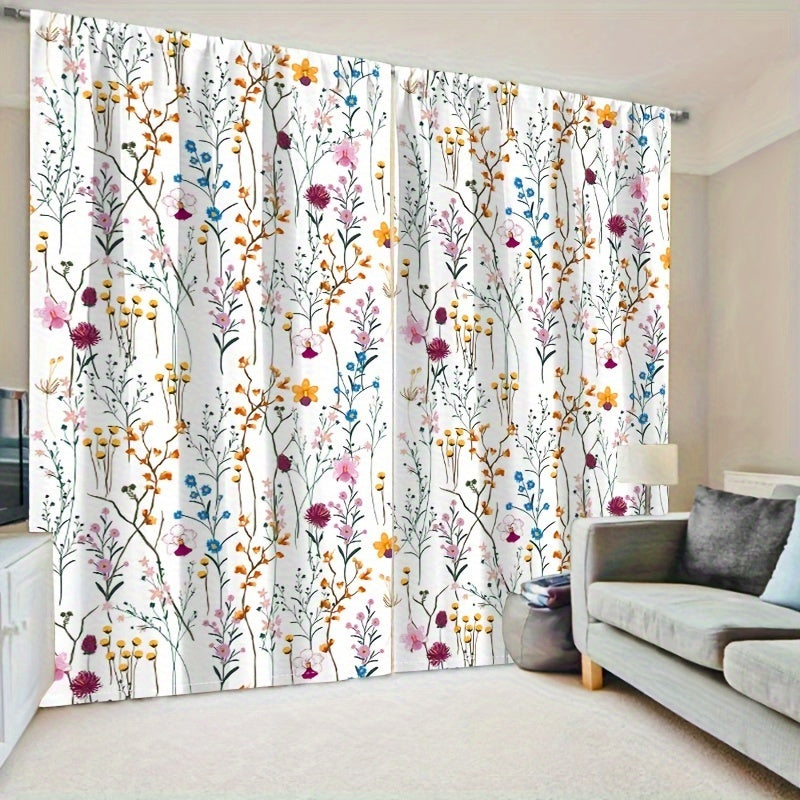 2pcs Set Modern Floral Print Sheer Curtains for Living Room & Bedroom - Rod Pocket Design, Fade-Resistant Polyester Drapes