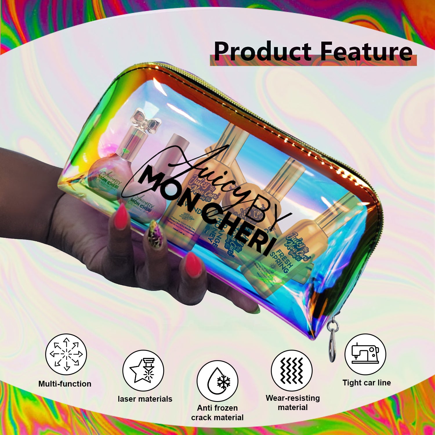 Glamorous Holographic Translucent Makeup Zipper Bag - Store Your Cosmetics in Style