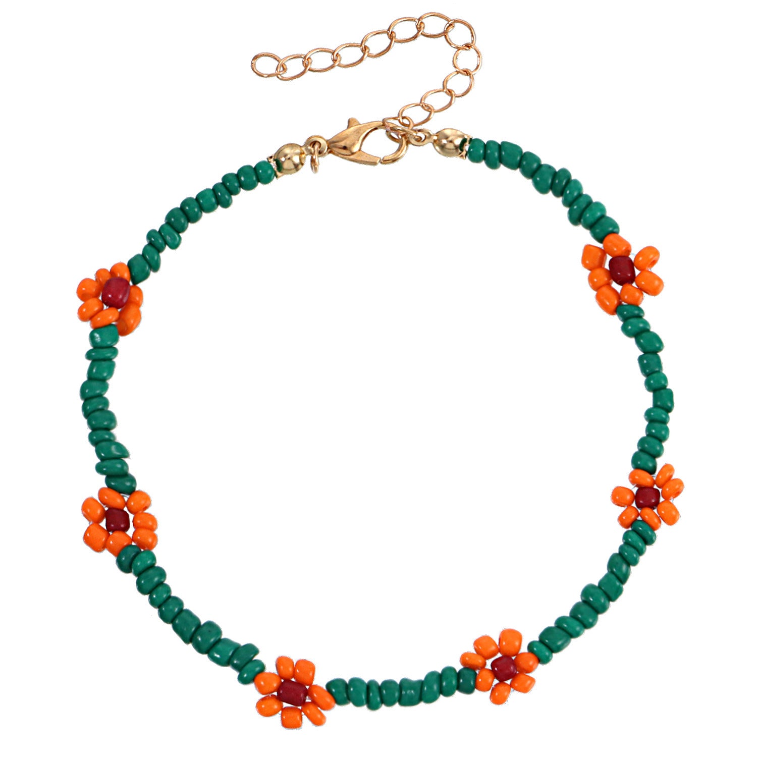 Color: 1, 2-shaped pearl, 3 soft pottery five-pointed star, 4, 5, 6, 7 green rice bead orange flower, 8# blue rice bead white Flowers
