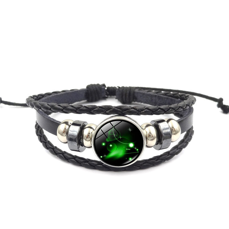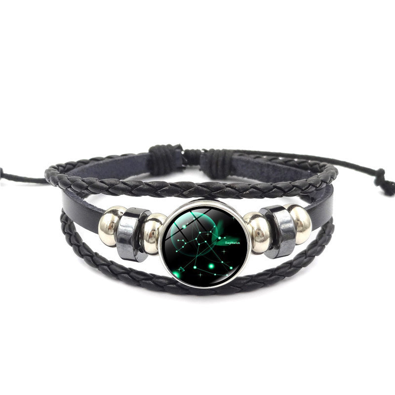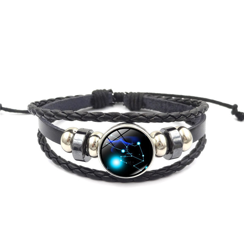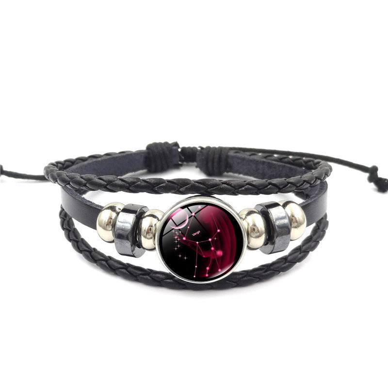 Women Fashion 12 Constellation Handmade Leather Bracelets Black Weave Multi Layer Punk Rock 12 Zodiac Charms Jewelry