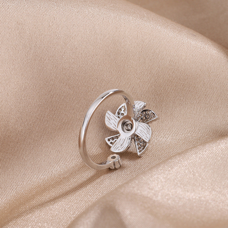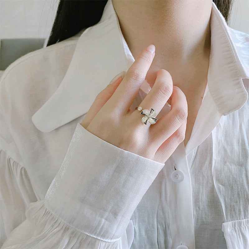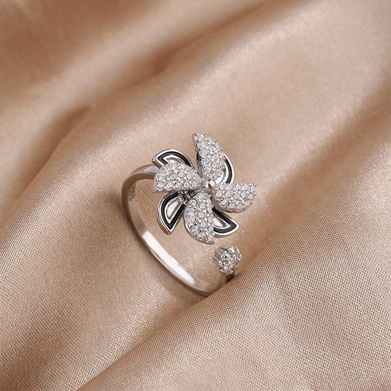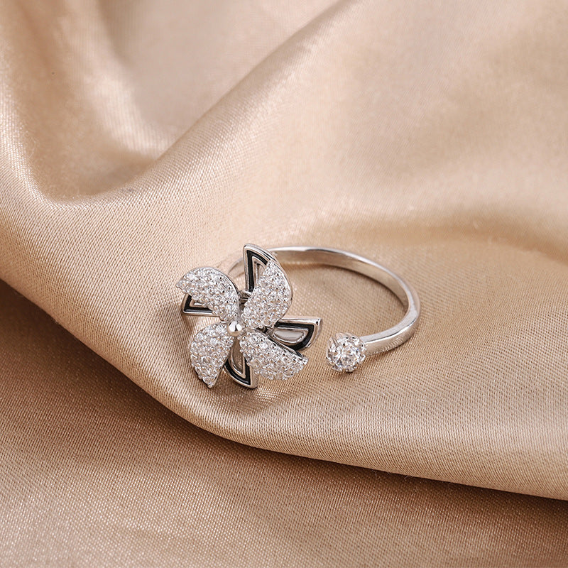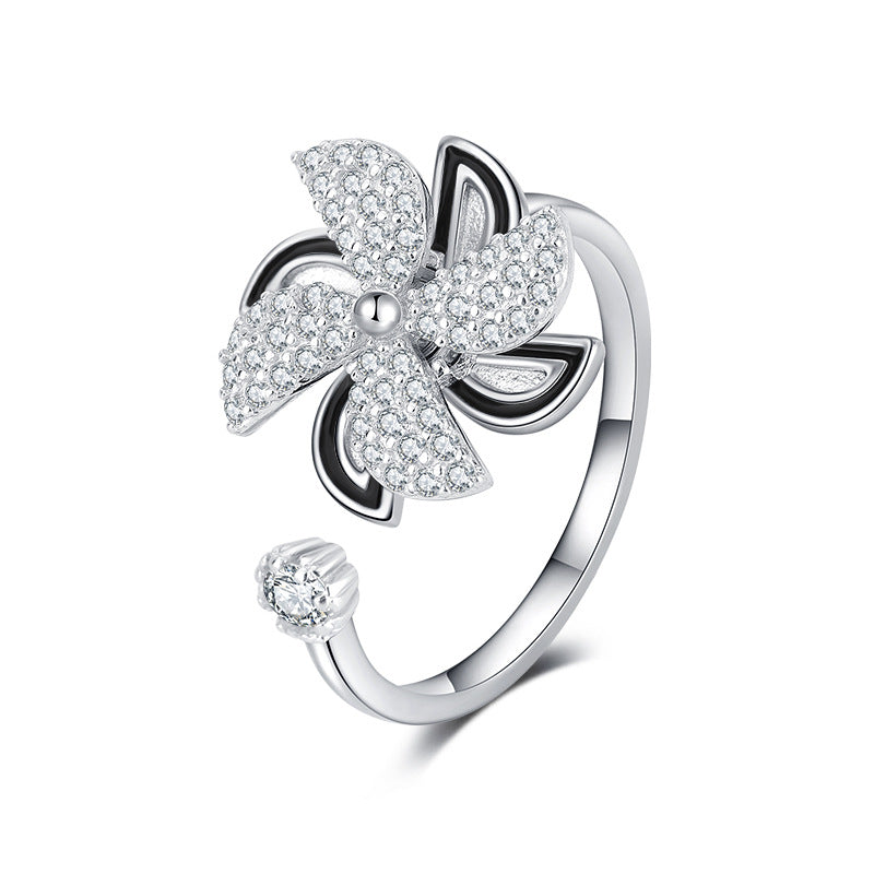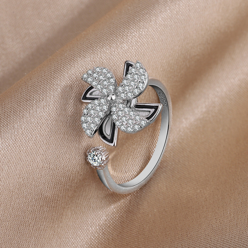 Korean Style East Street Diamond Little Windmill Ring S925 Sterling Silver Rotating Windmill Ring Artistic Style Cuff Bracelet