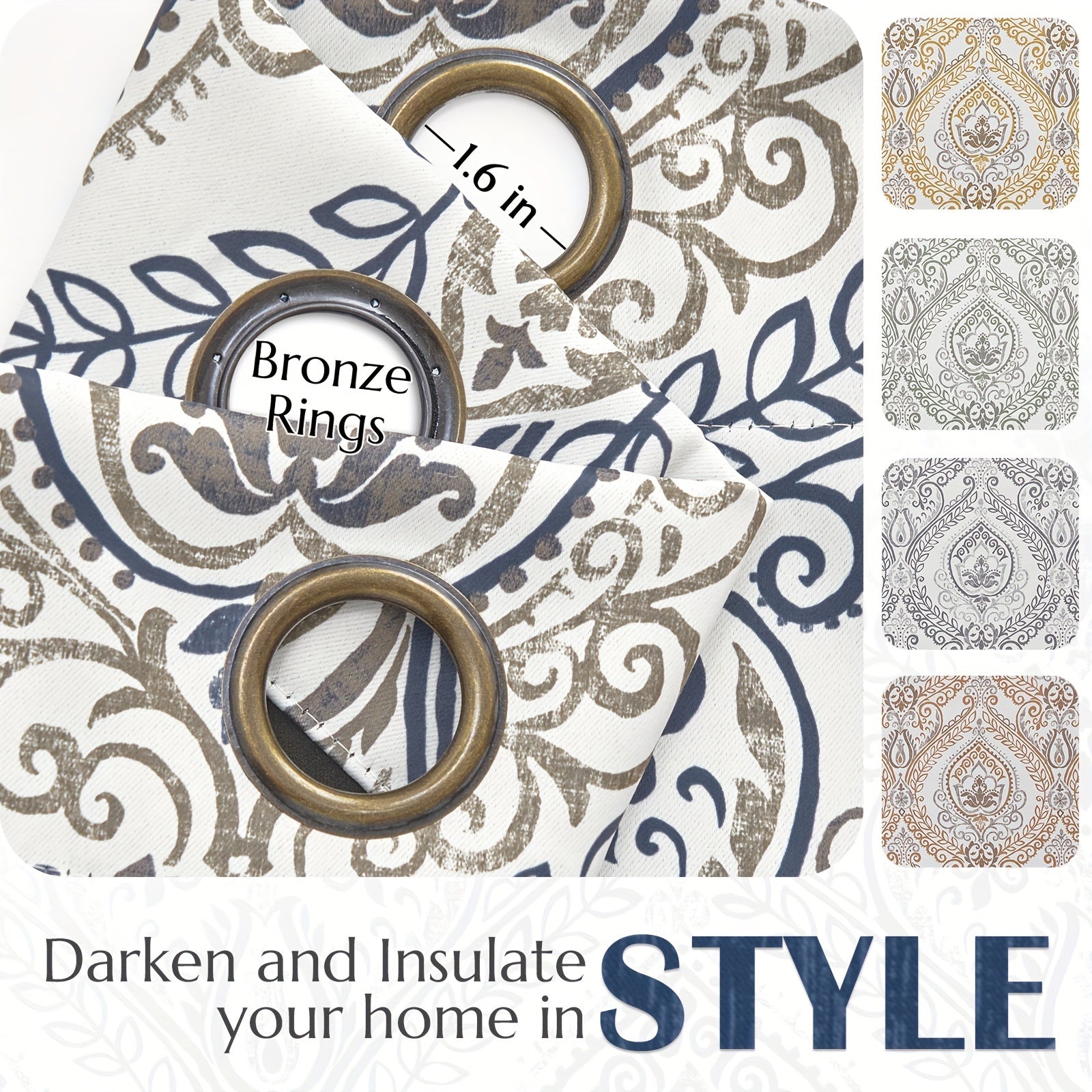 Retro Pattern Blackout Curtains, 100% Blackout, Thermal Insulated, Grommet Top, Bedroom & Living Room Window Treatments for Home Decor