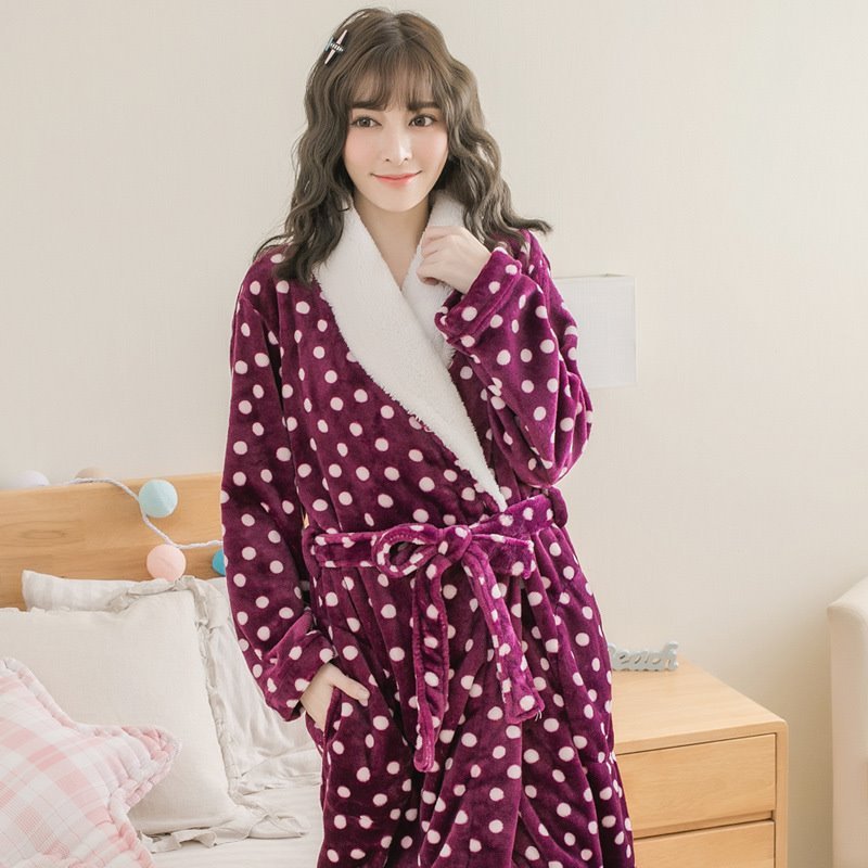Thickened Polka Dot Robe Coral Fleece Nightgown Men's Bathrobe Pajamas