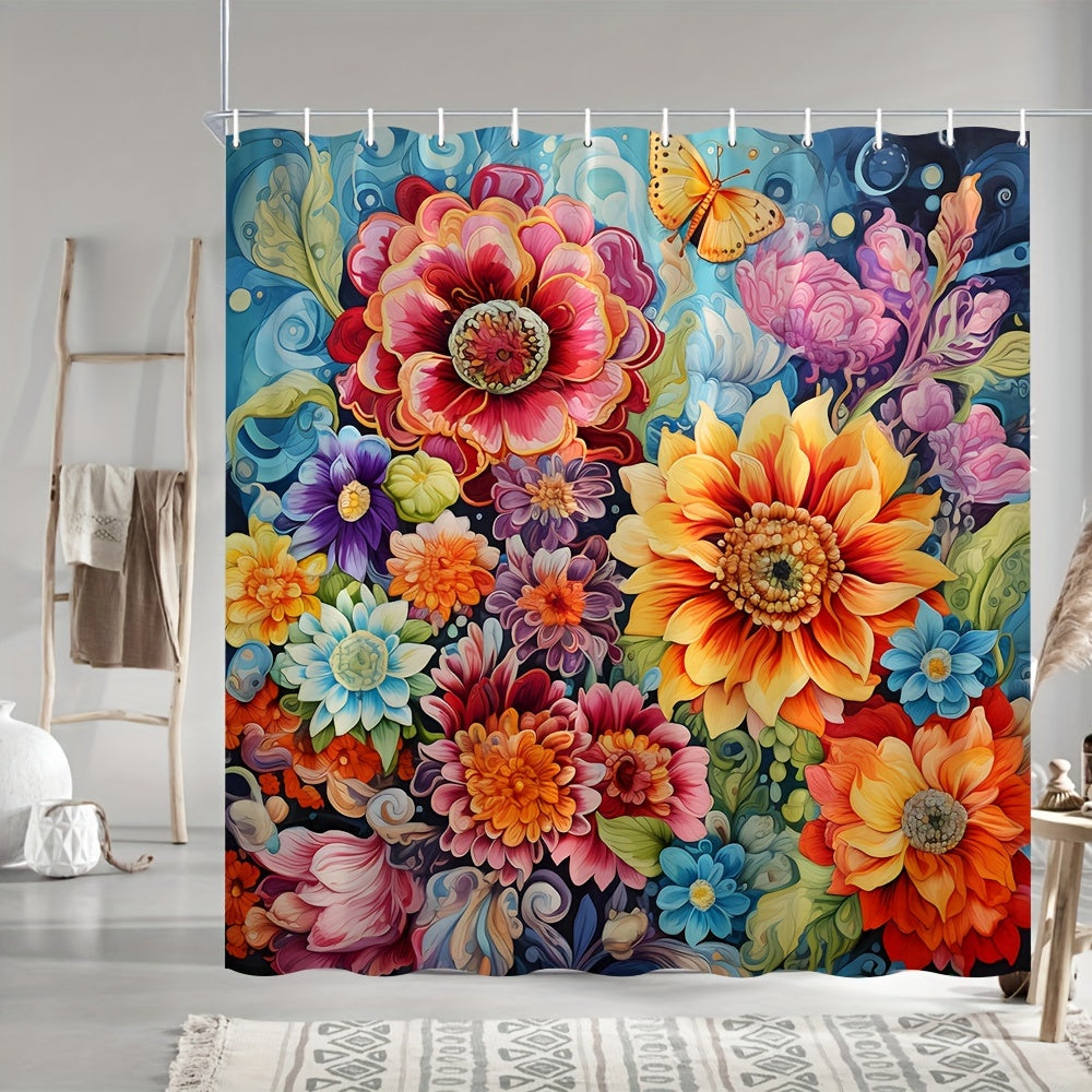 1pcs Flower Butterfly Shower Curtain Colorful Floral Plant Spring Botanical Bathroom Accessories Bath Batntub Partition Polyester Fabric Curtains With Hooks