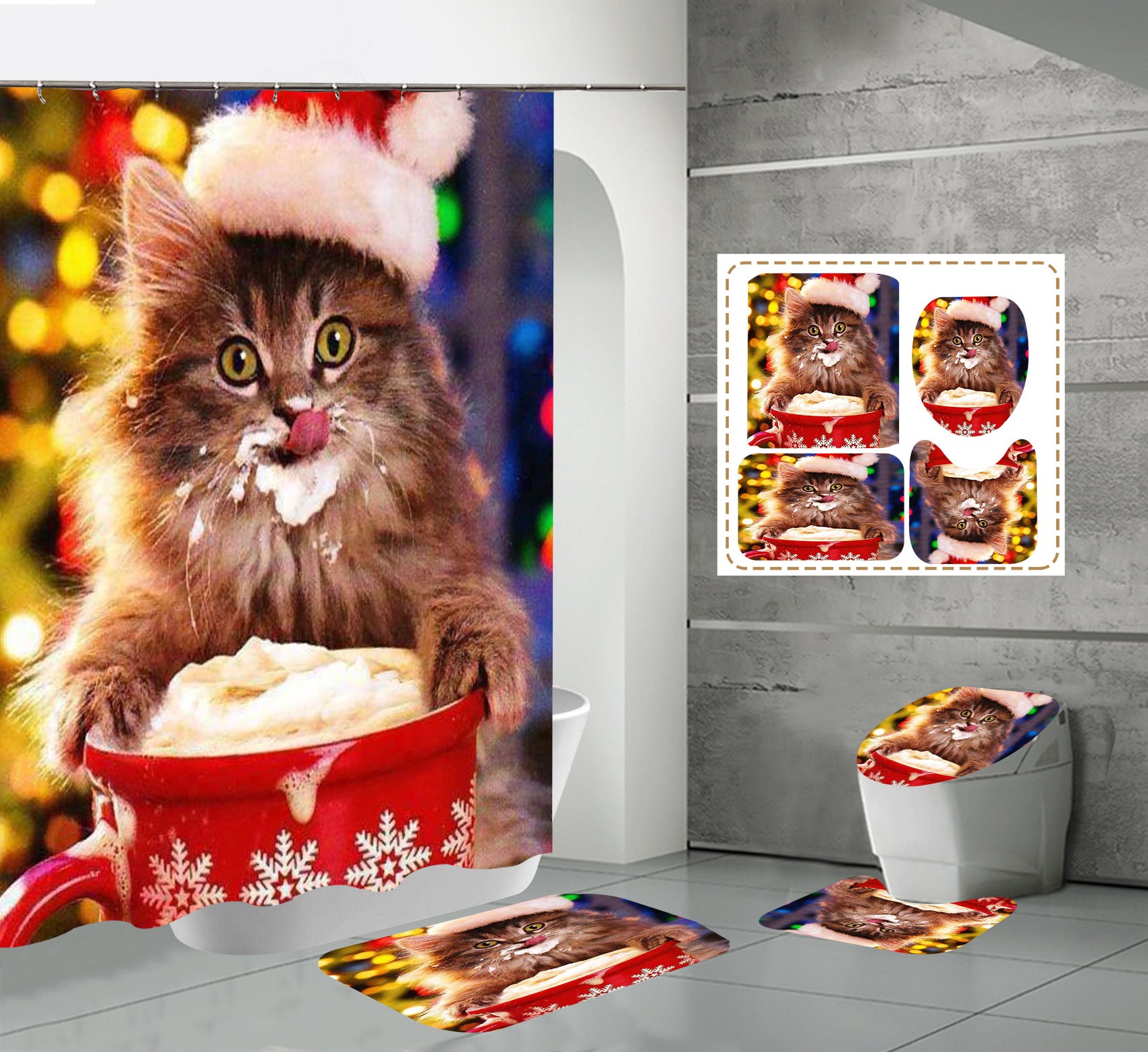3D Digital Printed Waterproof Shower Curtain Floor Mat Toilet Cover