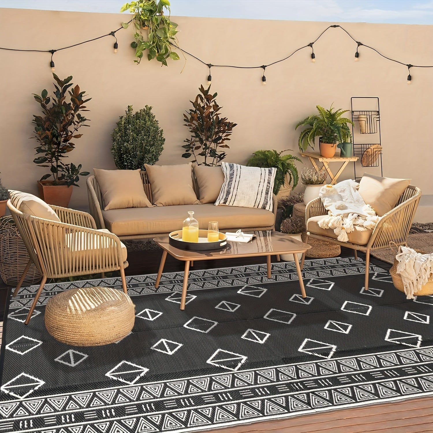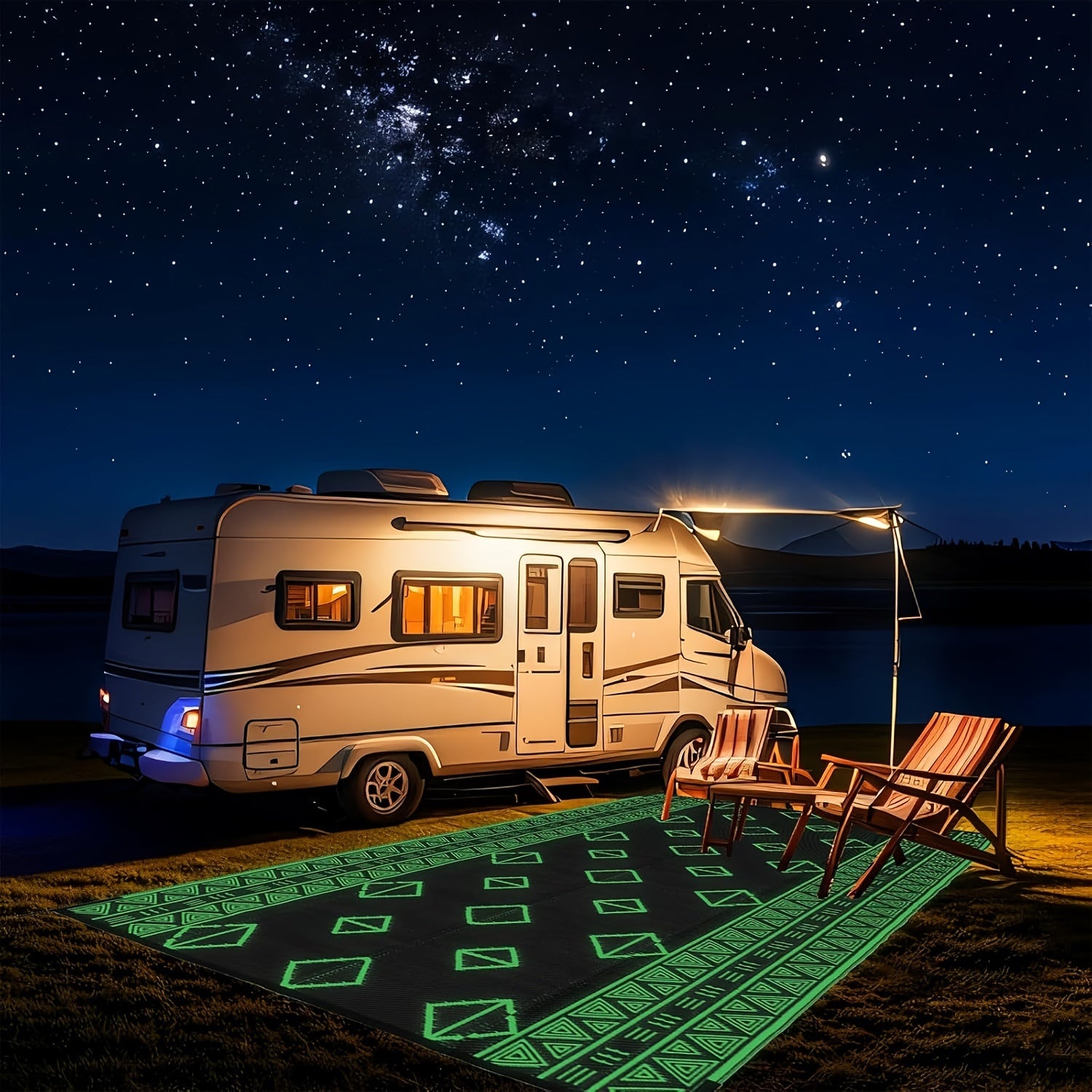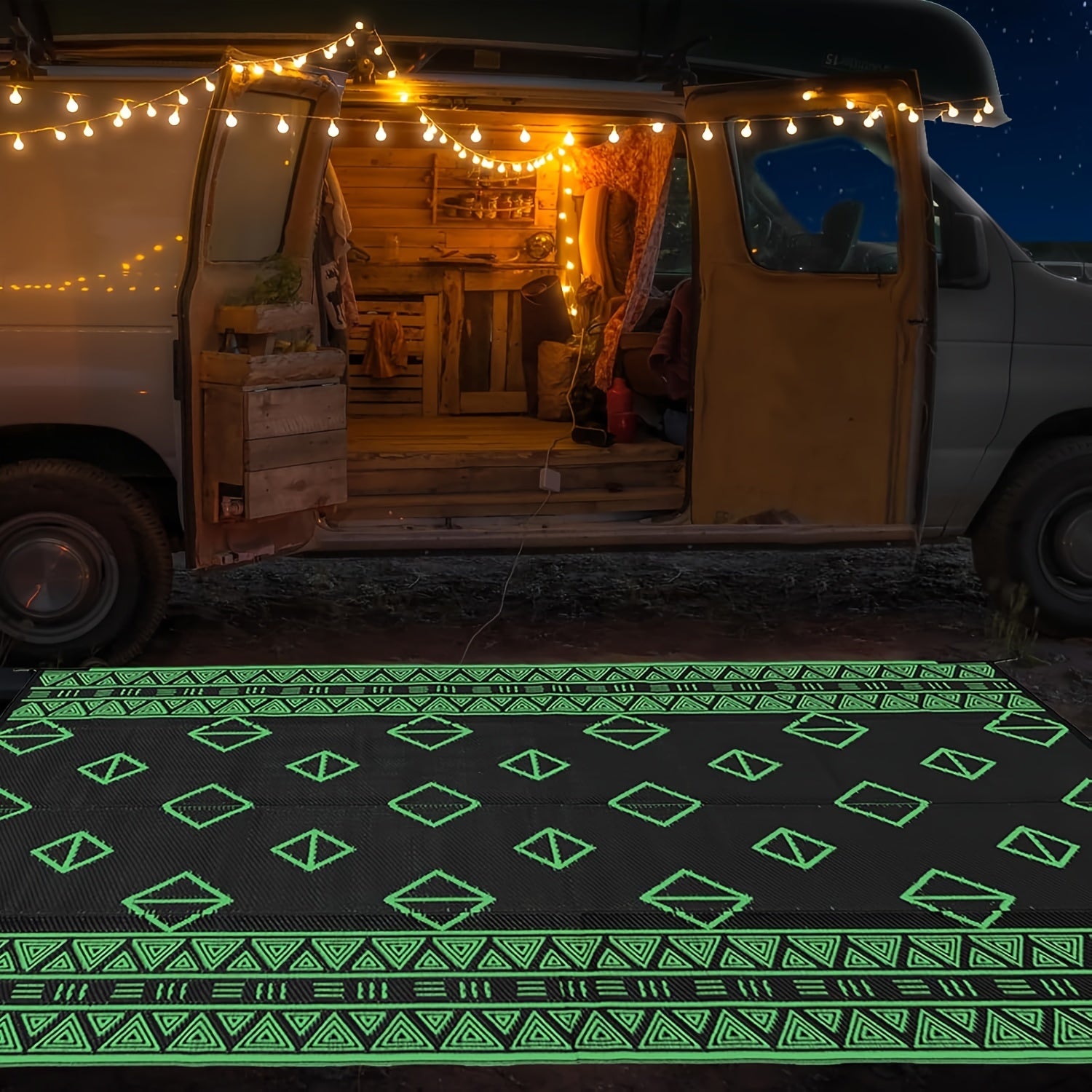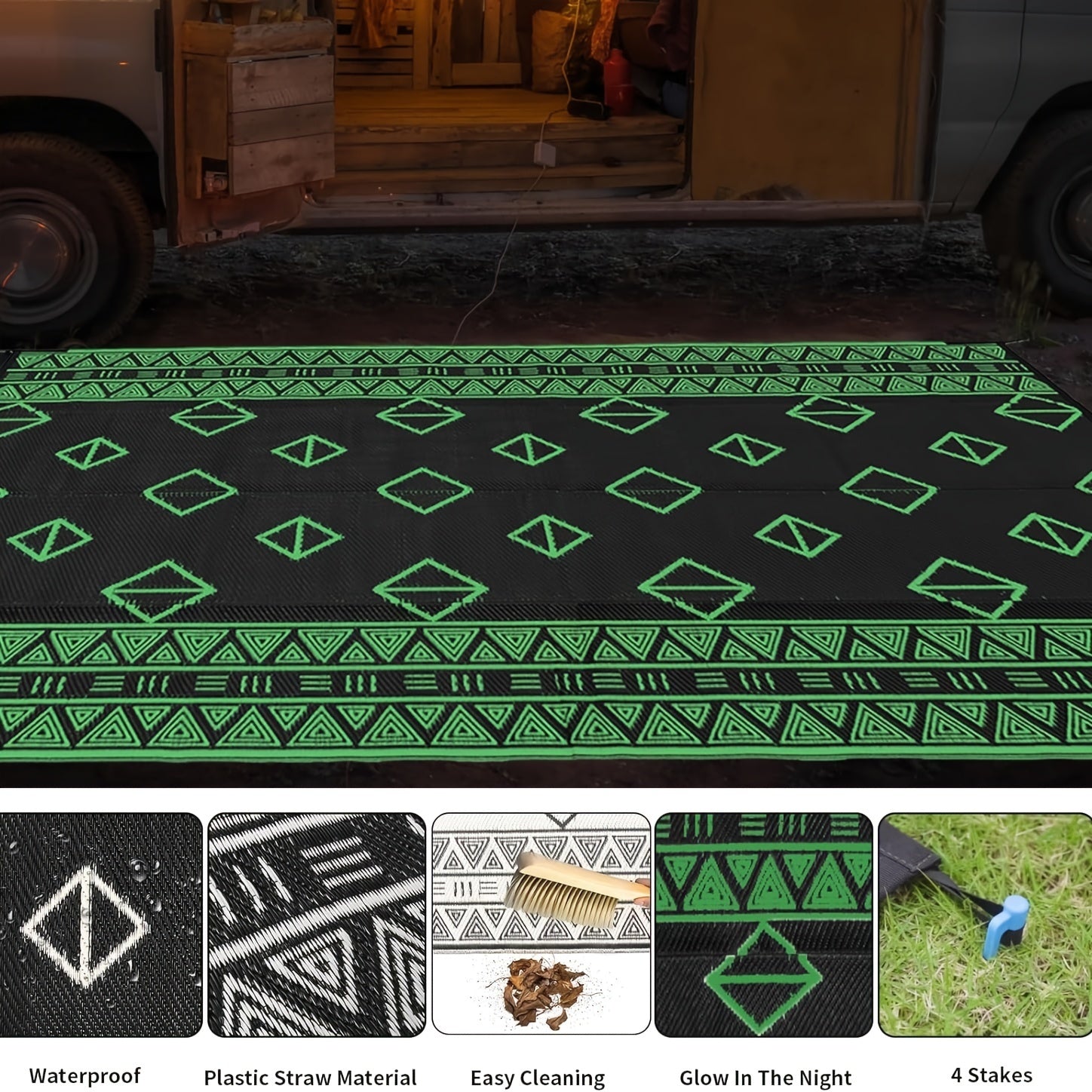 5x8 Ft Reversible Luminous Outdoor Rug - Waterproof, Portable, Glow-in-the-Dark, Fluorescent, Plastic Straw, Reversible, Indoor, Balcony, Picnic, Patio, RV, Camping, Clearance Floor Mats
