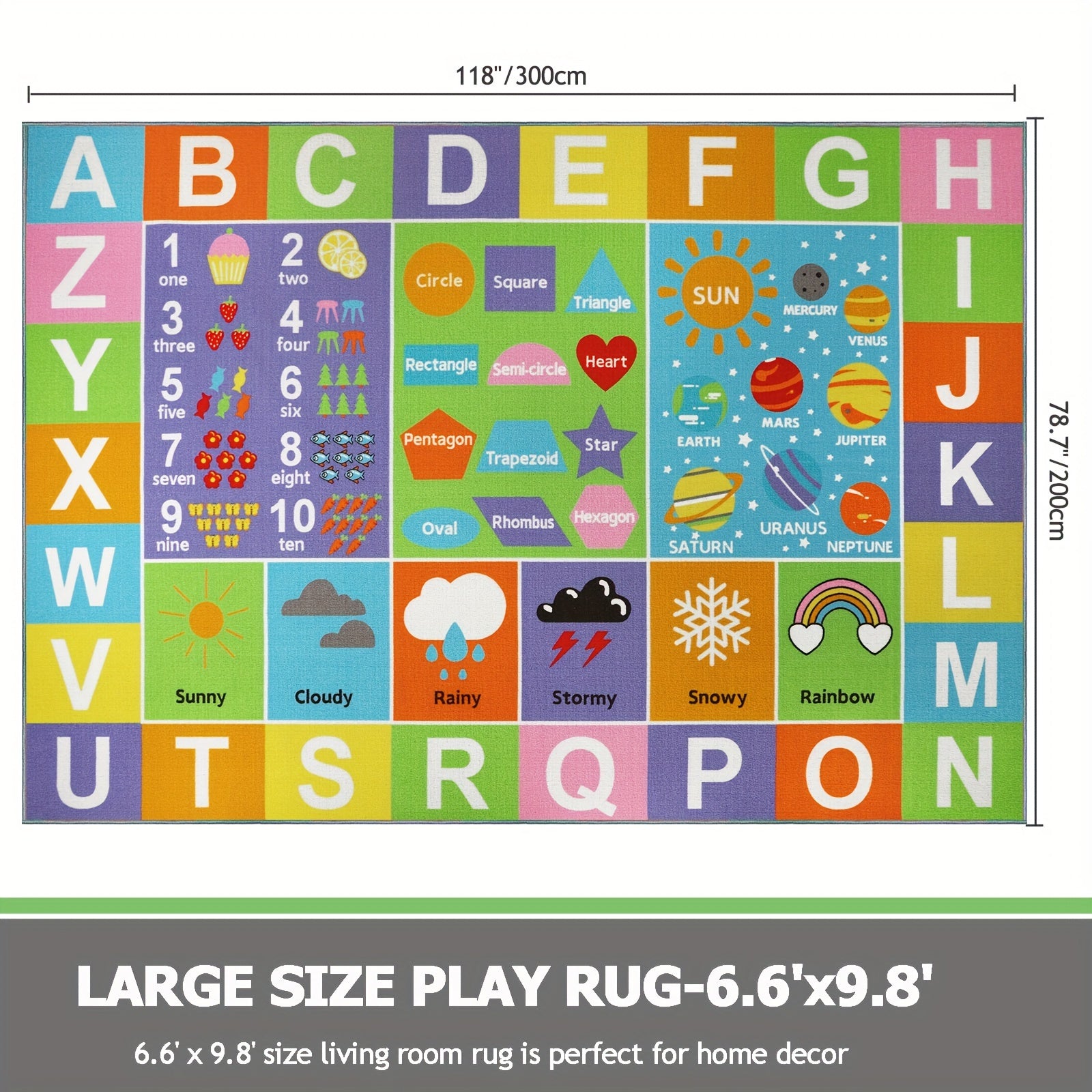 6.6' x 9.8' Large Carpet Playmat Rug ABC Alphabet Numbers Shapes Weather Planets Area Rug Non Slip Carpet Rug for Play Room Bedroom Living Room