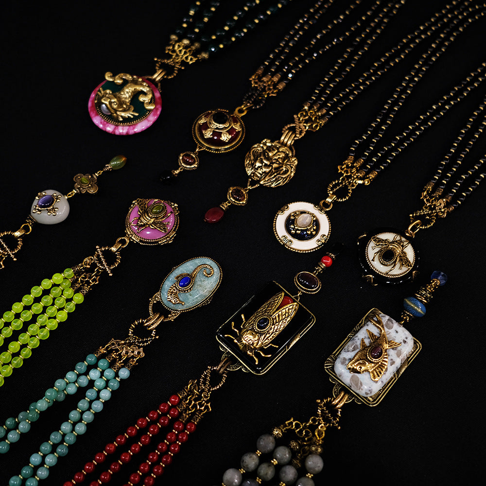 Animal Design Bee Necklace Agate Bead Copper Necklace