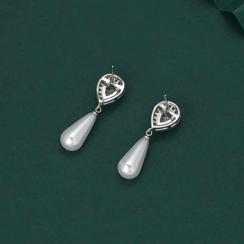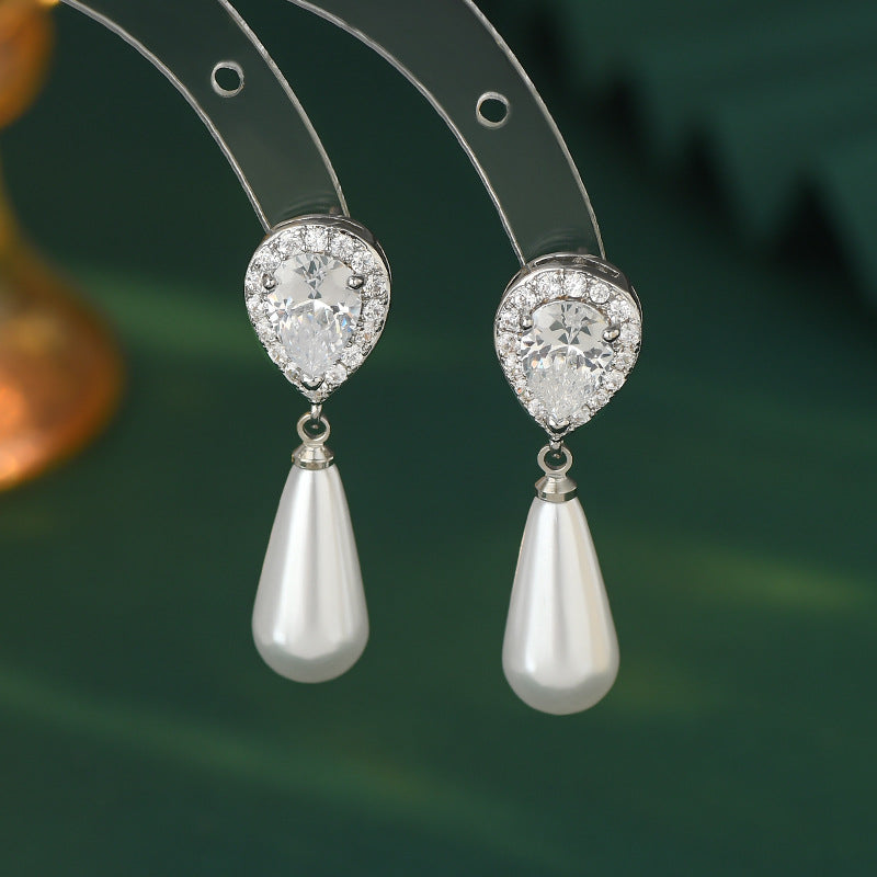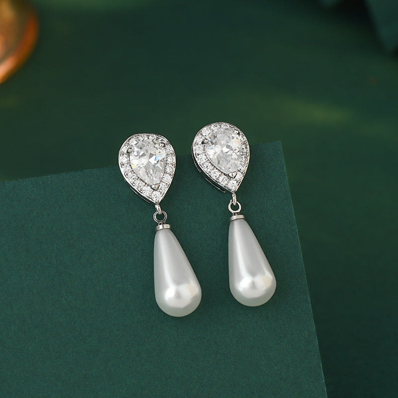 Diamond Water Drop Pearl Eardrops Stud Earrings