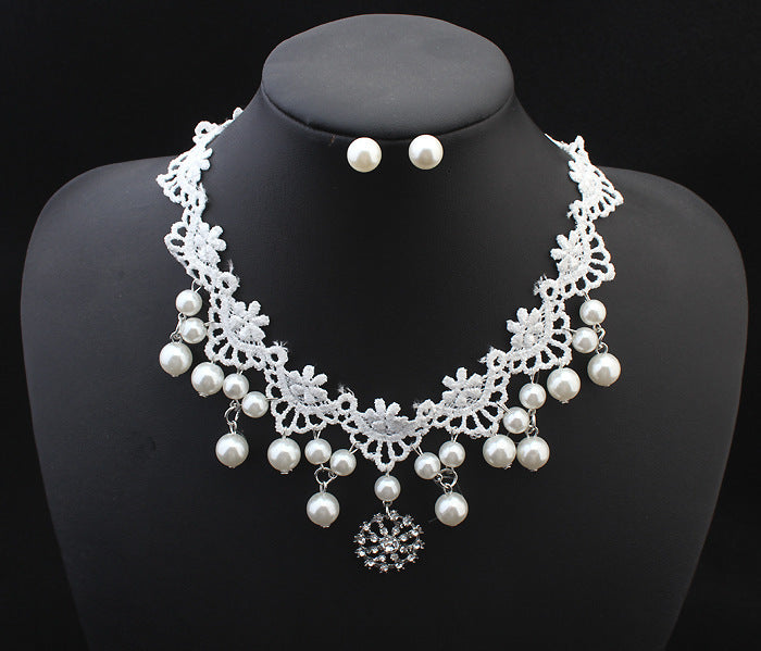 European fashion elegant jewelry bride wedding accessories necklace pearl necklace set of high-end super cost-effective package