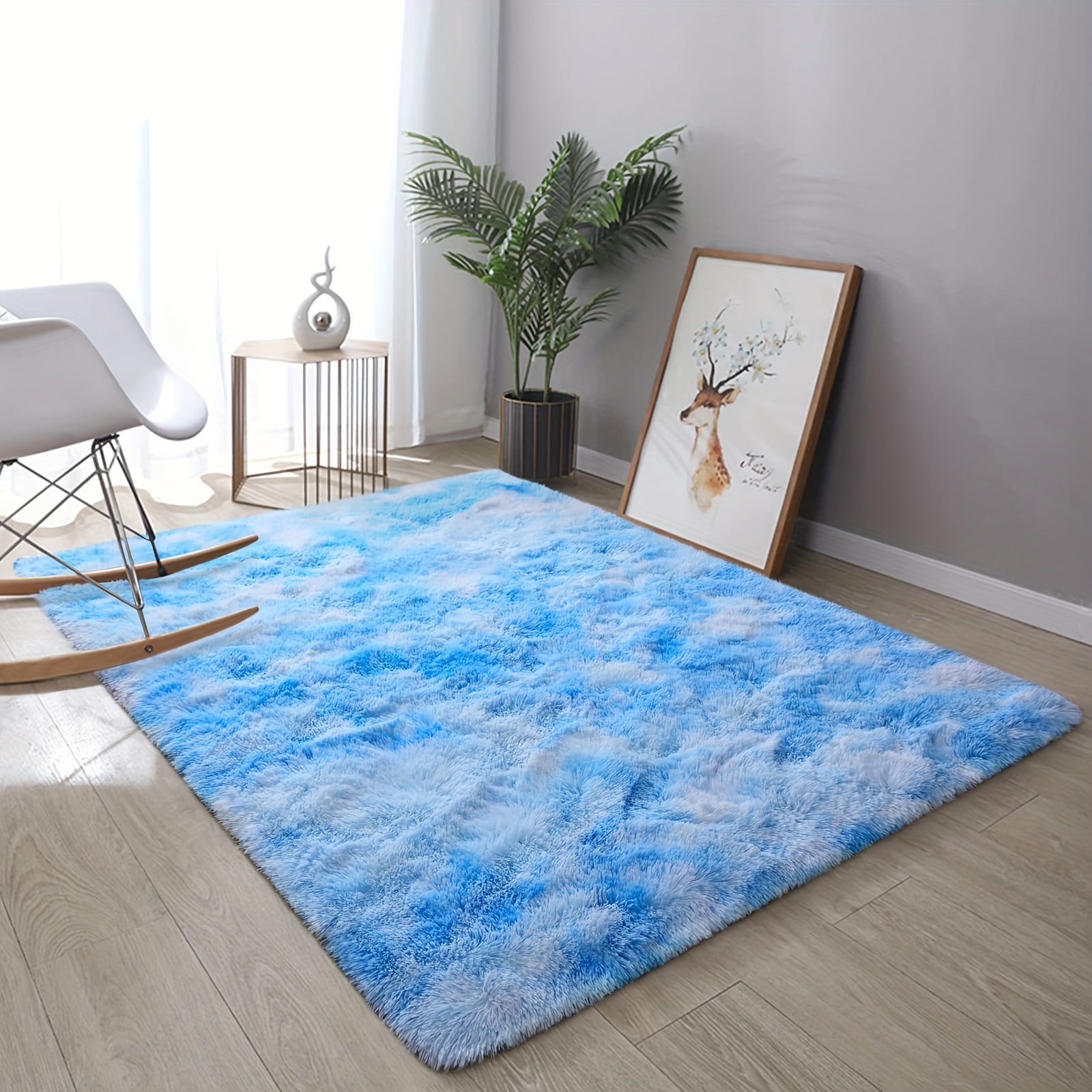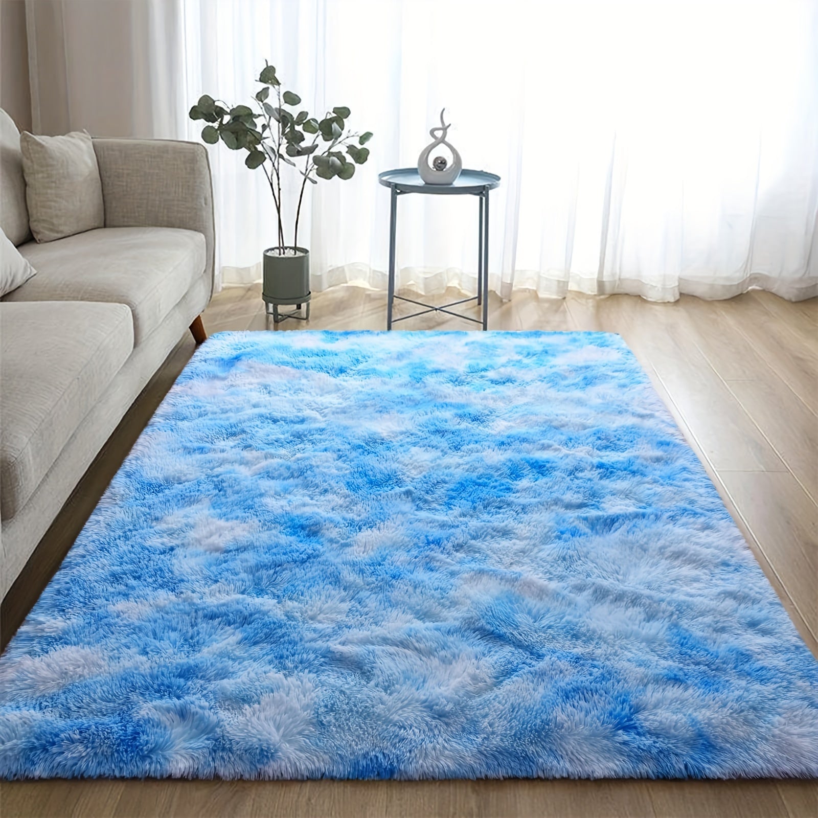 Extra Large Fluffy Rug, Modern Indoor Rug For Living Room Bedroom, Plush High Pile Tie Dye Rug For Playroom Classroom Home Decor, Blue