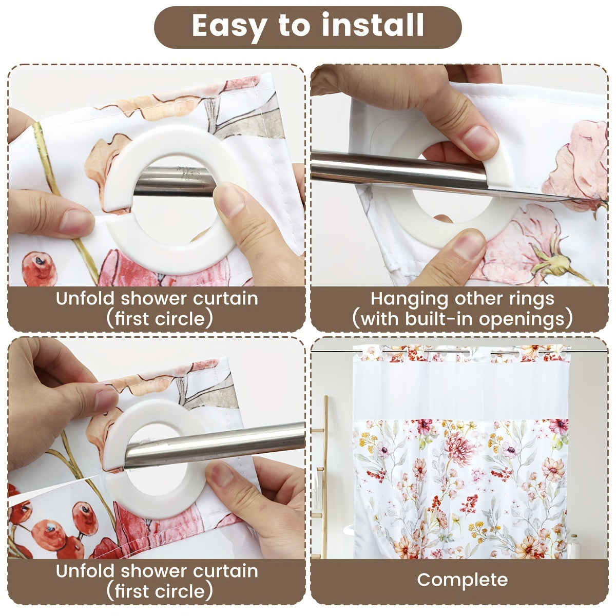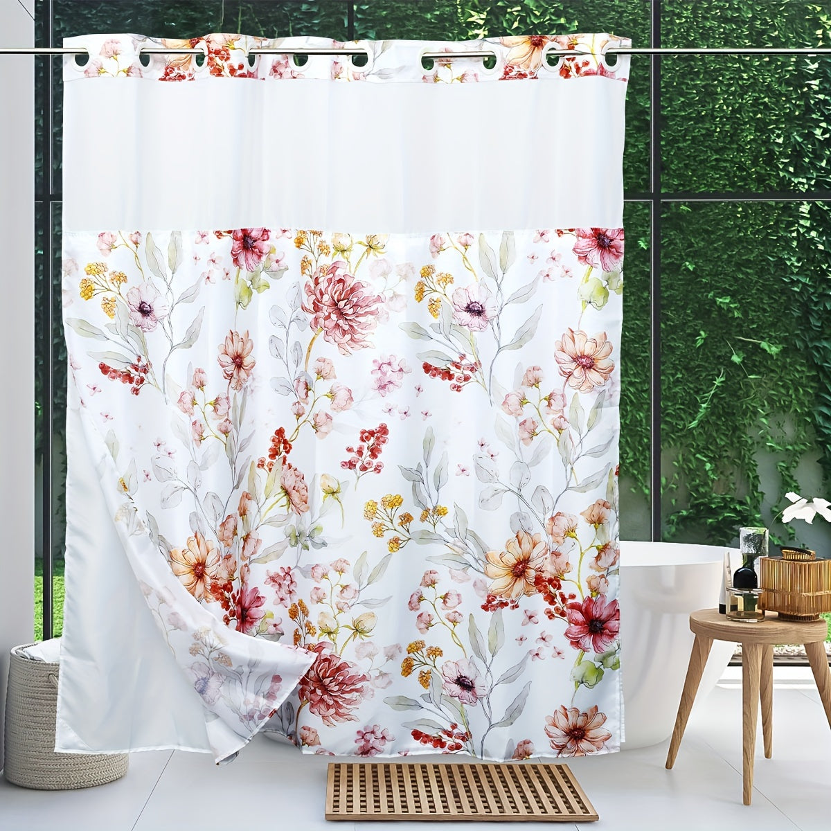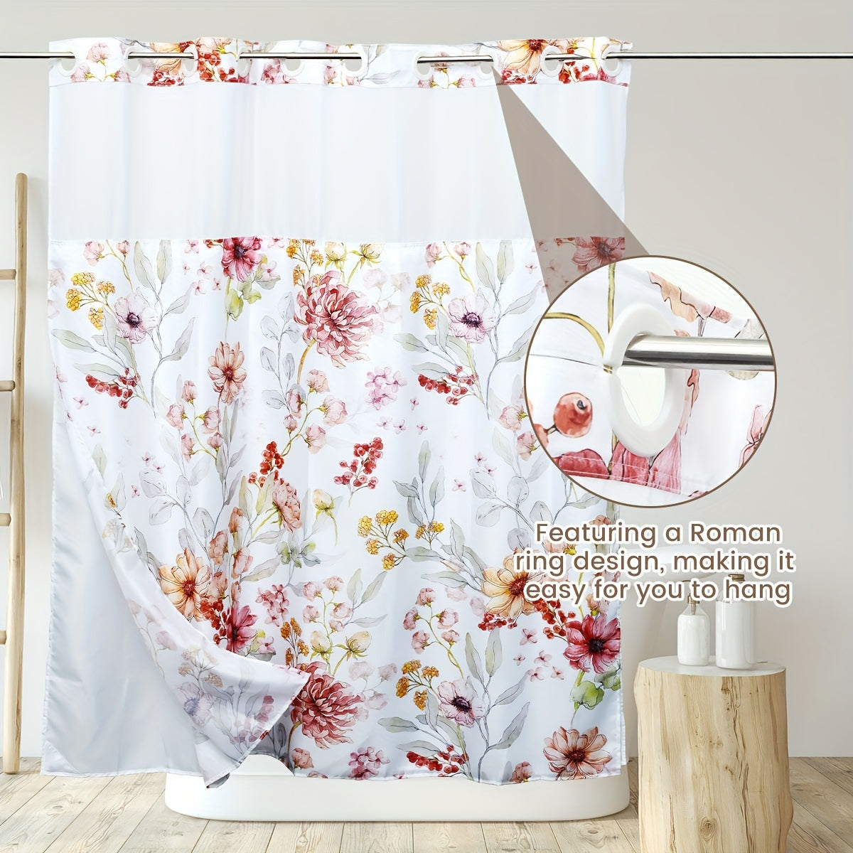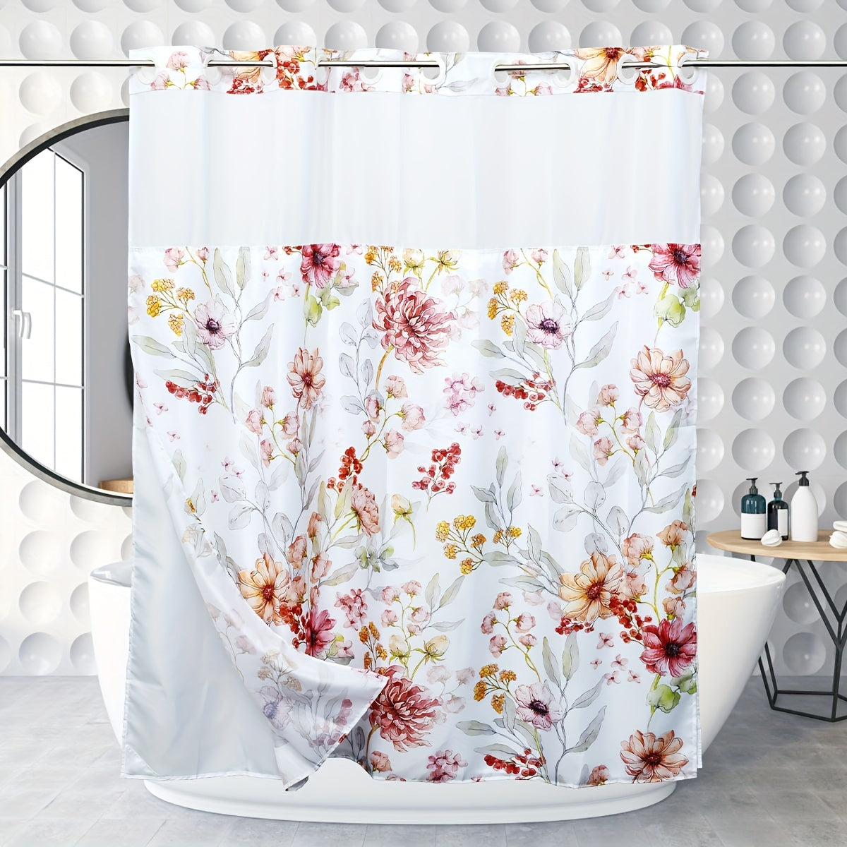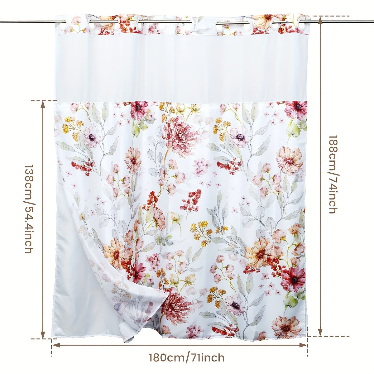 Hook Free Shower Curtain Waterproof Bathroom Curtains With Snap-in Liner Decorative Floral Bath Curtains Washable Shower Curtain For Home Dormitory Hotel Gym 71x 74 Inch