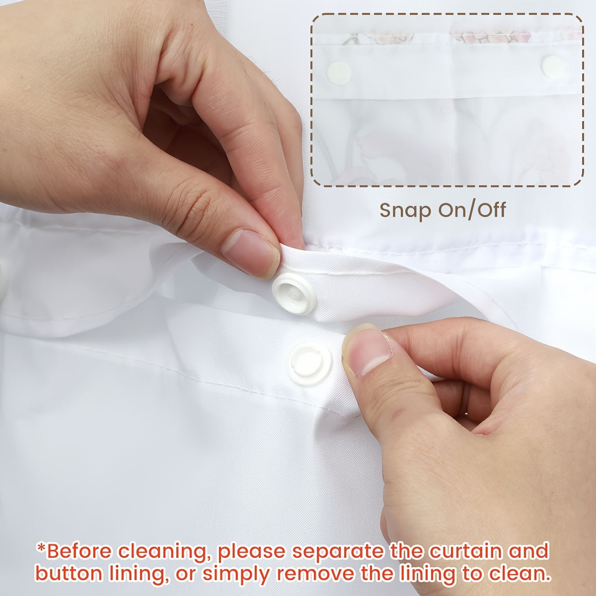 [Quality Polyester & Washable] The Shower Curtain Is Made Of High Quality Polyester, Waterproof, Machine Washable Or Hand Washable To Keep Clean (Note: Please Separate The Curtain From The Snap Liner Before Washing, Or Just Remove The Liner To Wash)