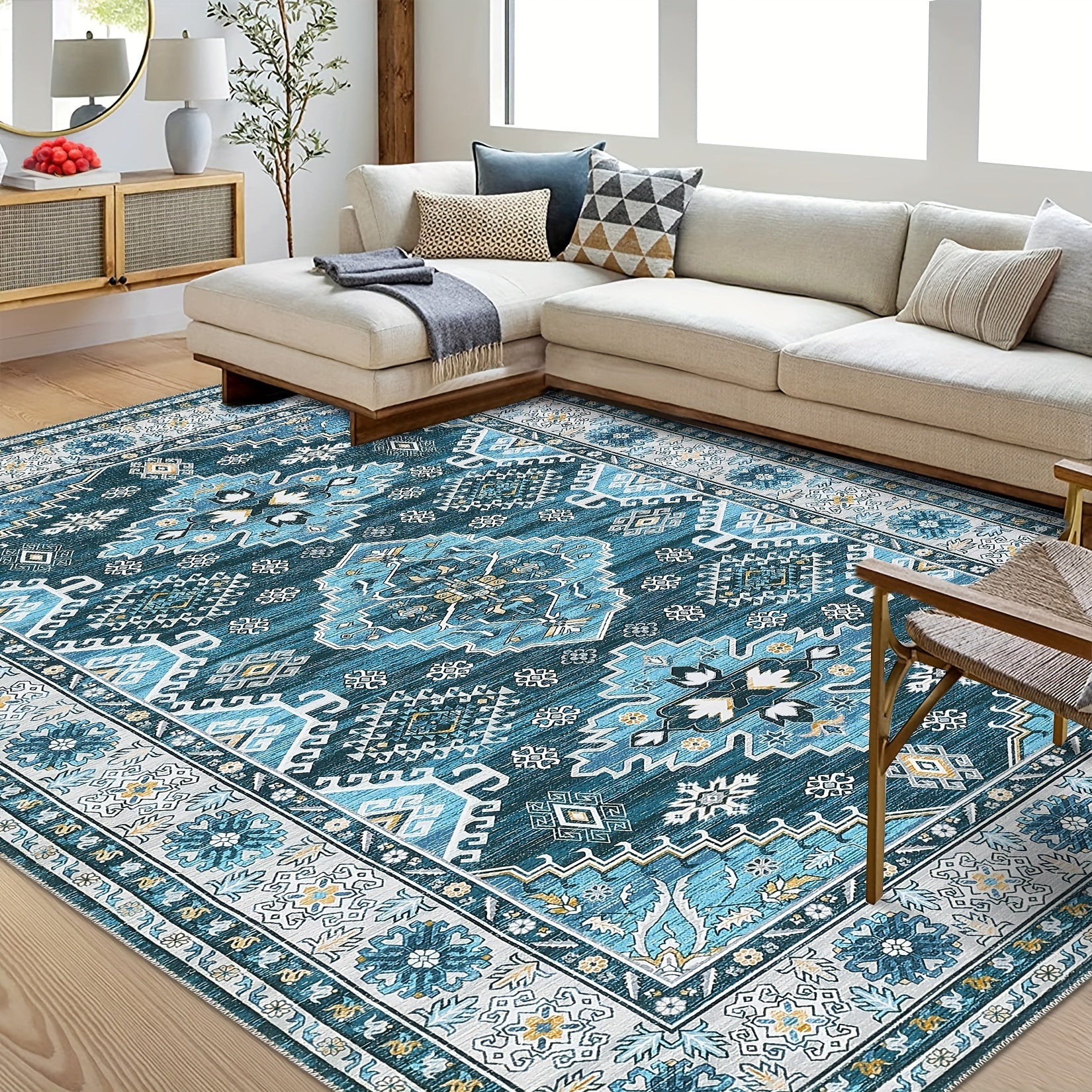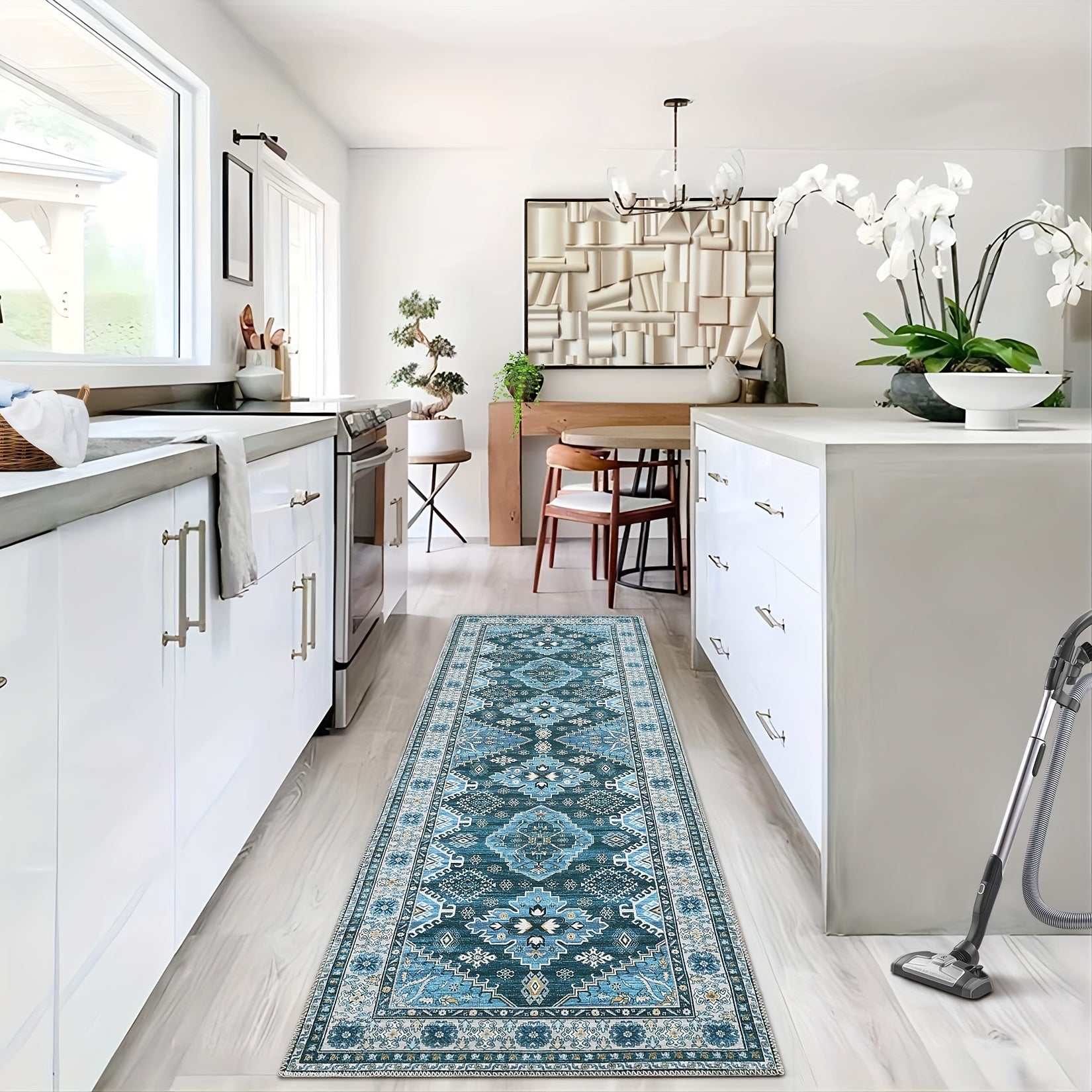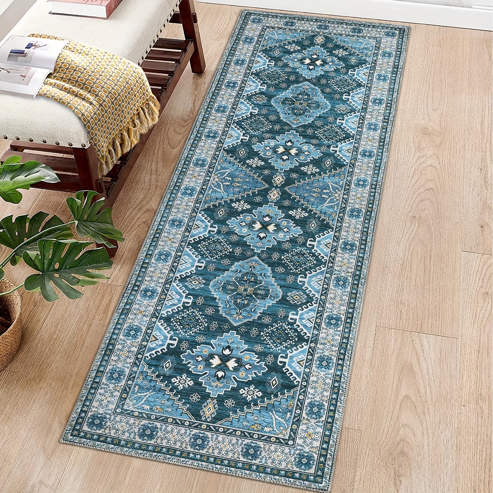 Machine Washable Kitchen Boho Floral Print Area Rug Soft Low Pile Stain Resistant Carpet Easy To Clean Bordered Thin Area Rug For Living Room Bedroom Bedside Dining Room Front Entrance Bathroom