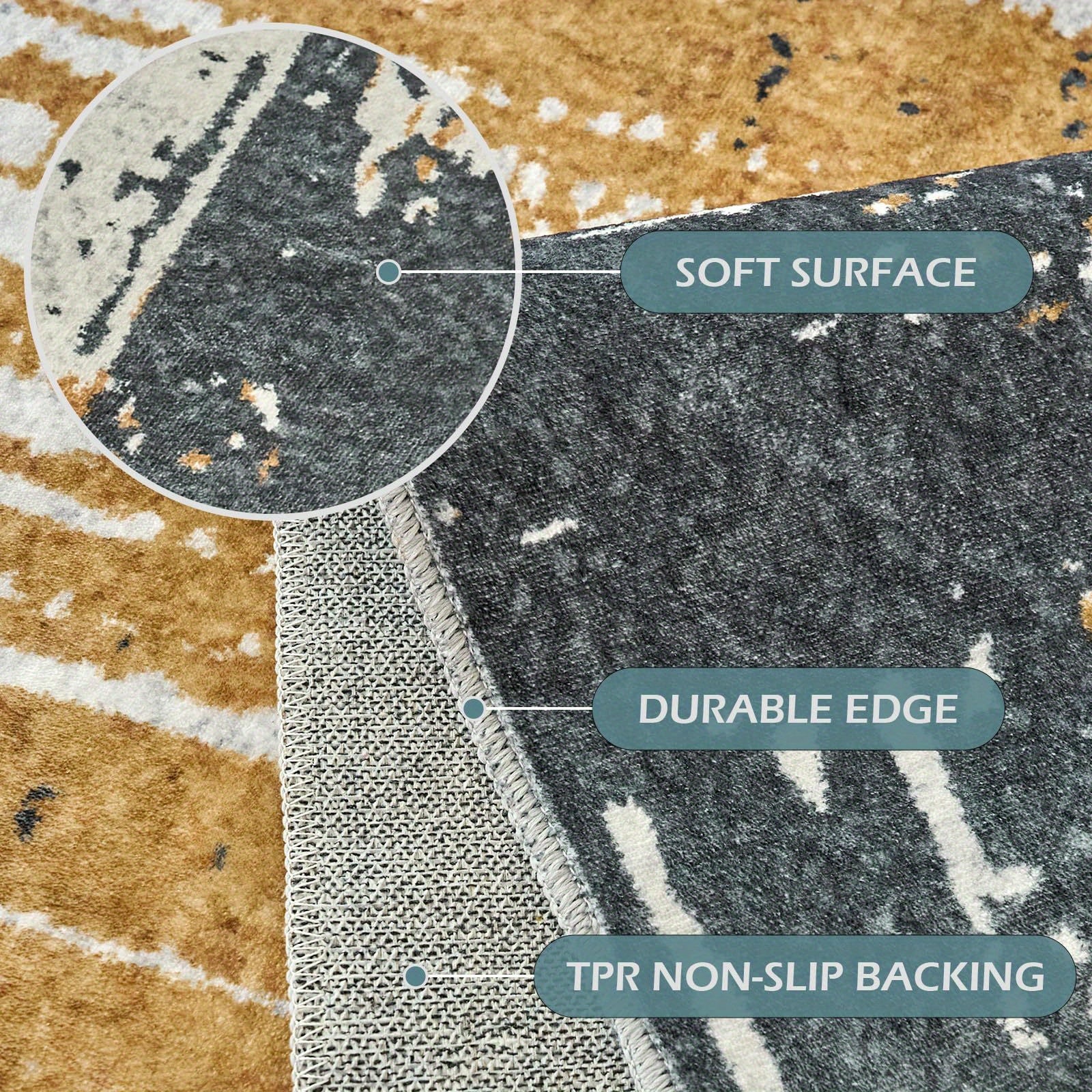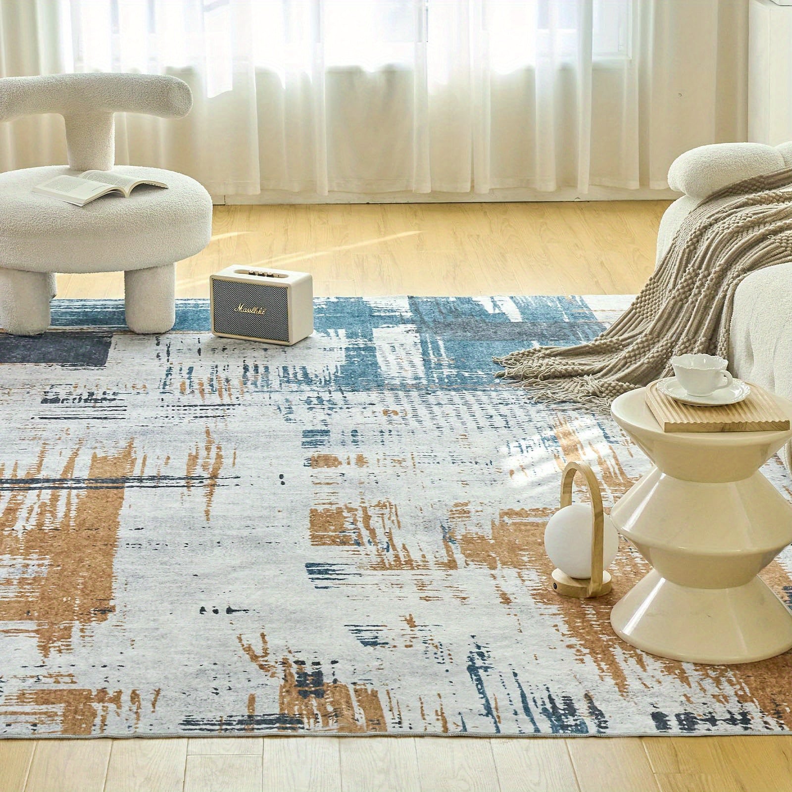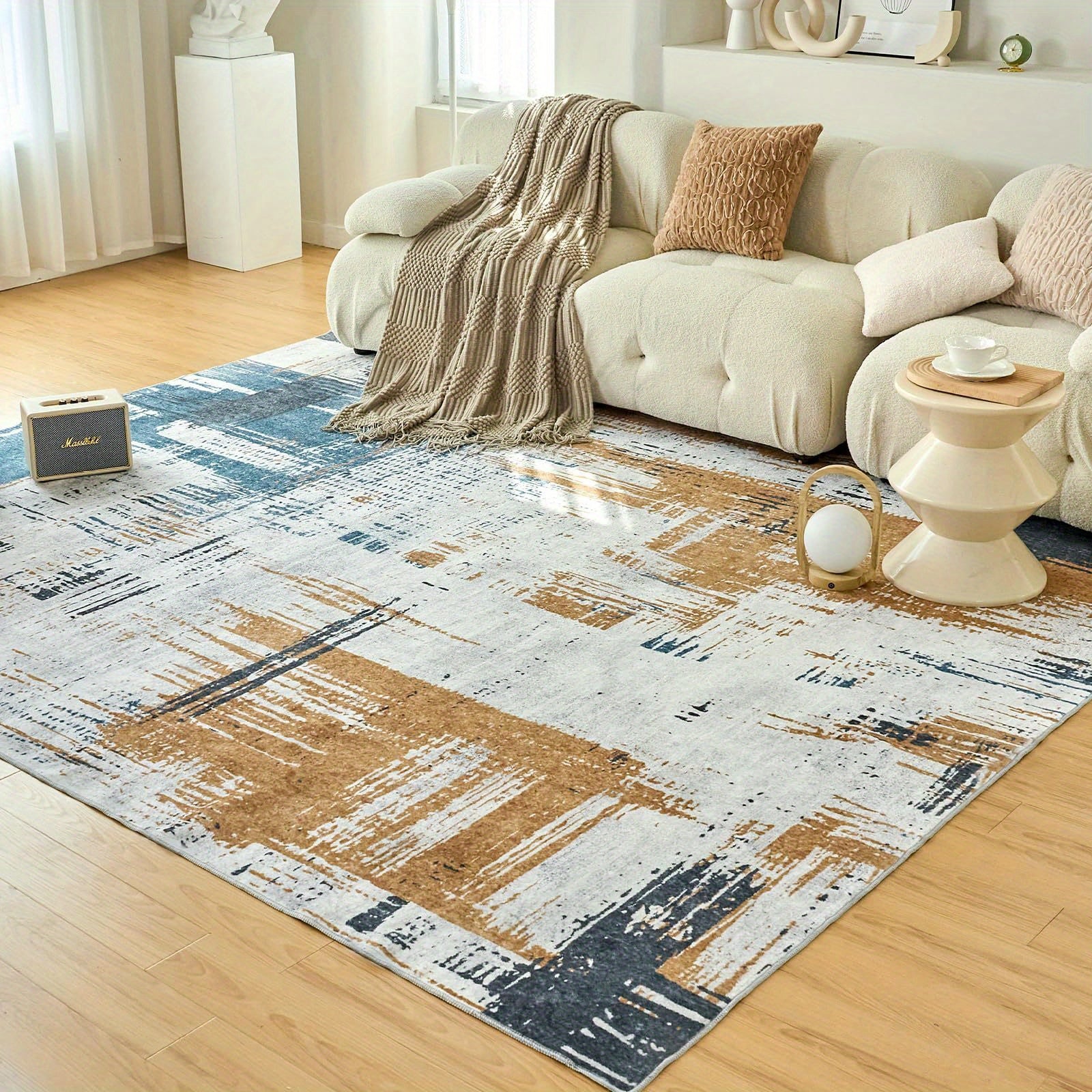 Machine Washable Rug 5x7 Area Rug Low-Pile Non-Shedding Foldable Abstract Modern Rugs, Stain Resistant Anti Slip Backing Rugs for Living Room Bedroom&Dining Home Office Carpet, Blue Yellow
